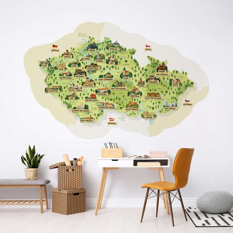 Objevujte krásy Česka hravě! Samolepka na stěnu s mapou hradů a zámků