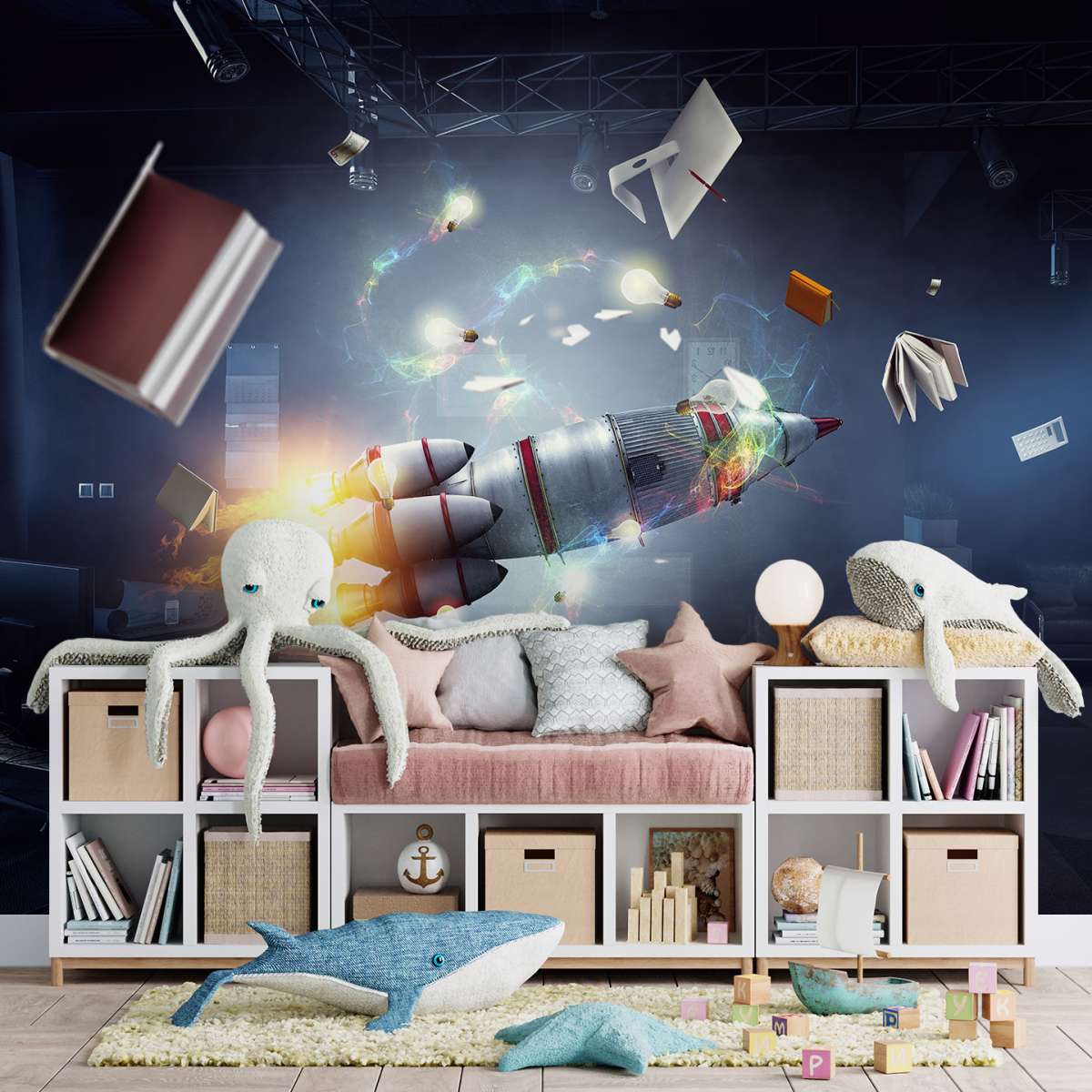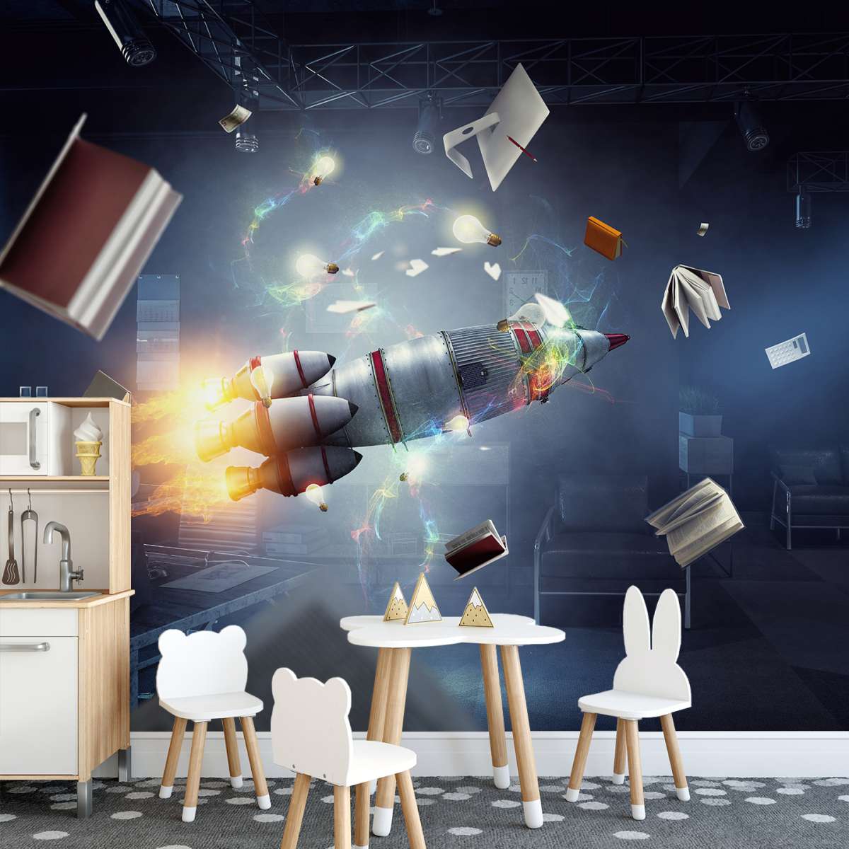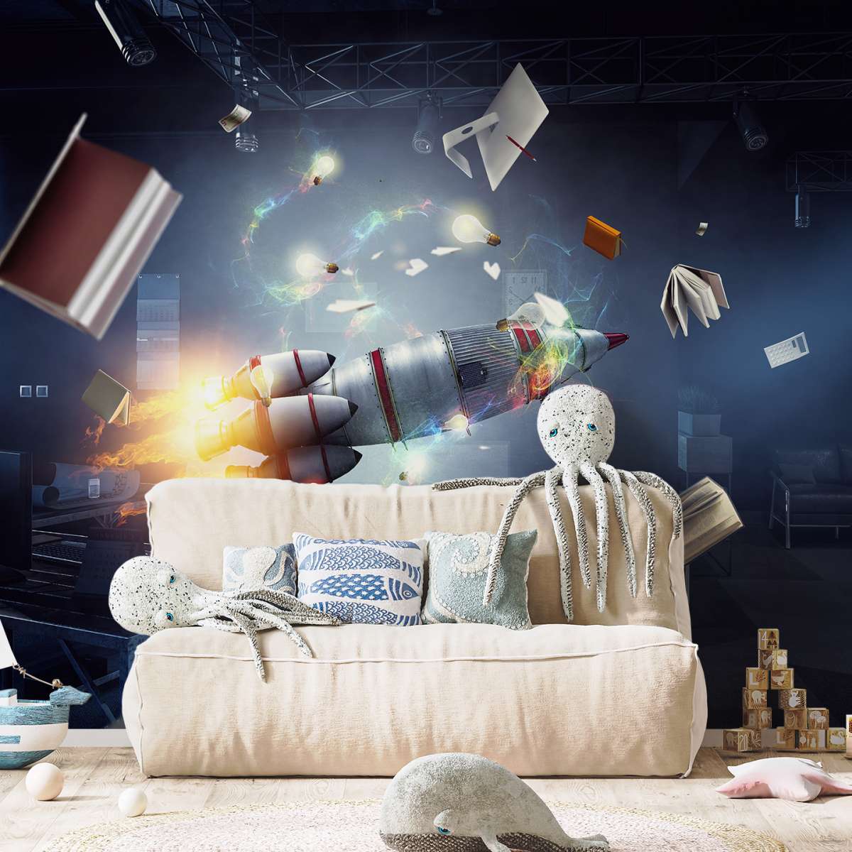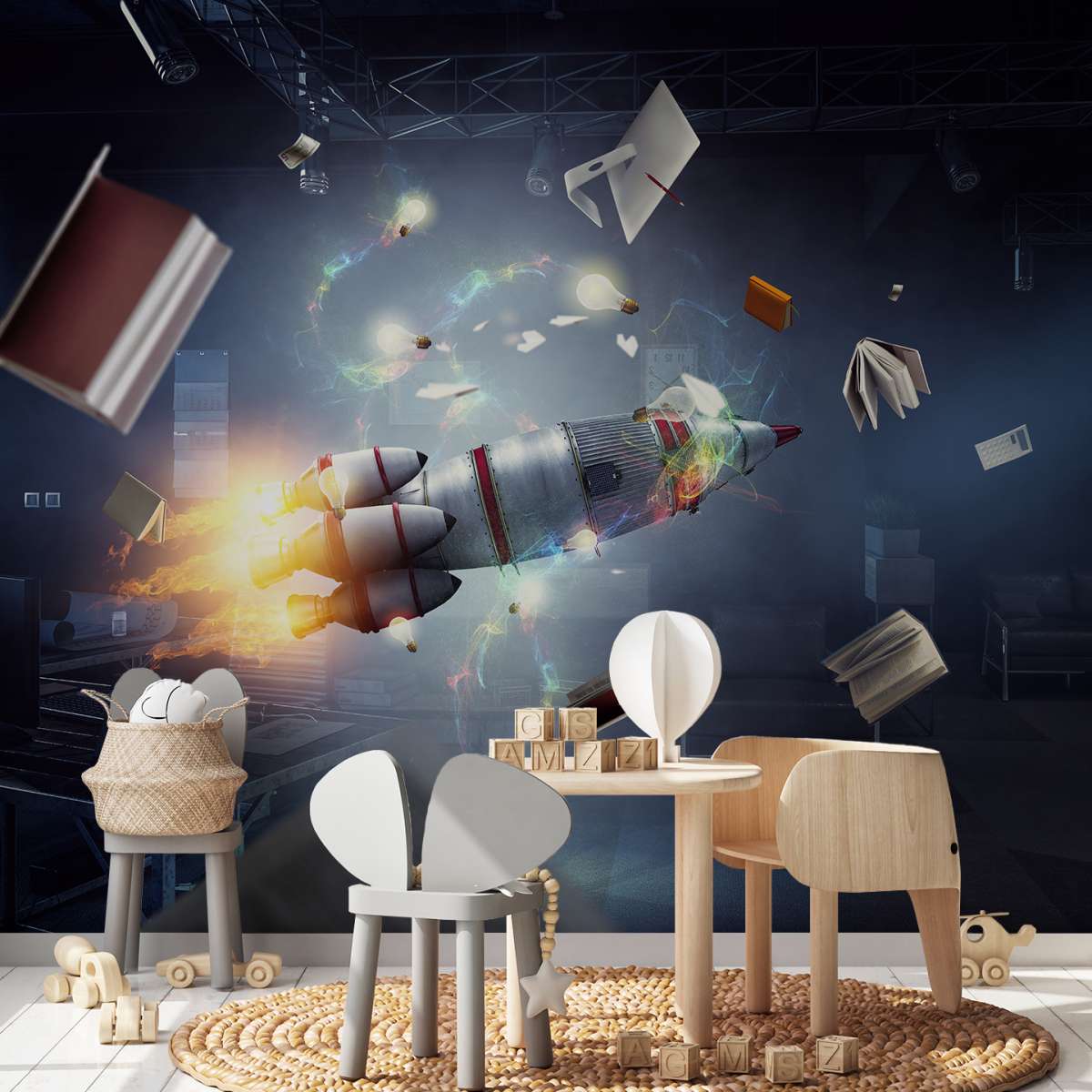 3D - raketová kosmická loď v místnosti
