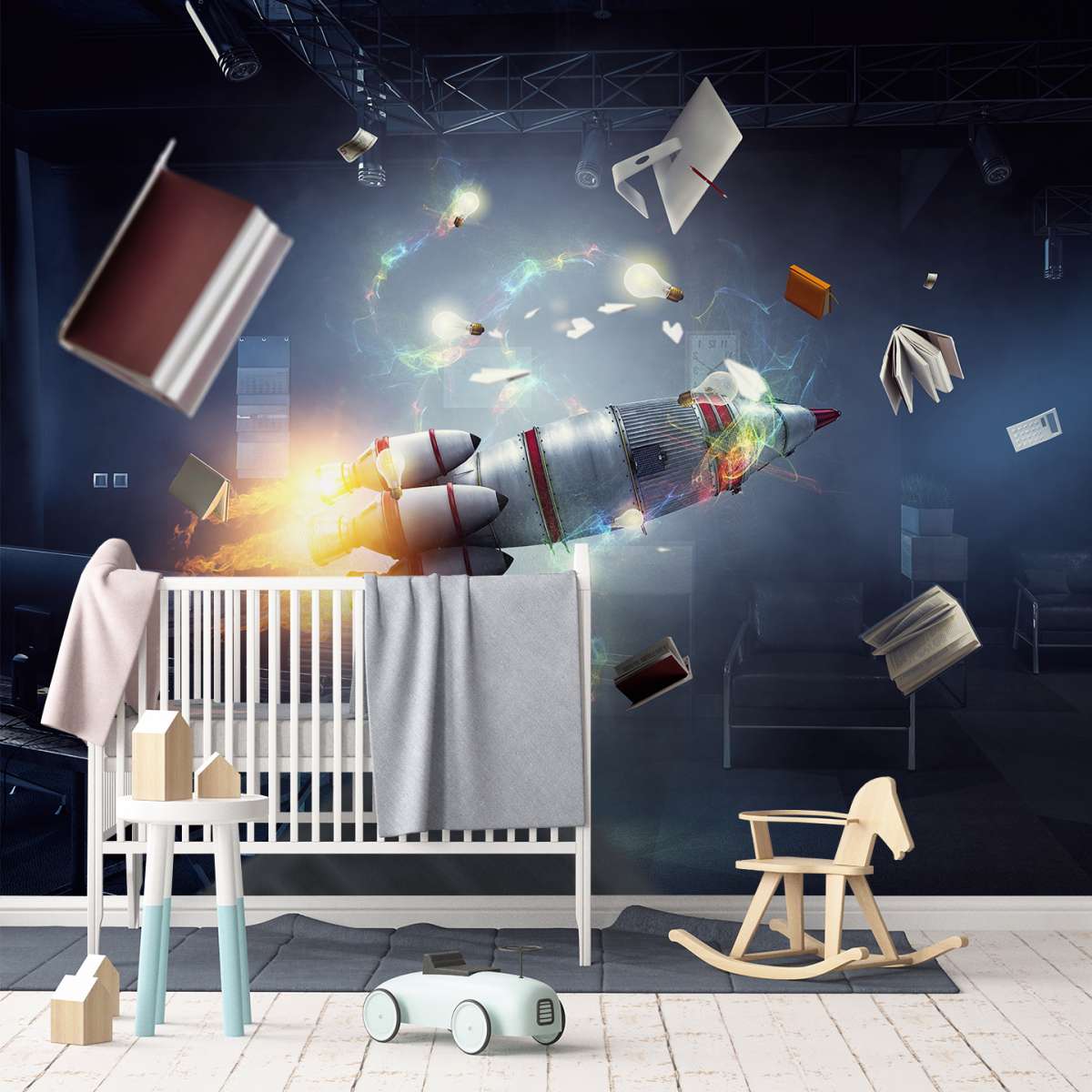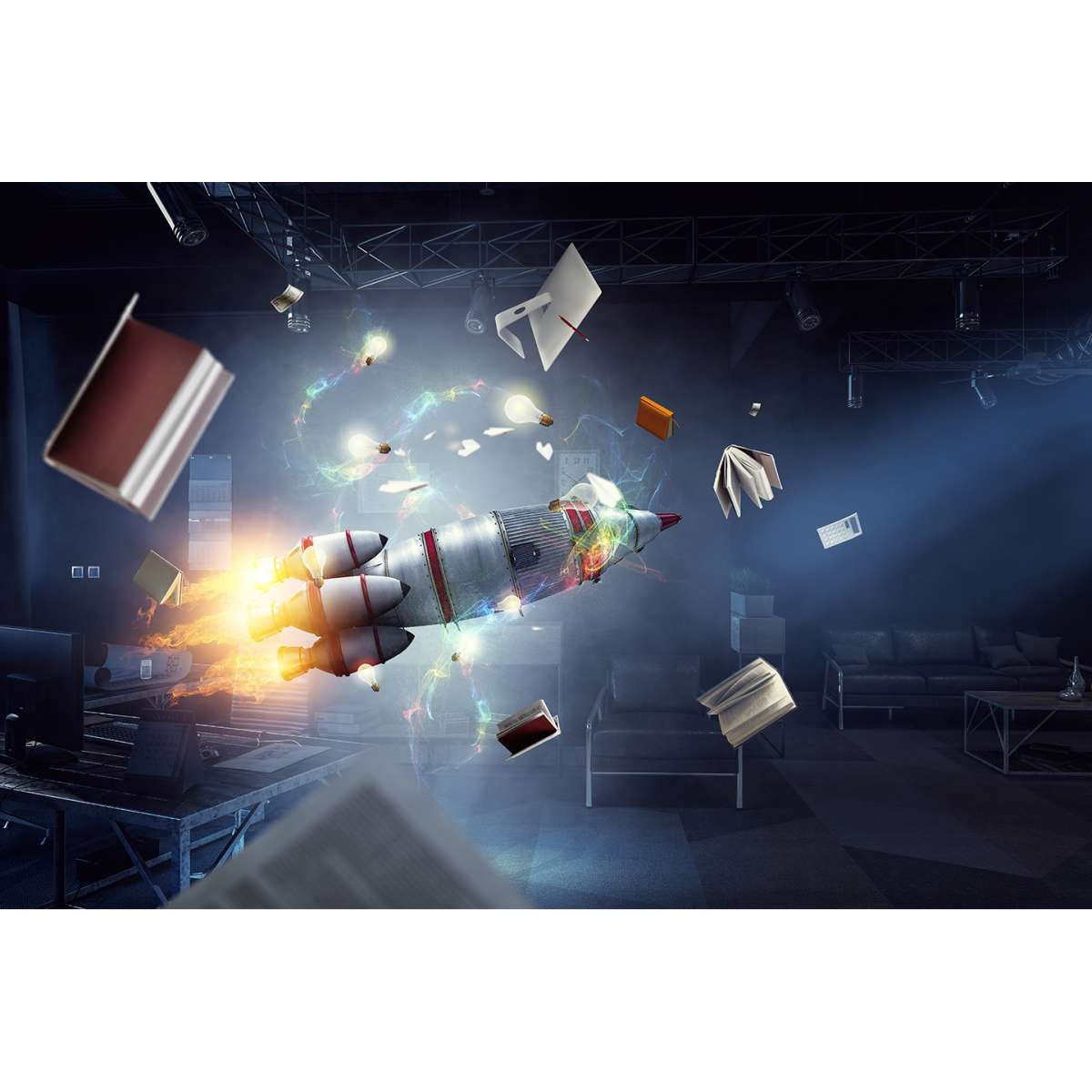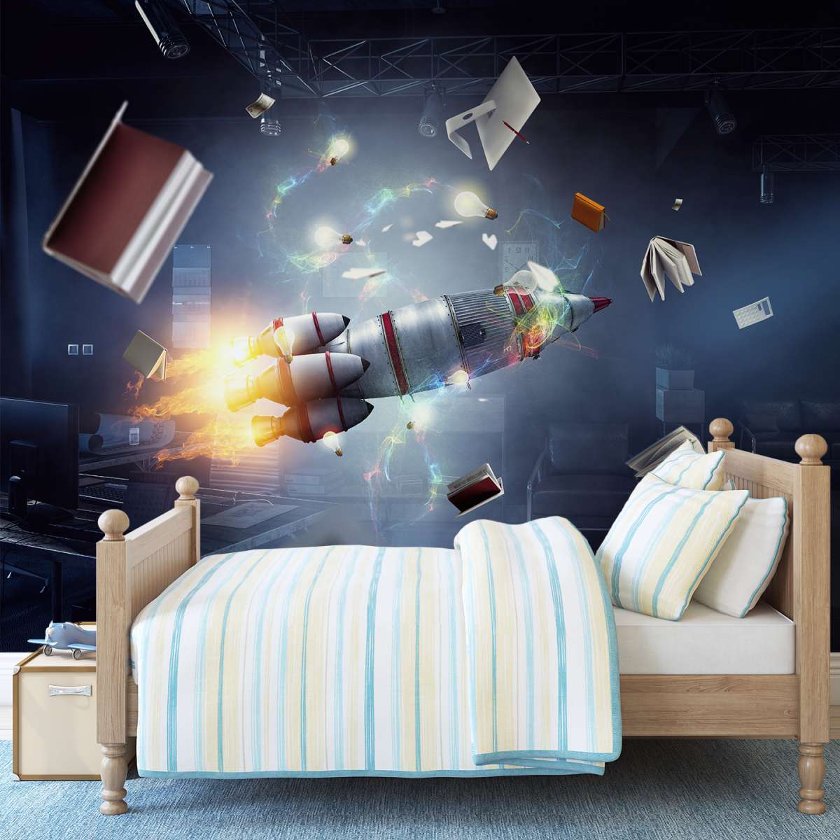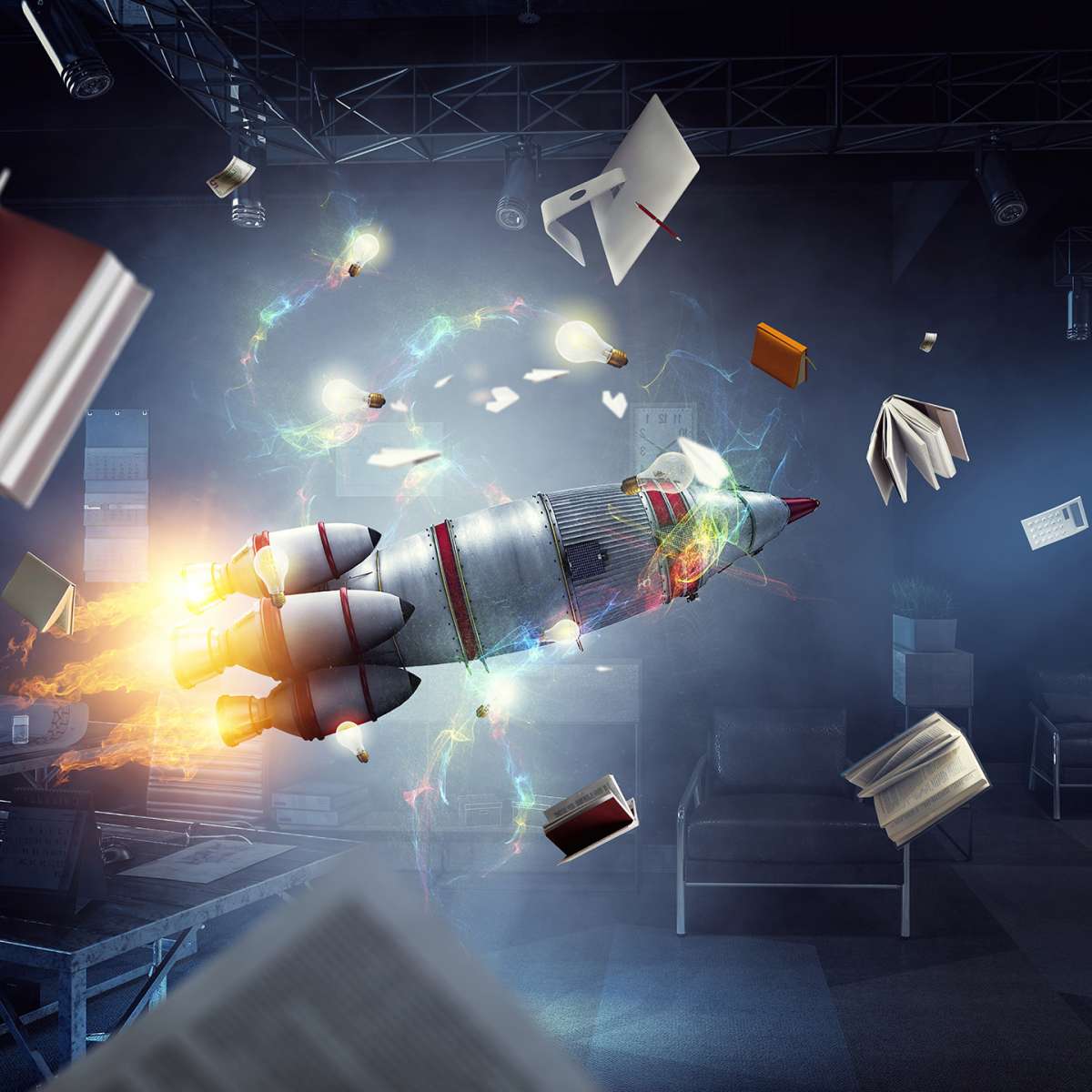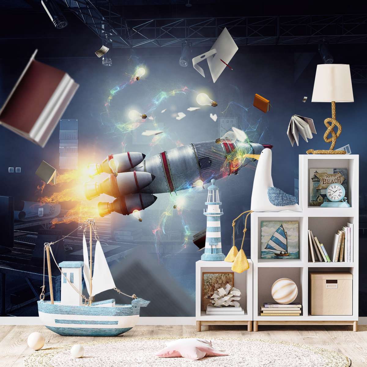 3D - raketová kosmická loď v místnosti