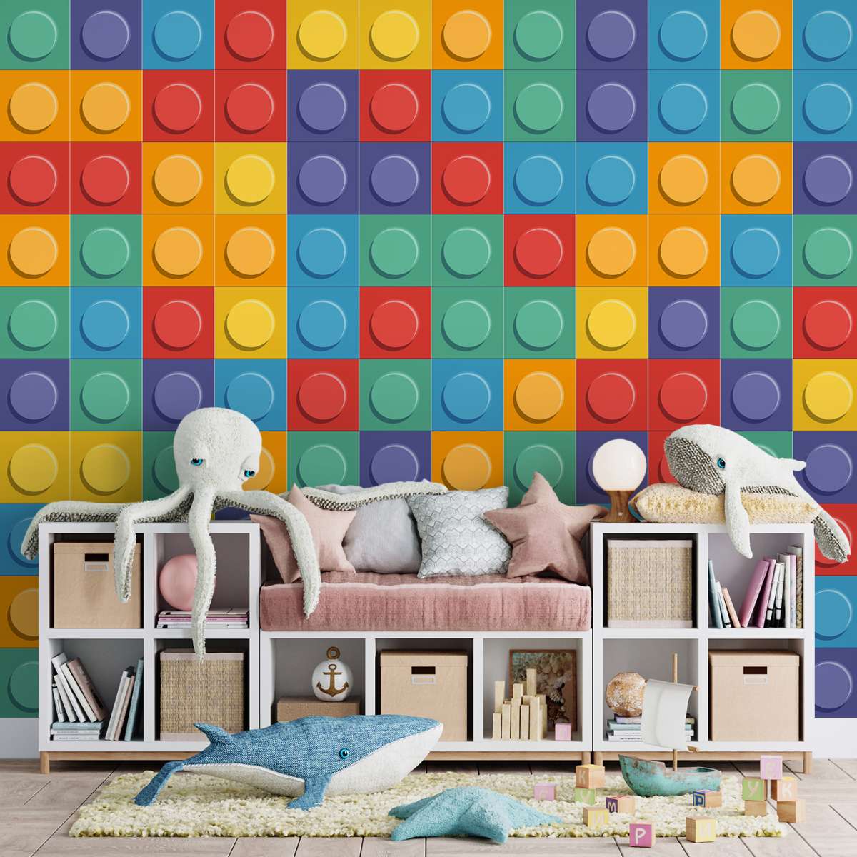 3D - stavebnice LEGO, barevné pozadí