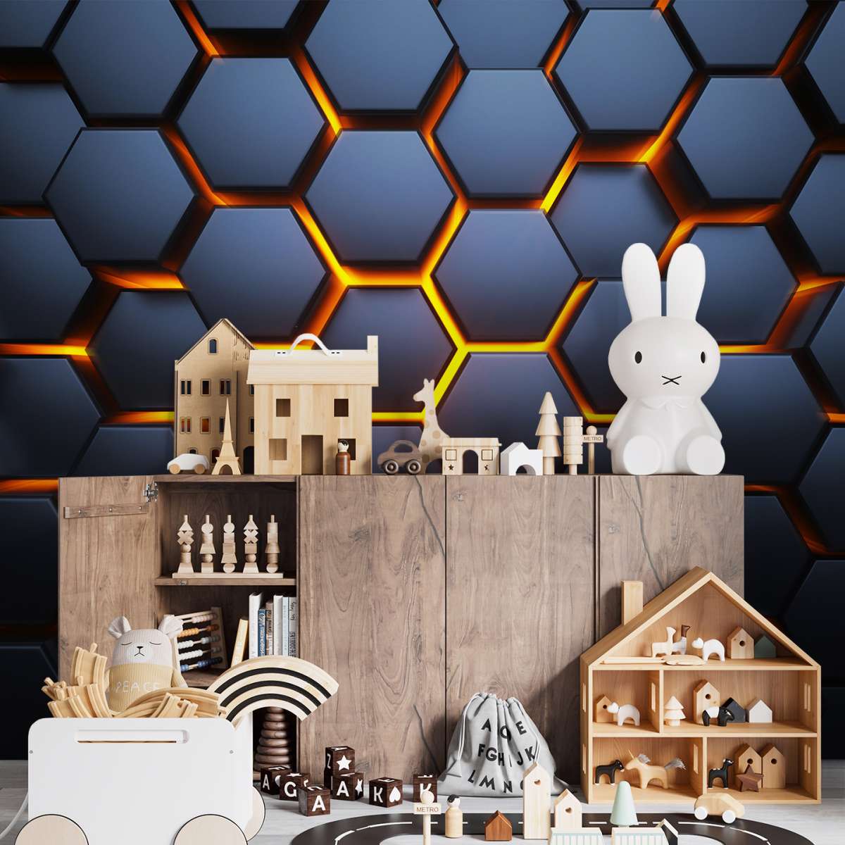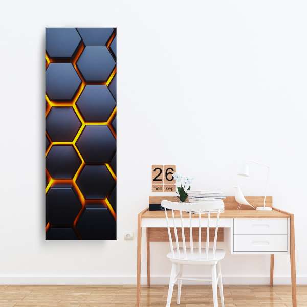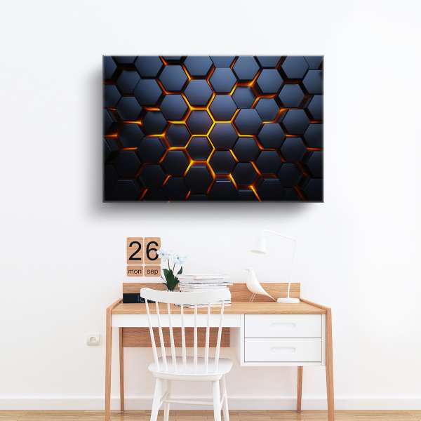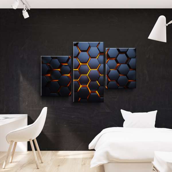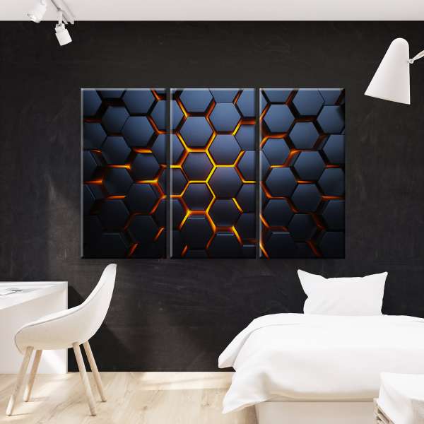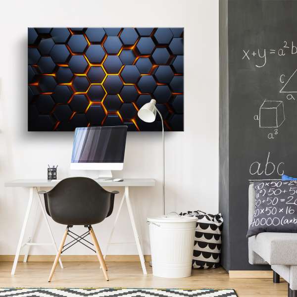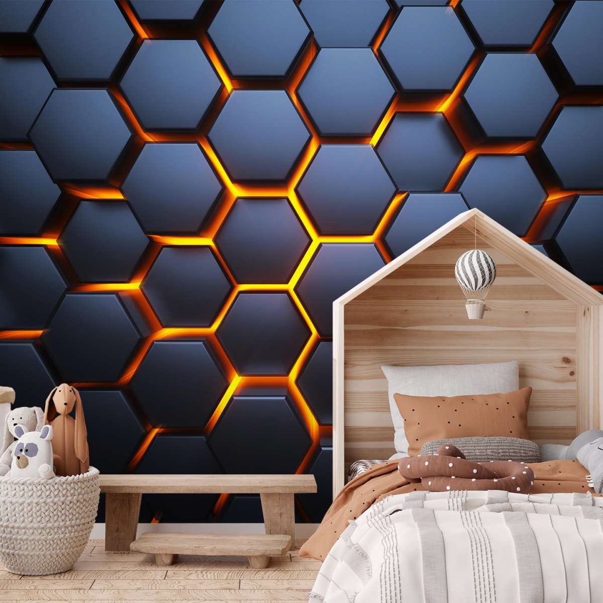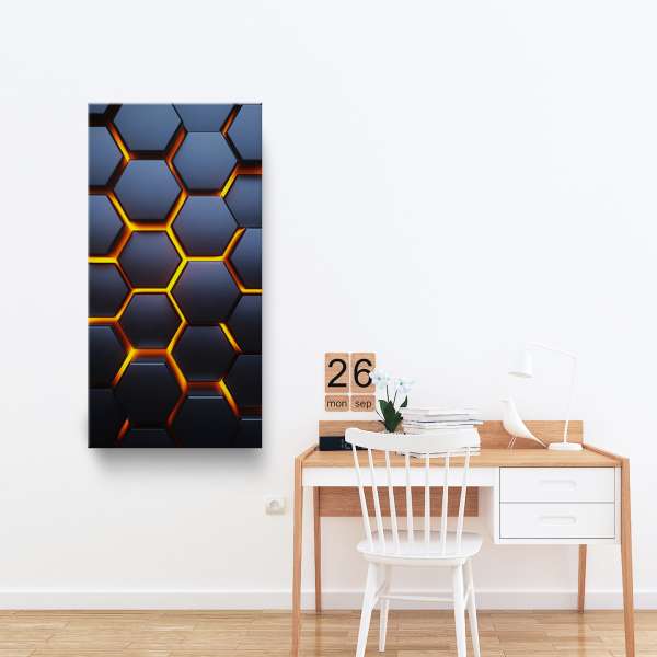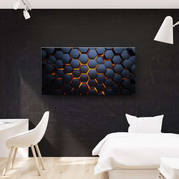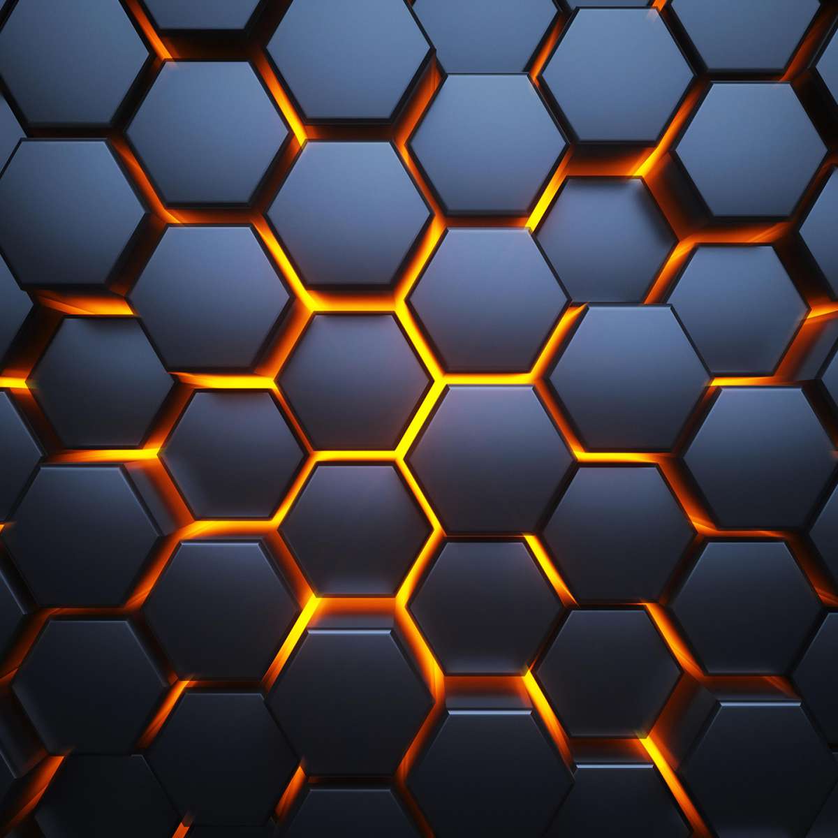 3D - tmavé šestiúhelníky s oranžovým podsvícením