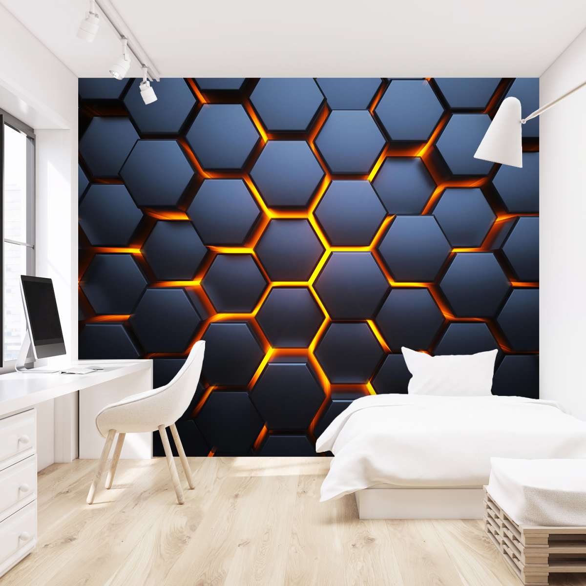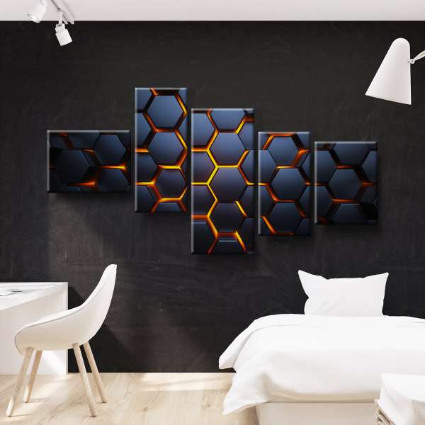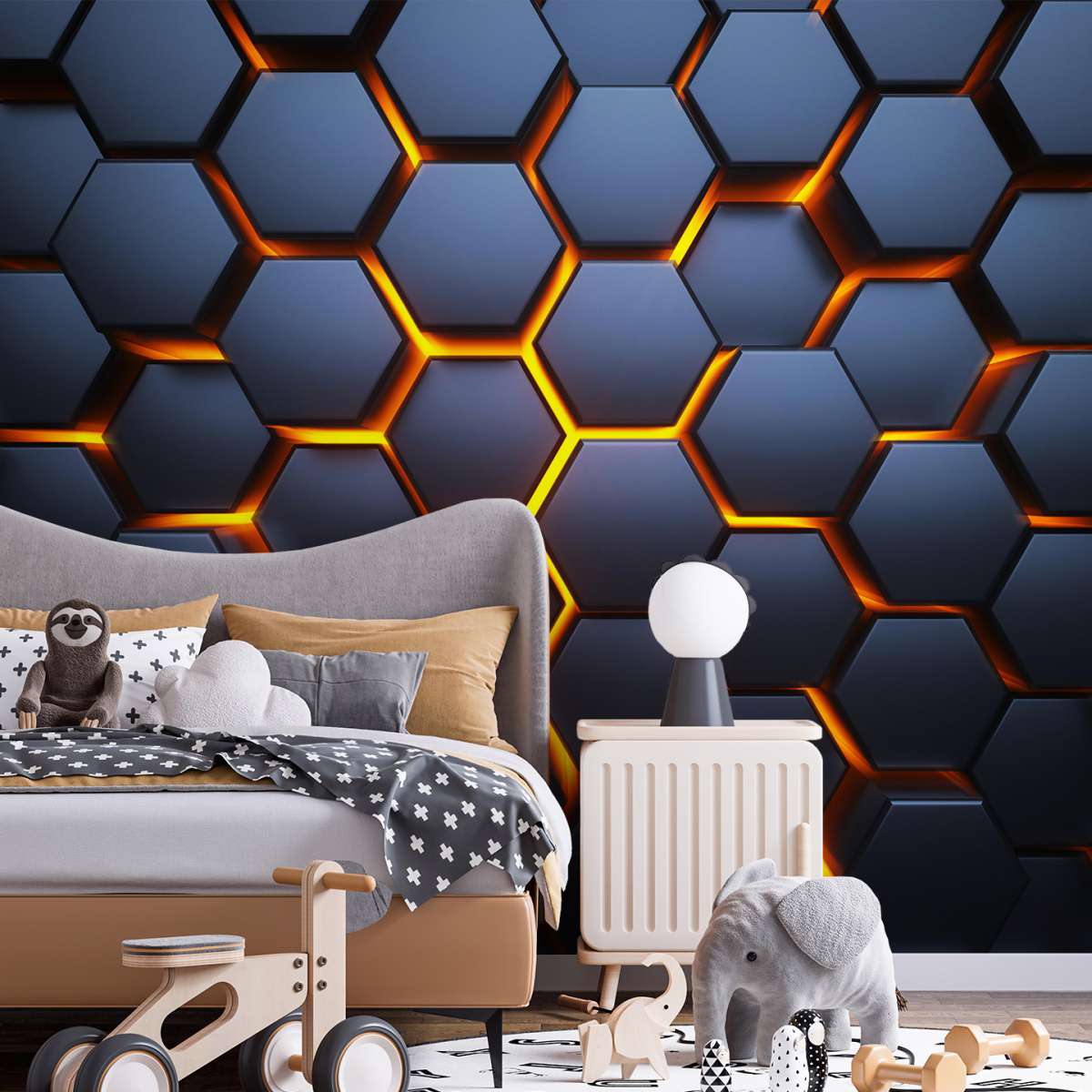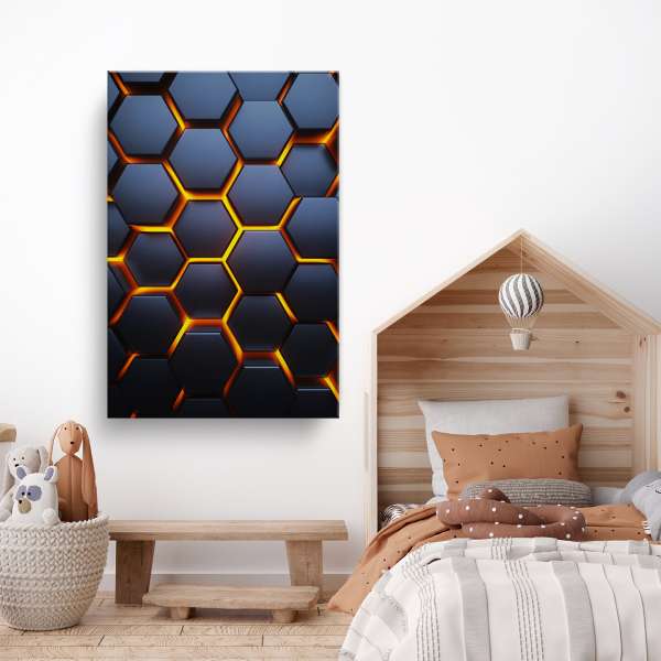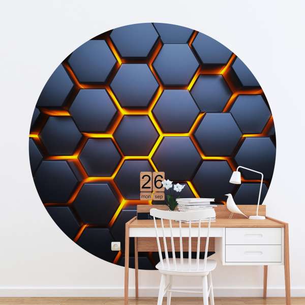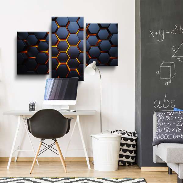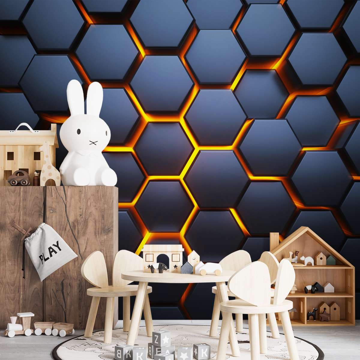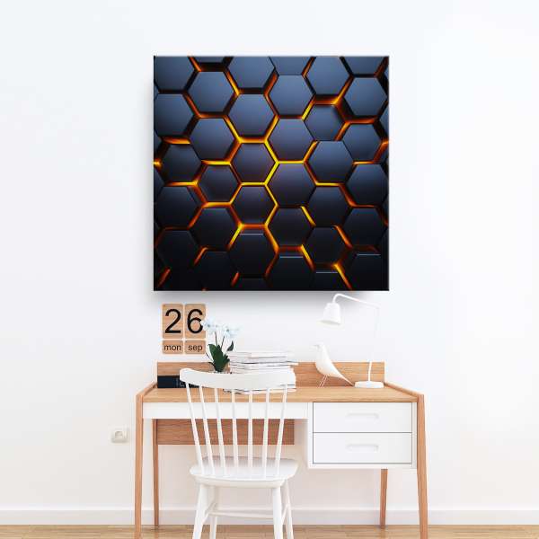 3D - tmavé šestiúhelníky s oranžovým podsvícením