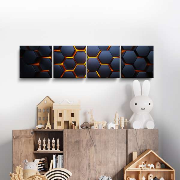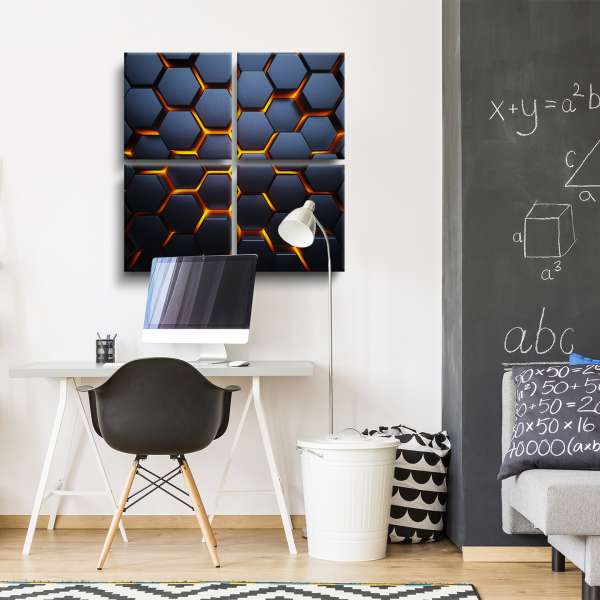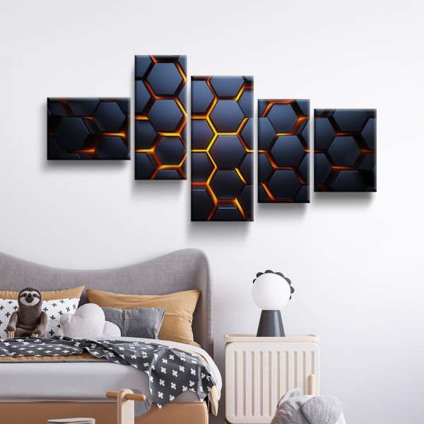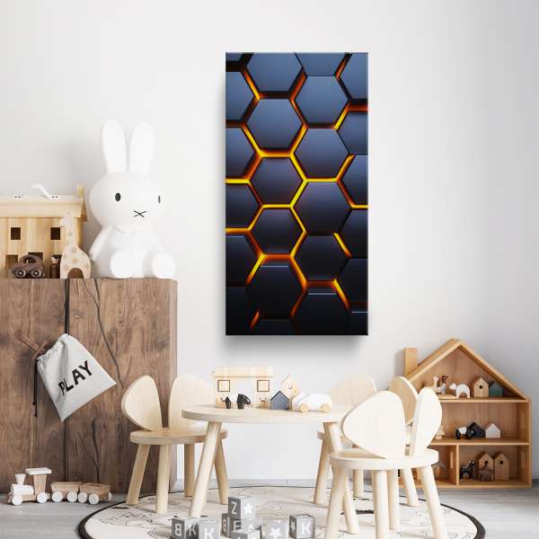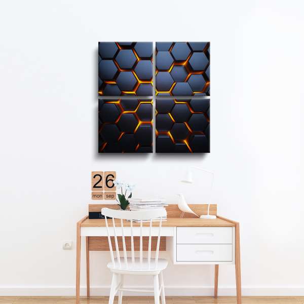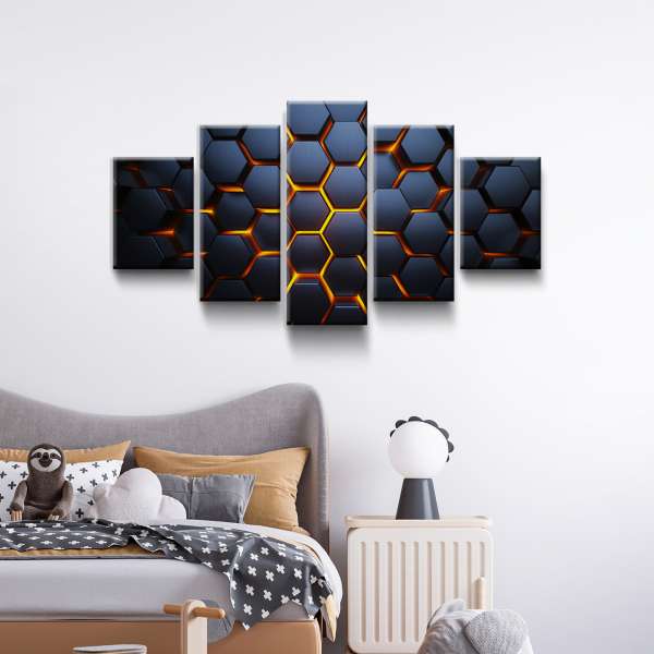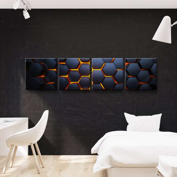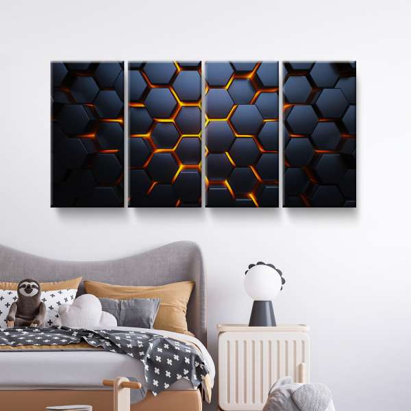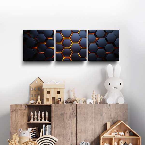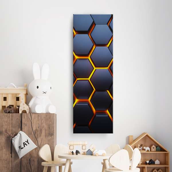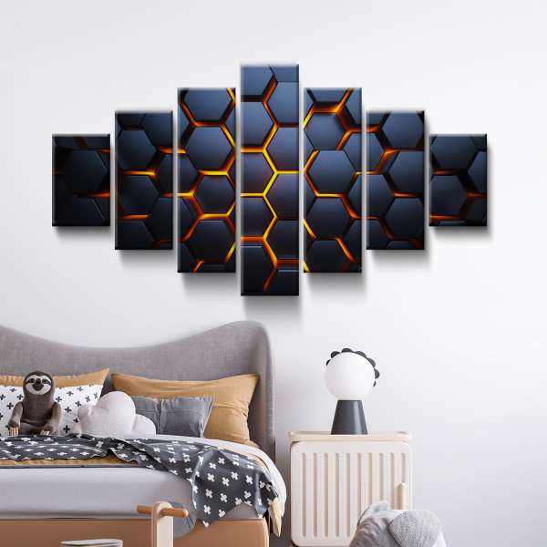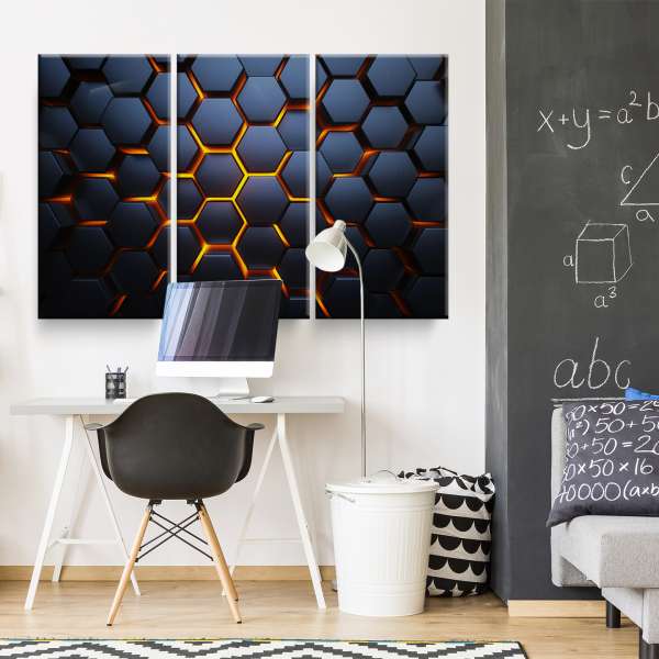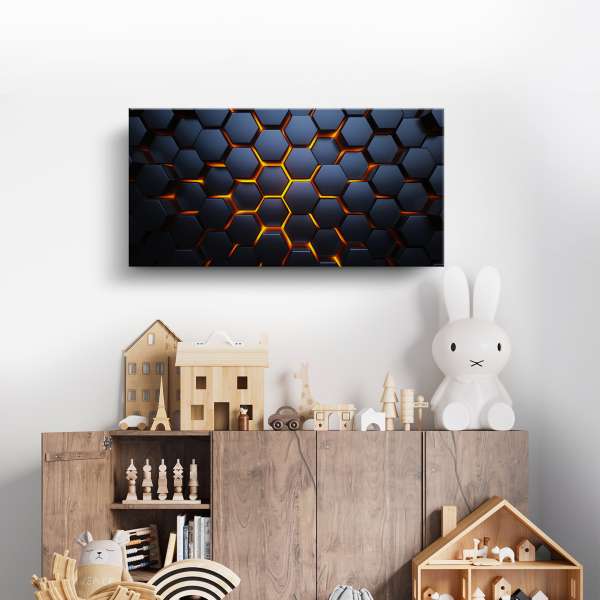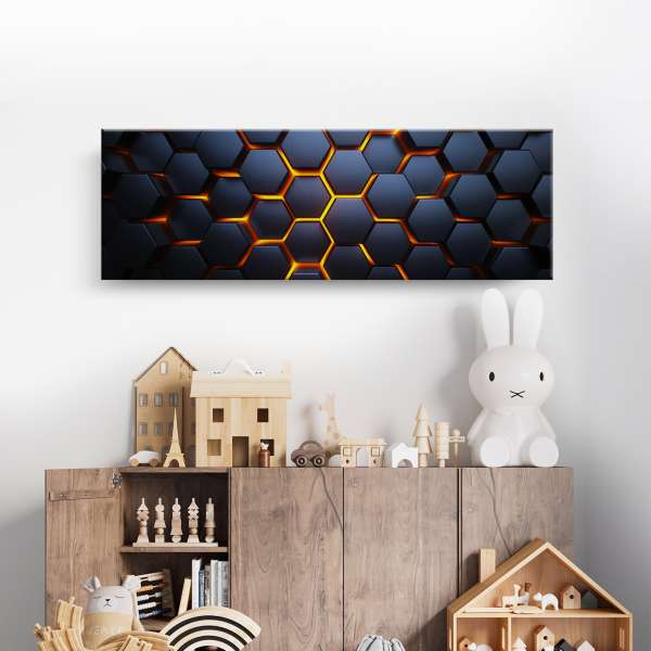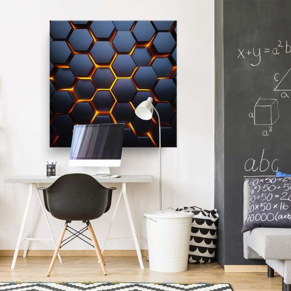 3D - tmavé šestiúhelníky s oranžovým podsvícením