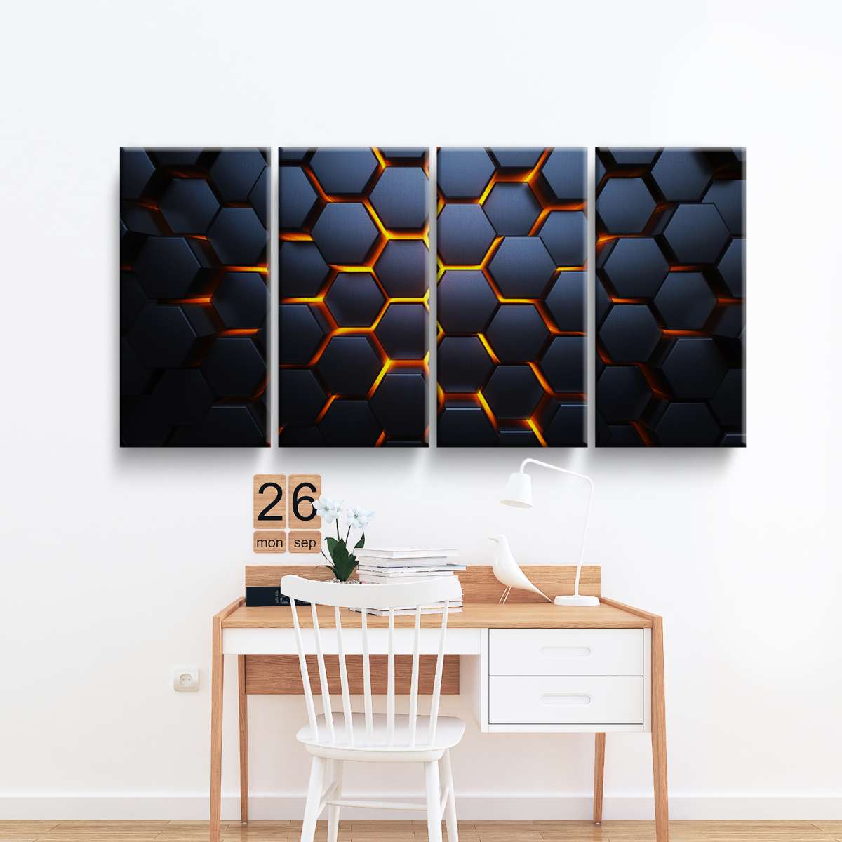 3D - tmavé šestiúhelníky s oranžovým podsvícením