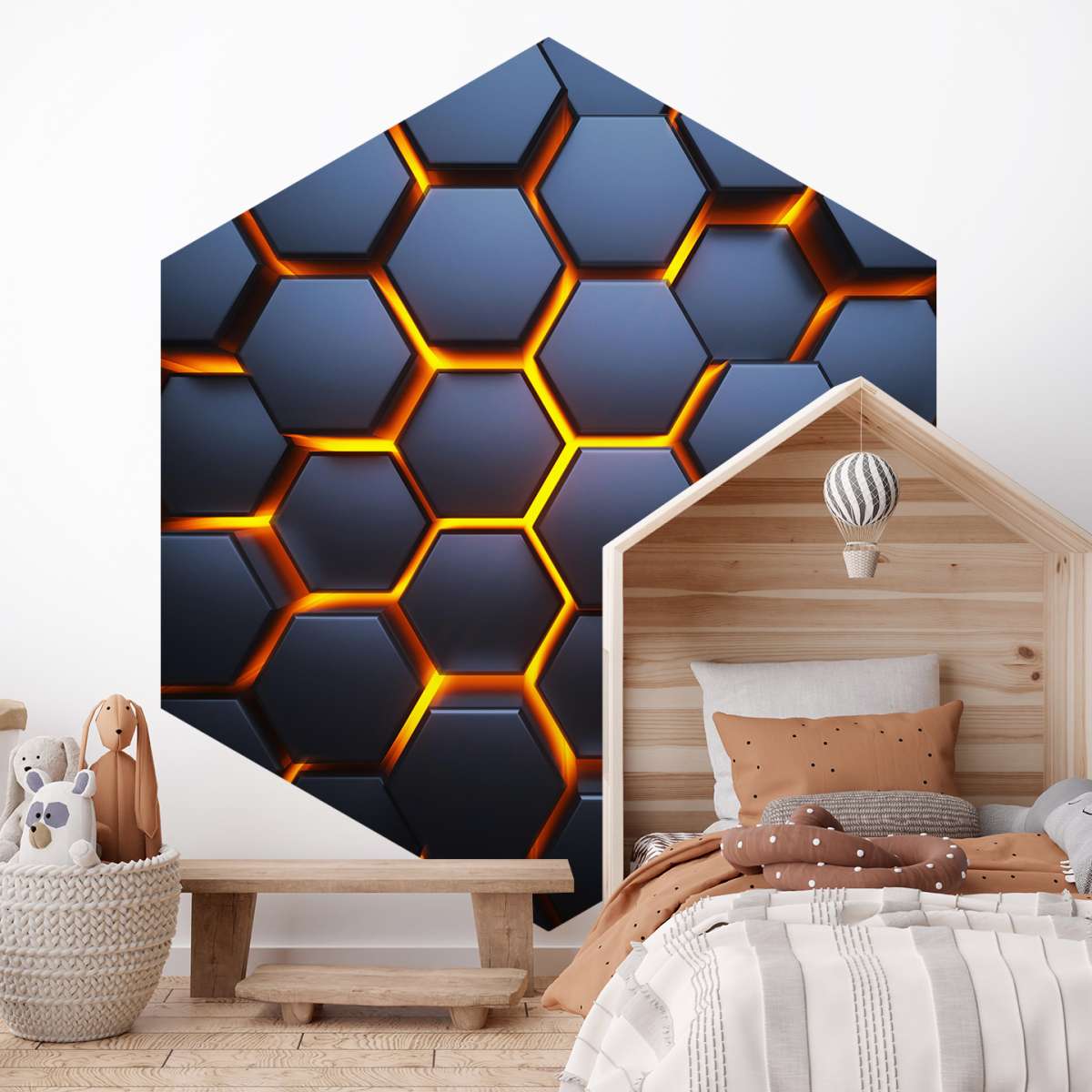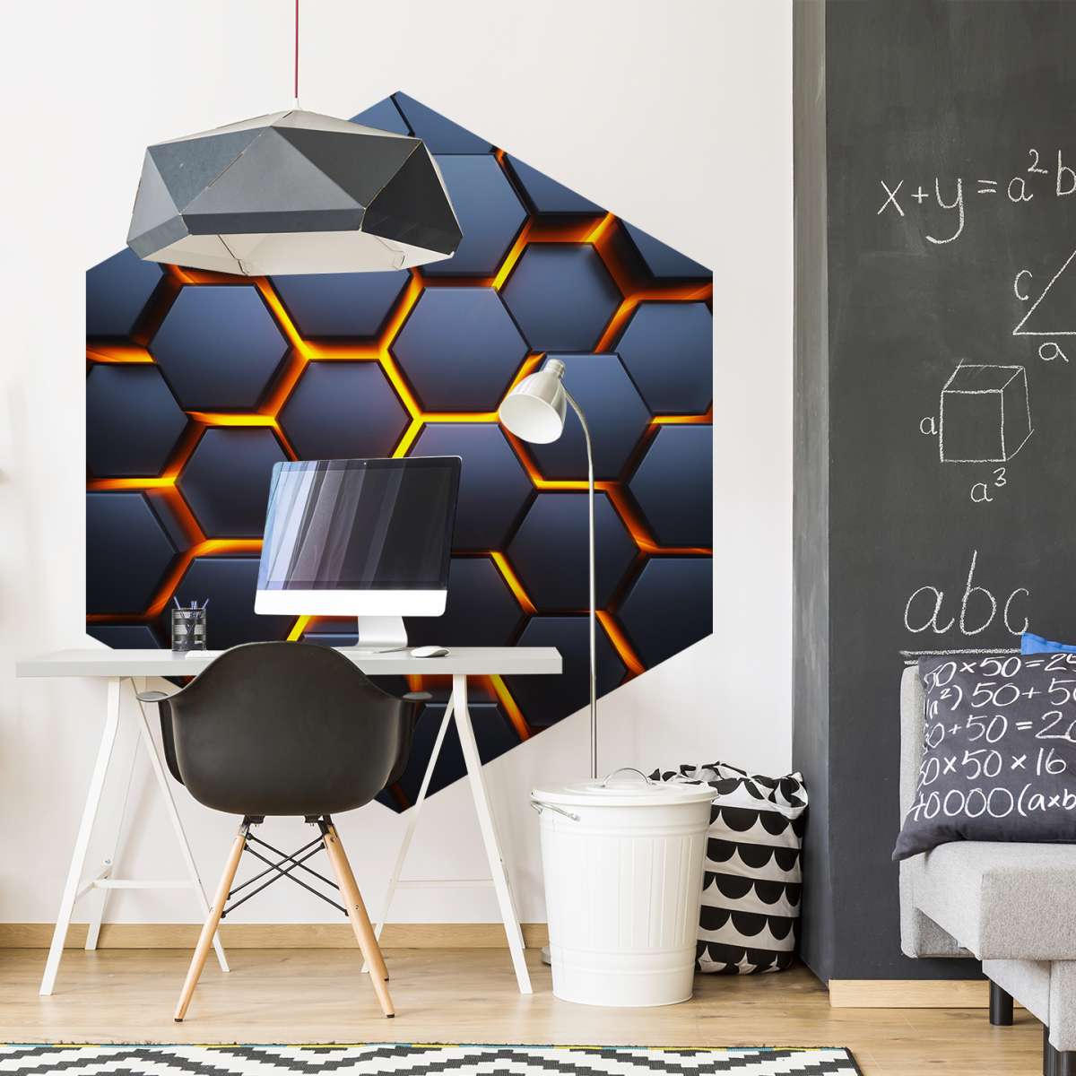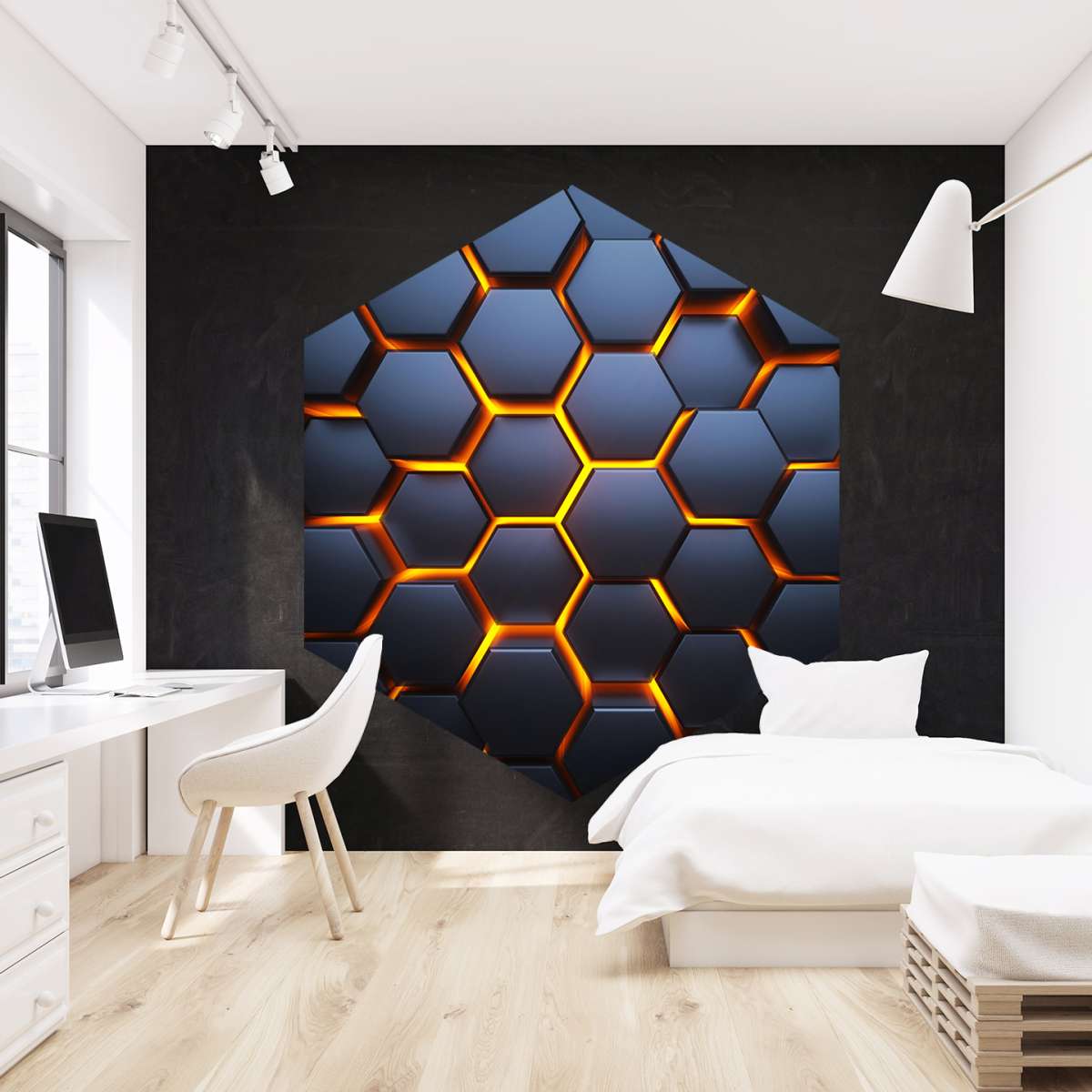 3D - tmavé šestiúhelníky s oranžovým podsvícením