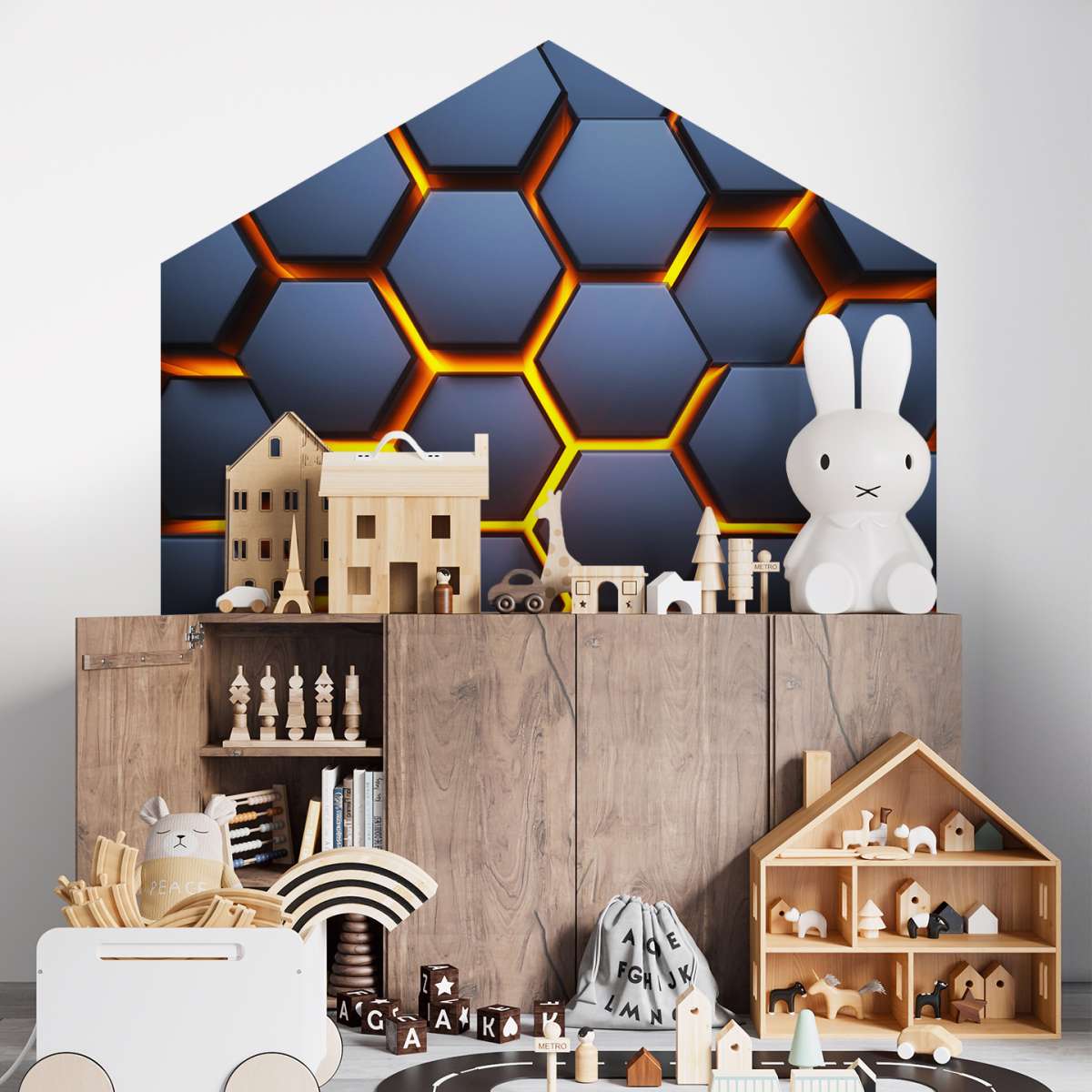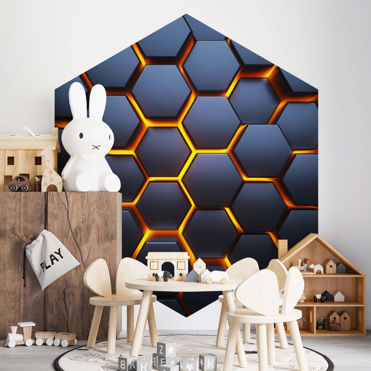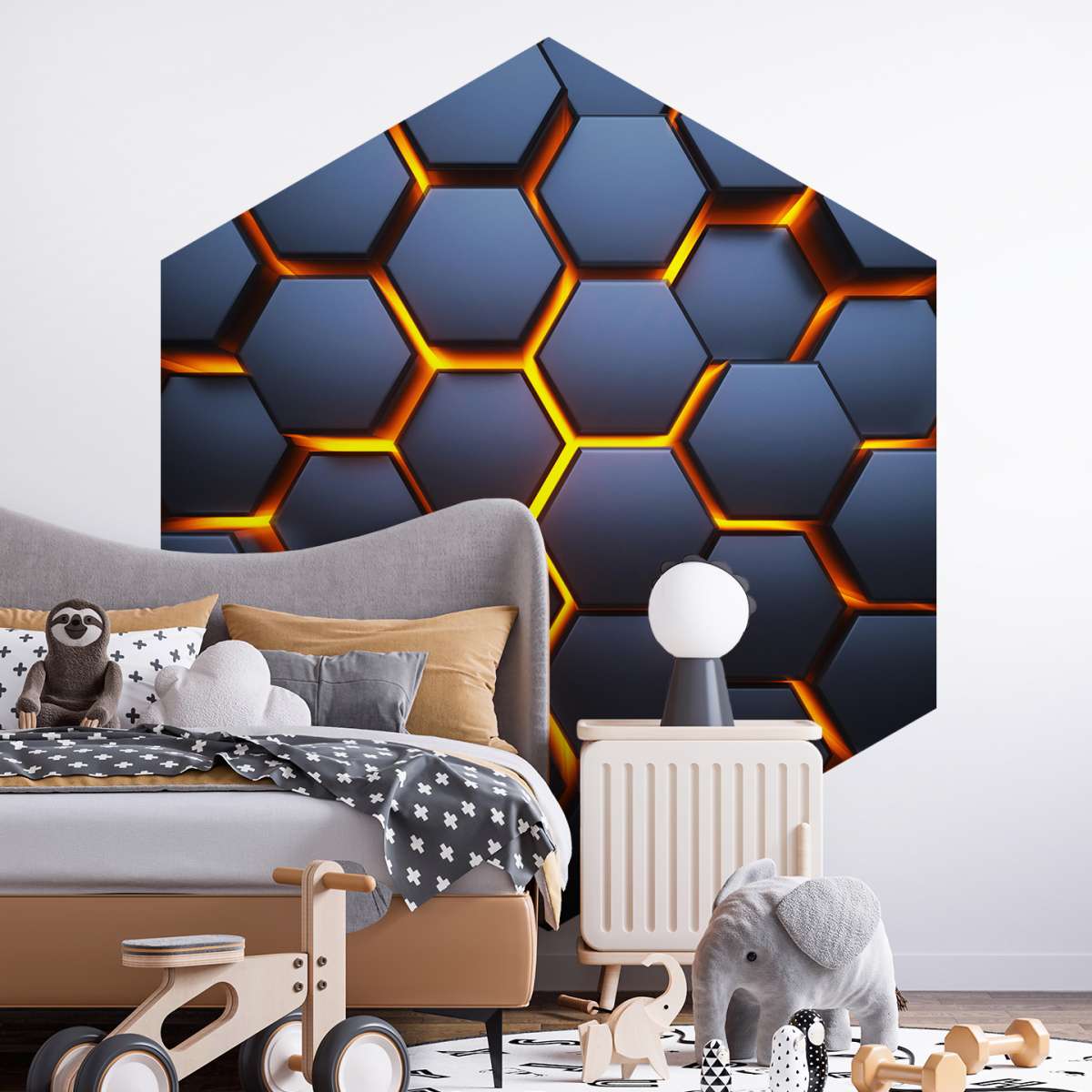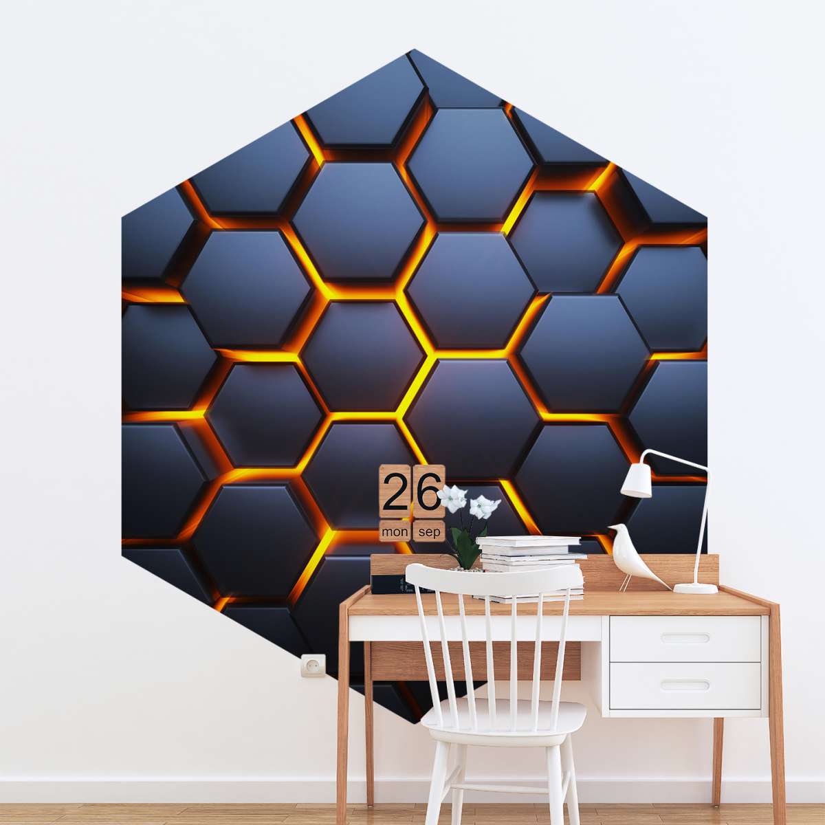 3D - tmavé šestiúhelníky s oranžovým podsvícením