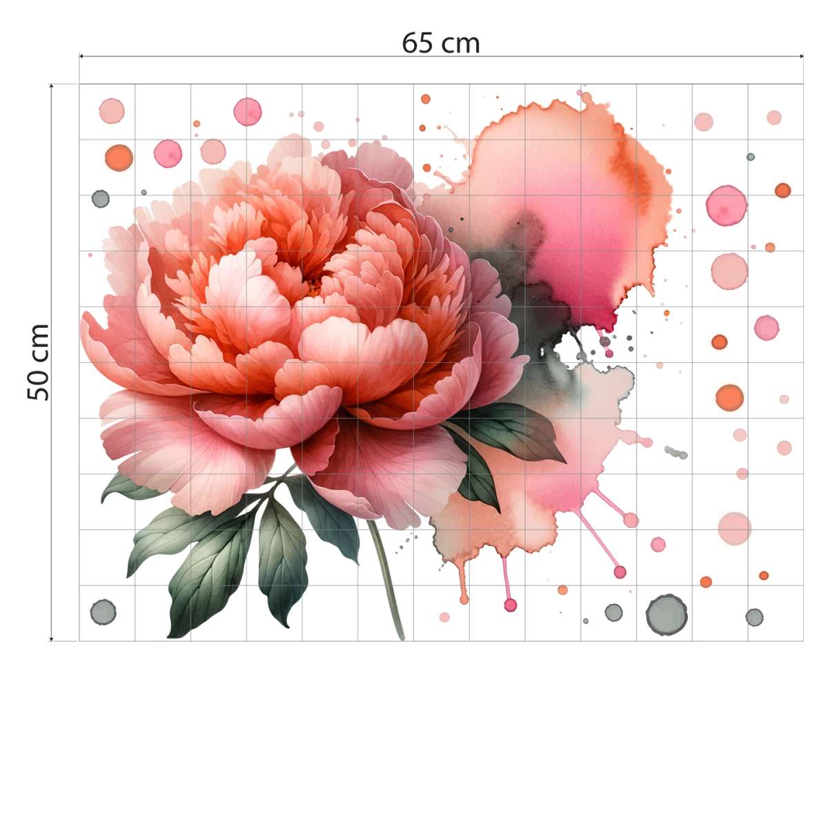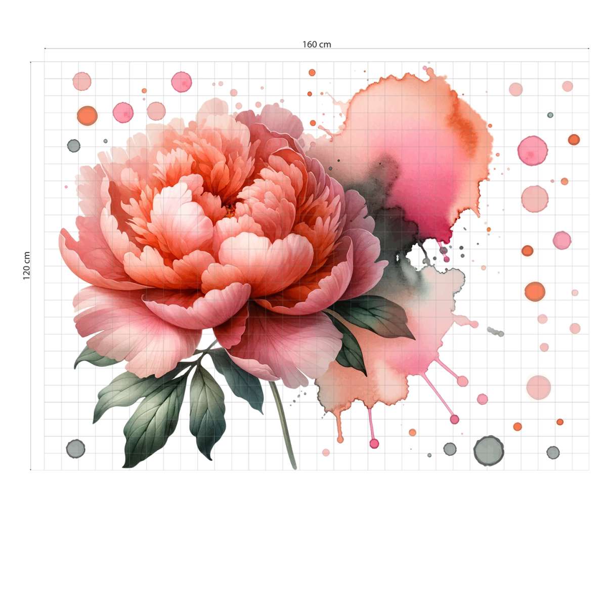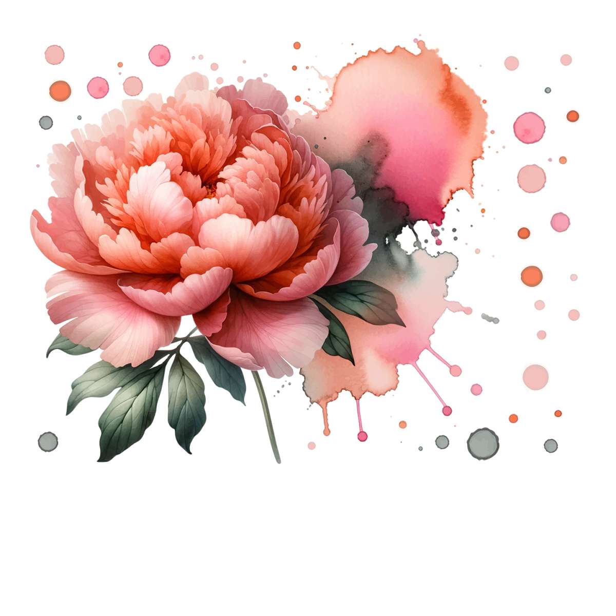 Akvarelová broskvová pivoňka s barevnými skvrnami