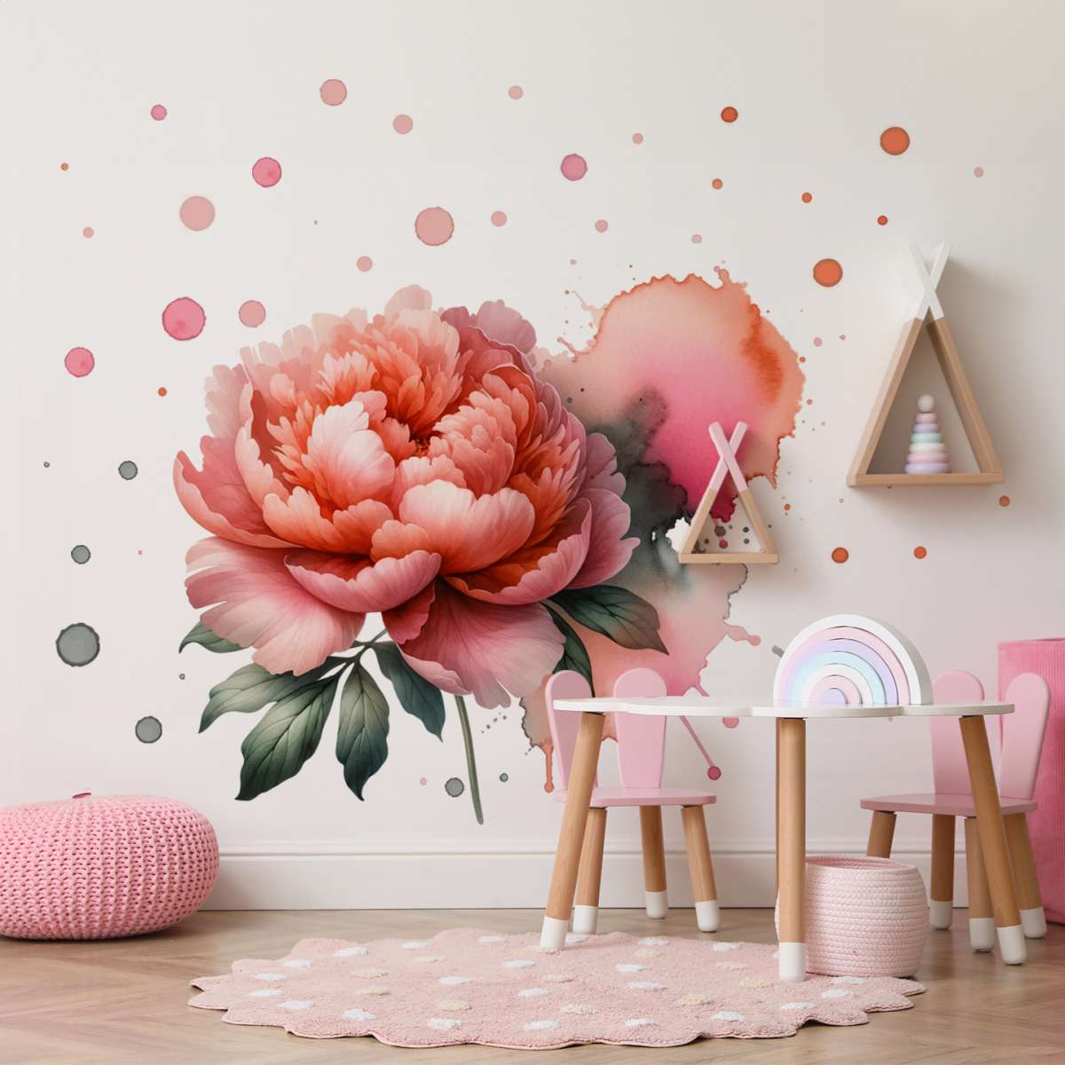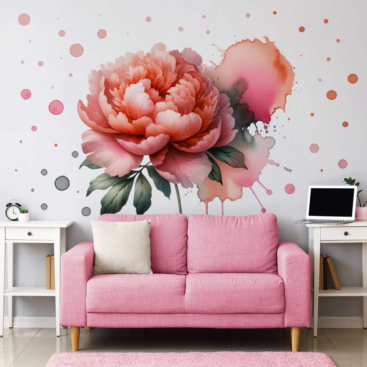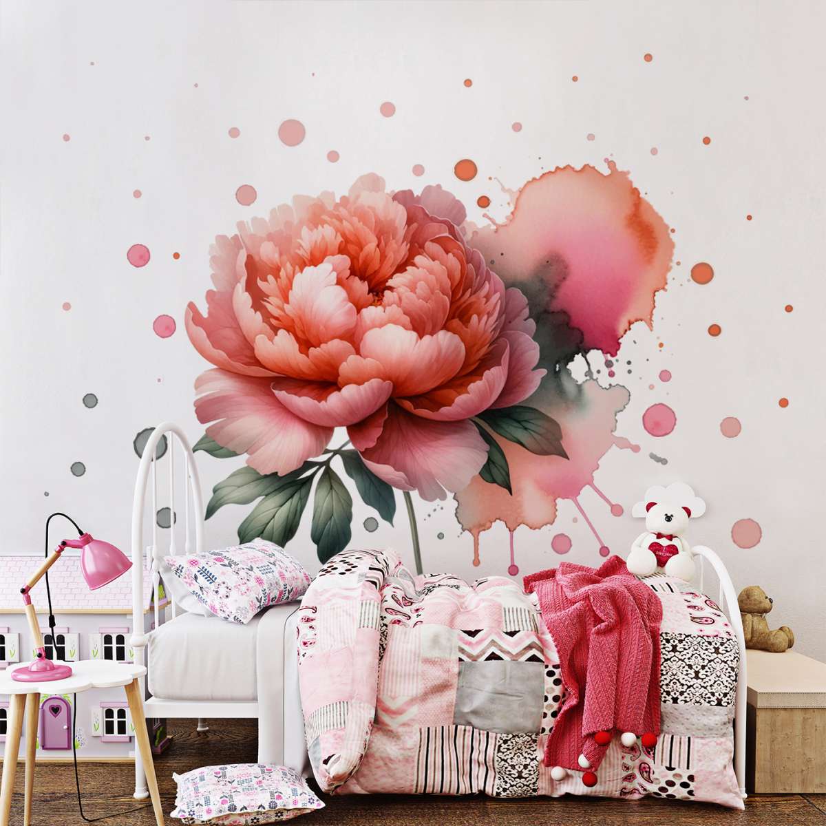 Akvarelová broskvová pivoňka s barevnými skvrnami