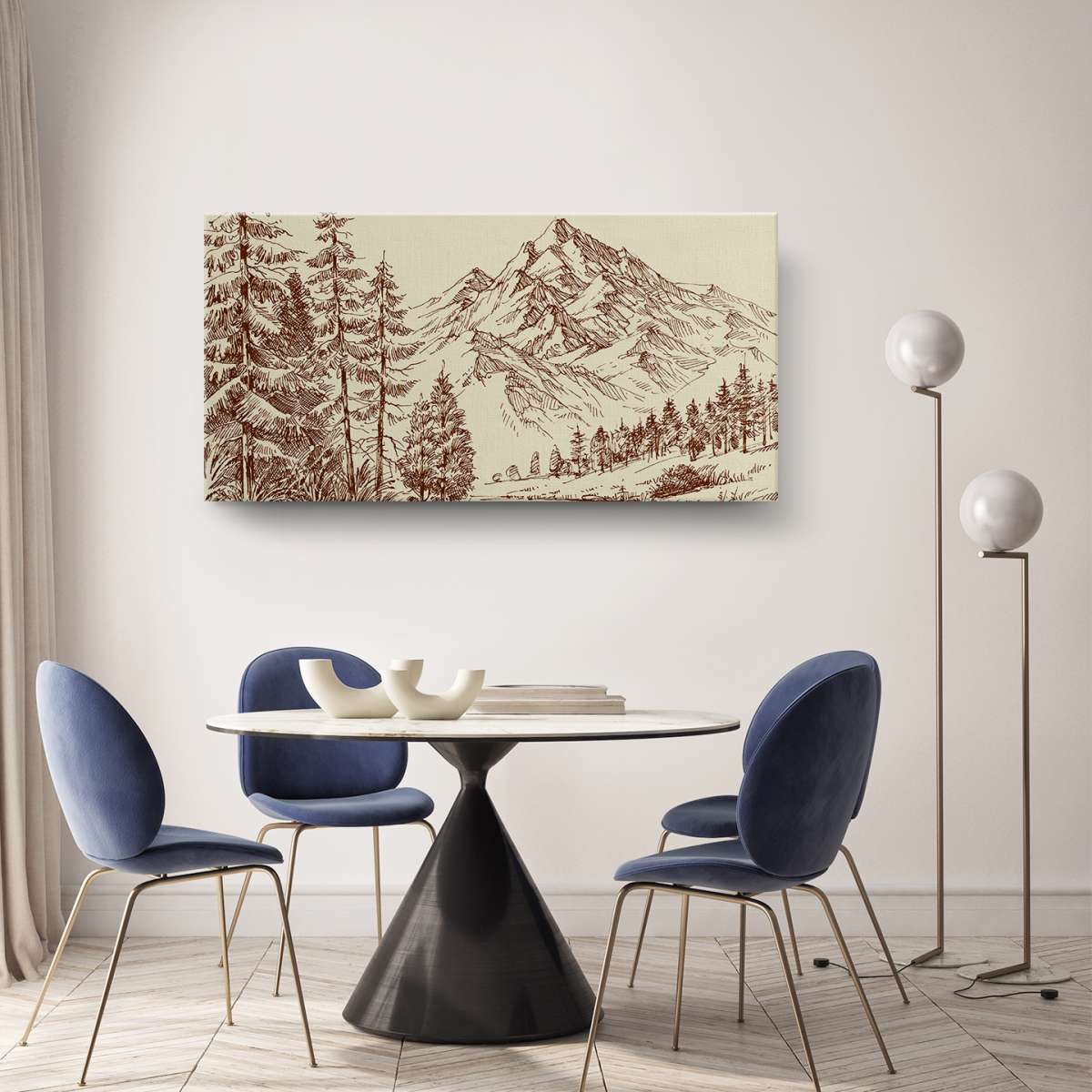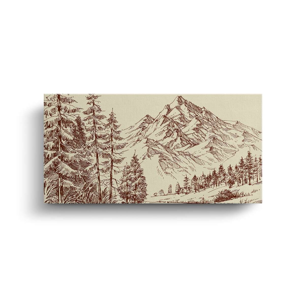Alpská krajina a borový les - skica