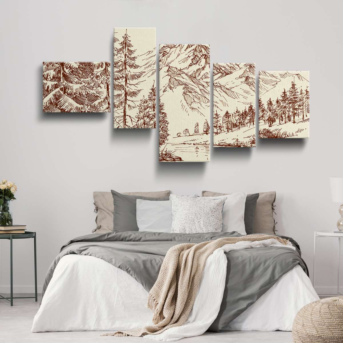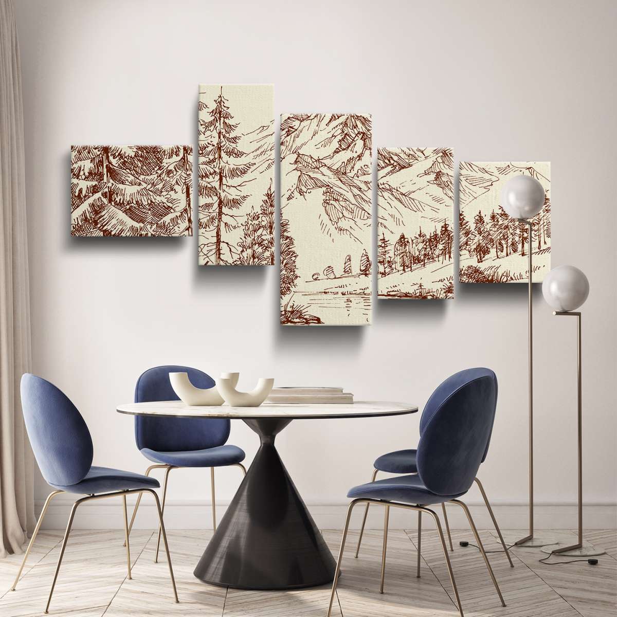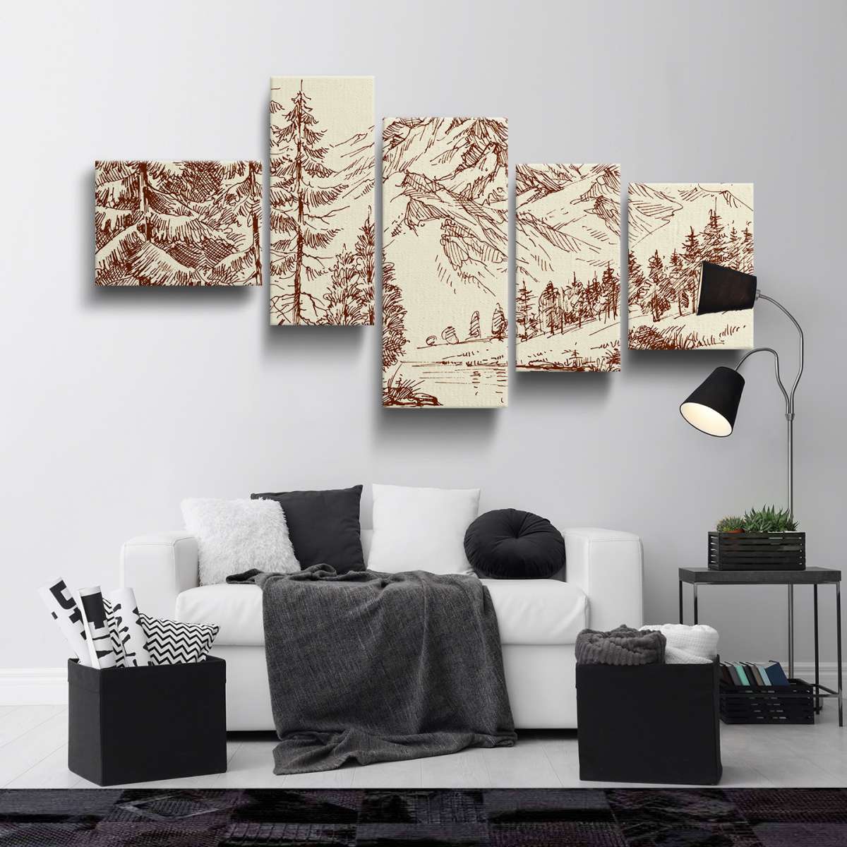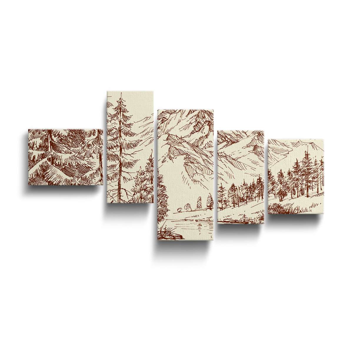 Alpská krajina a borový les - skica