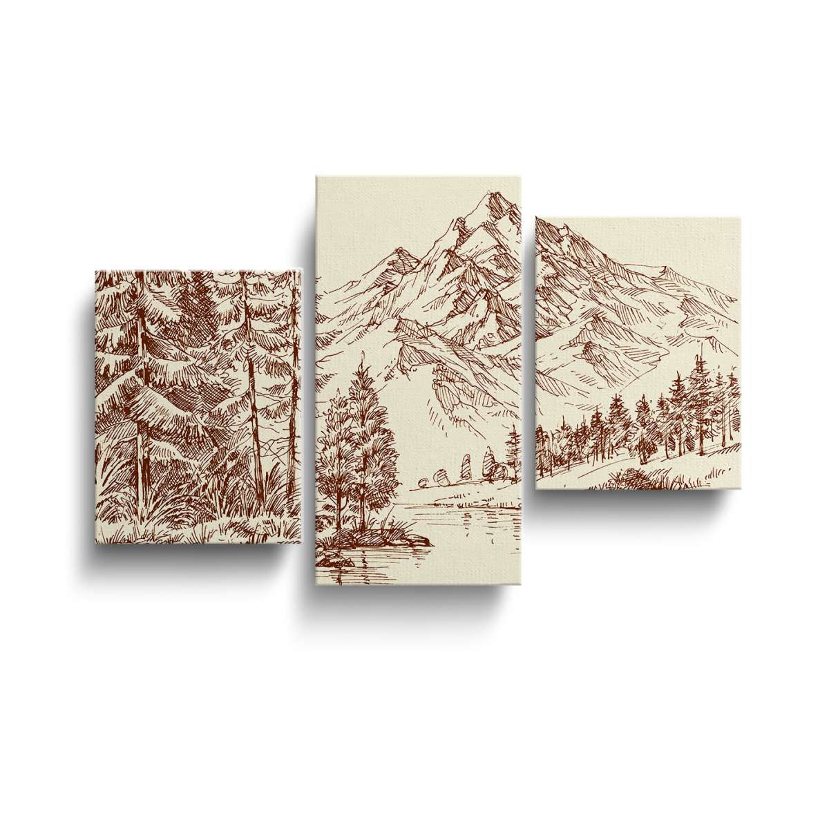 Alpská krajina a borový les - skica