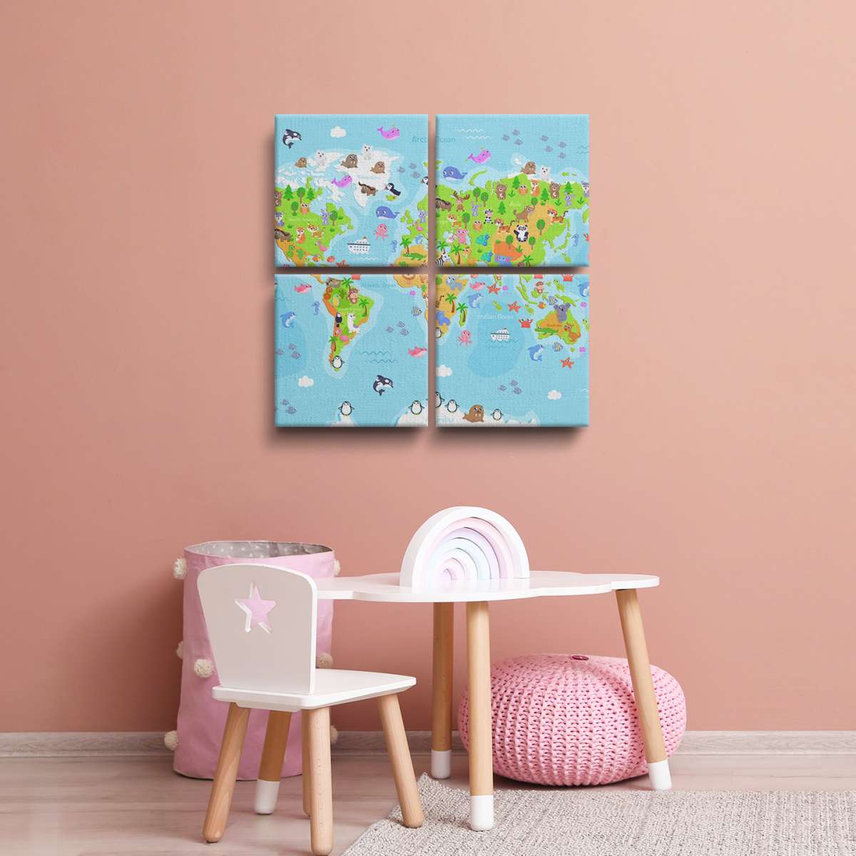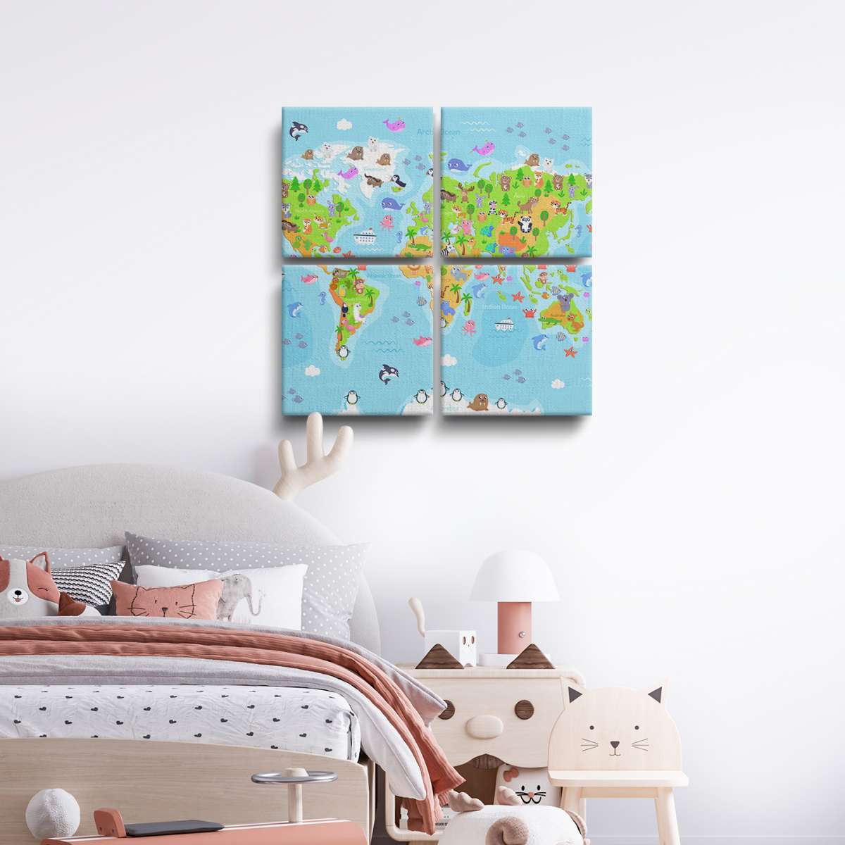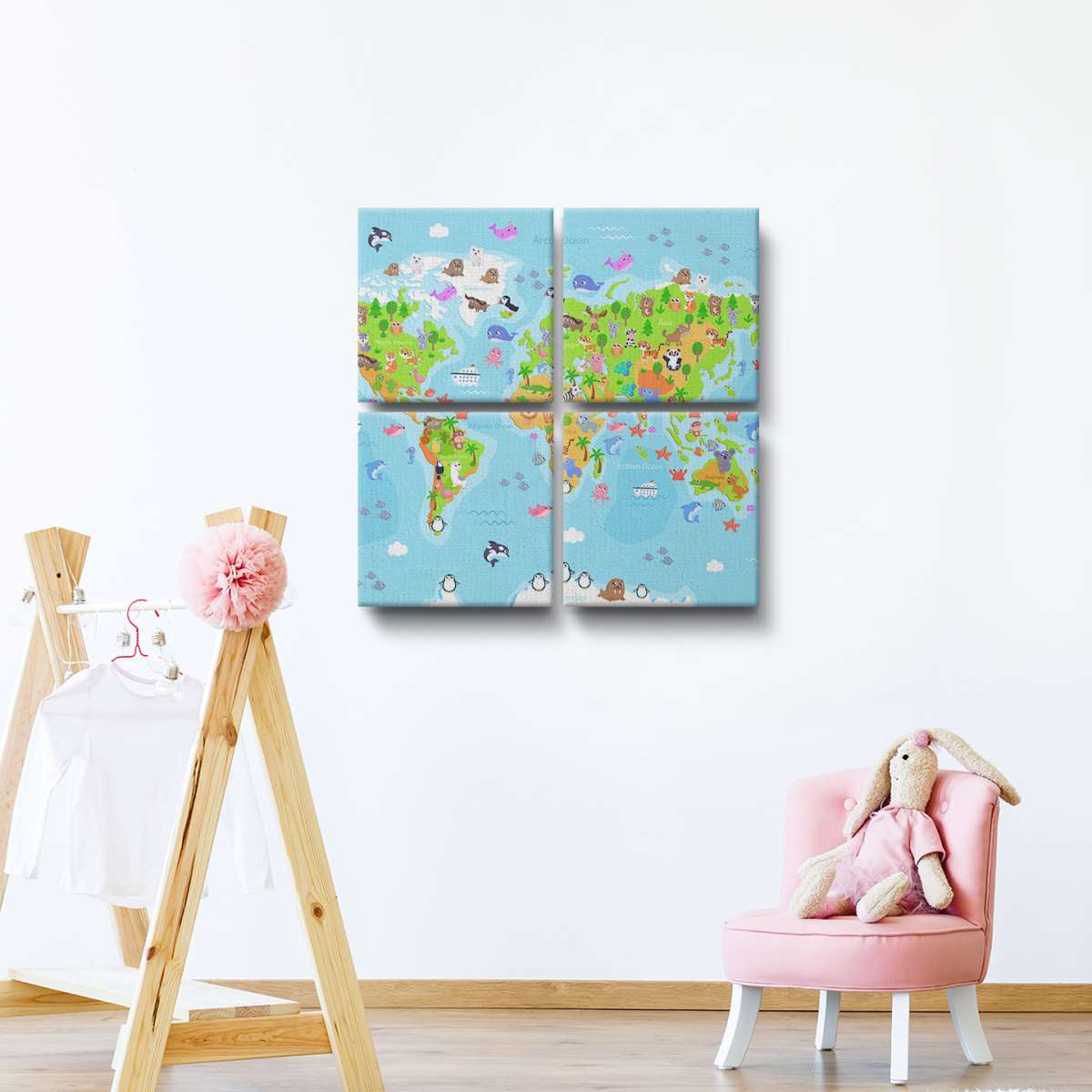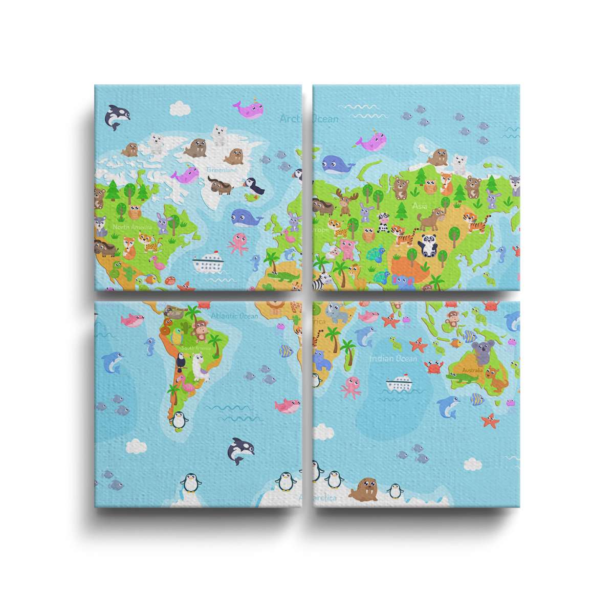 Barevná mapa světa se zvířátky - ilustrace