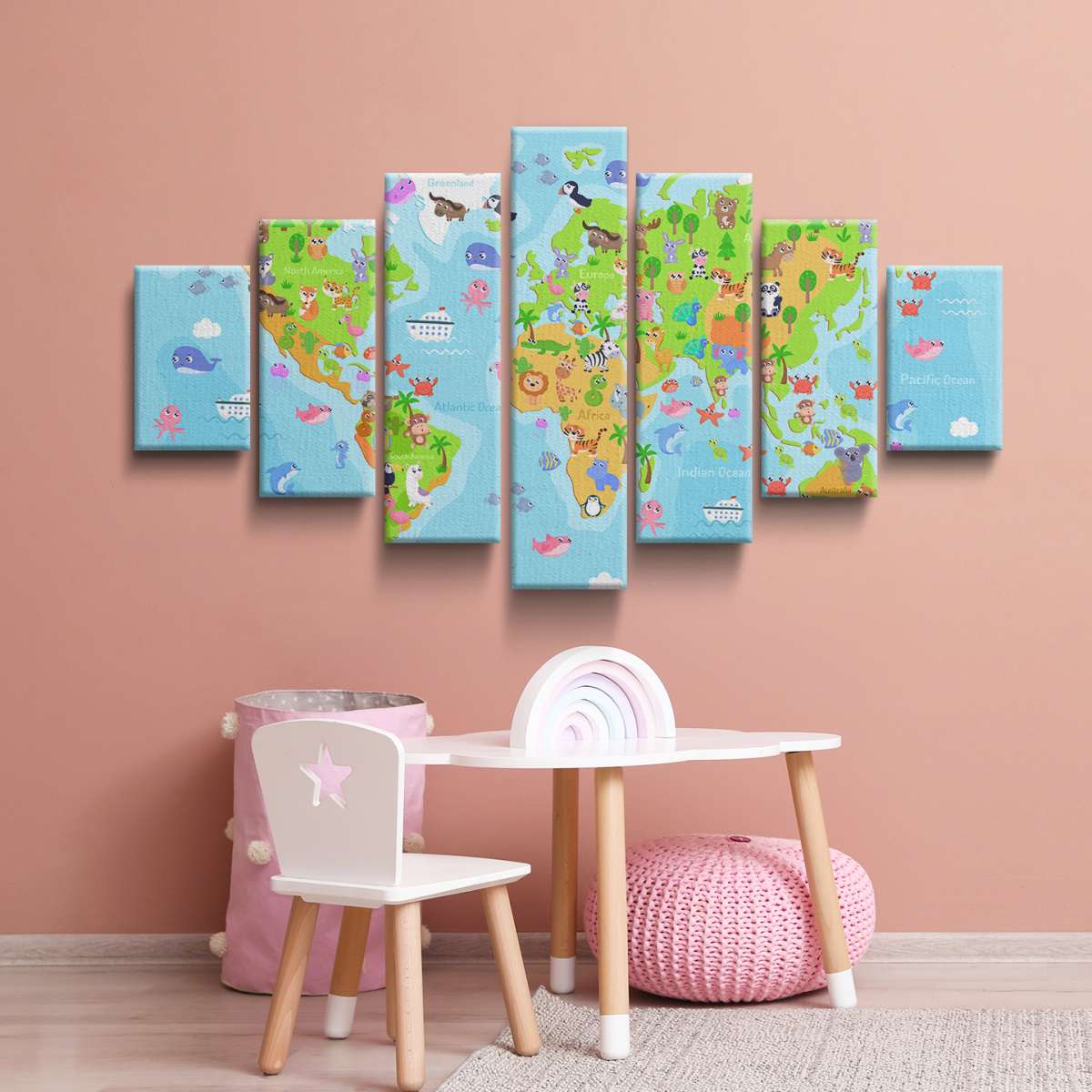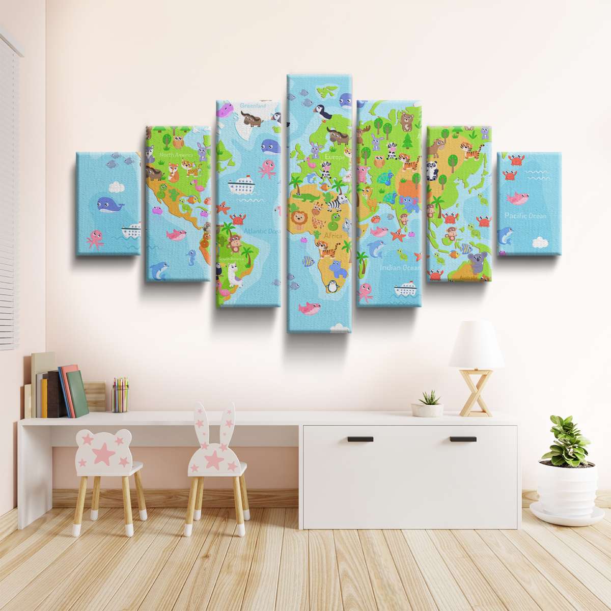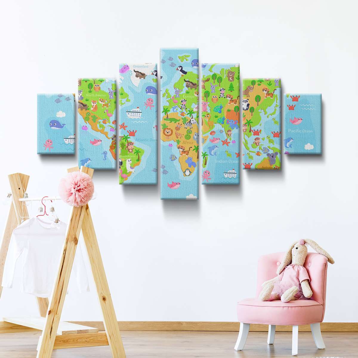 Barevná mapa světa se zvířátky - ilustrace