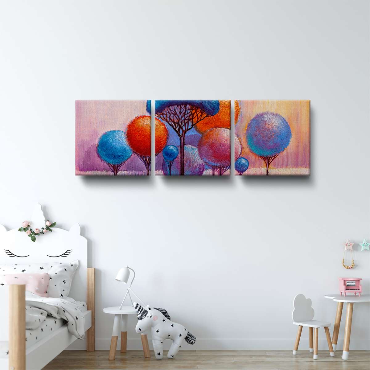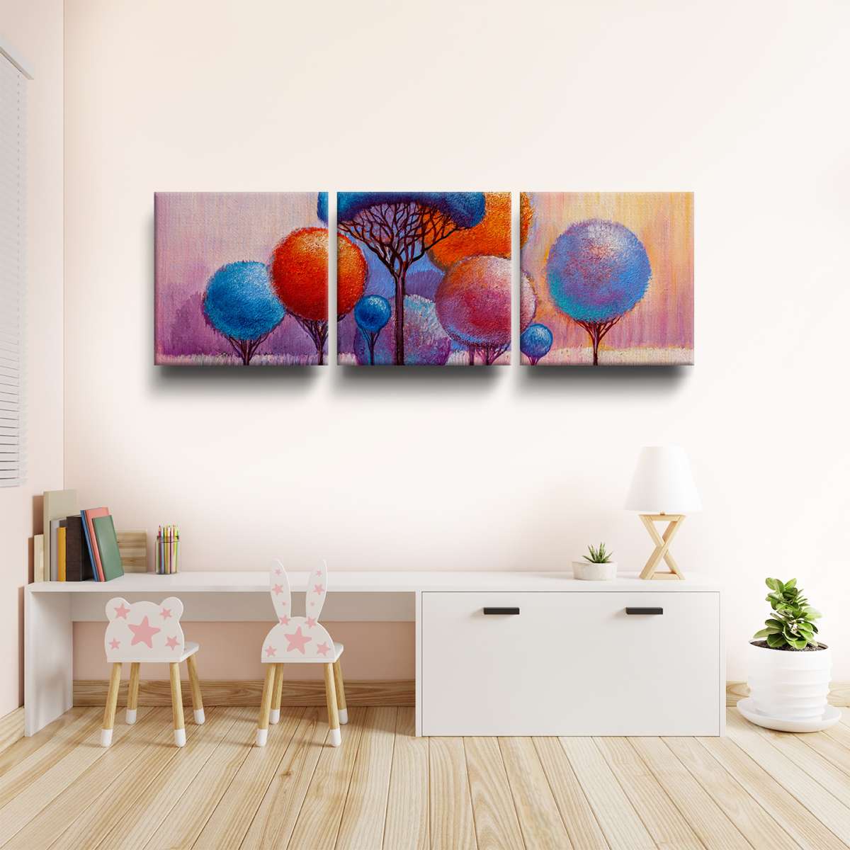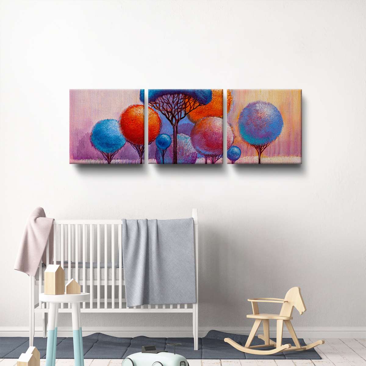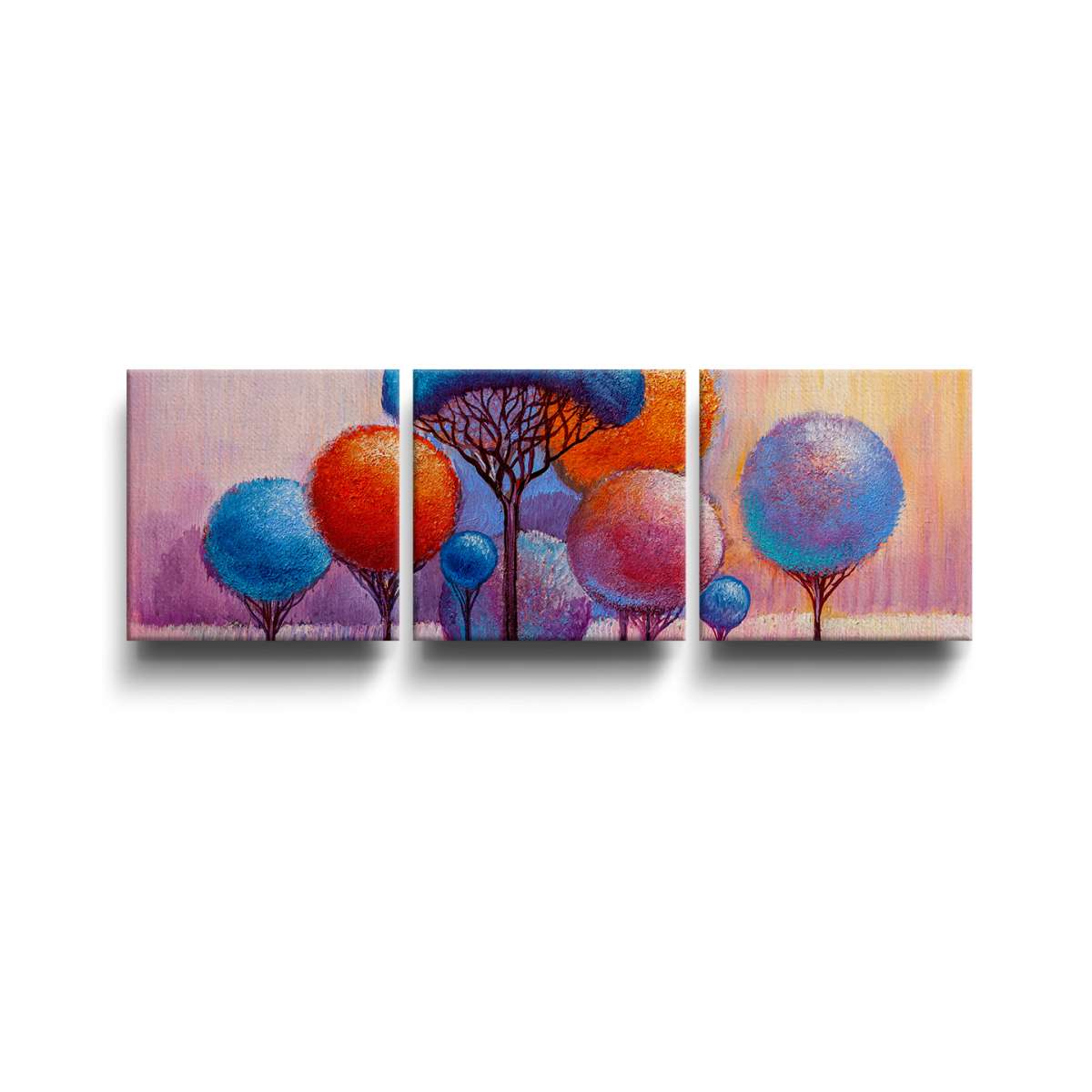 Barevné kulaté stromy - olejomalba