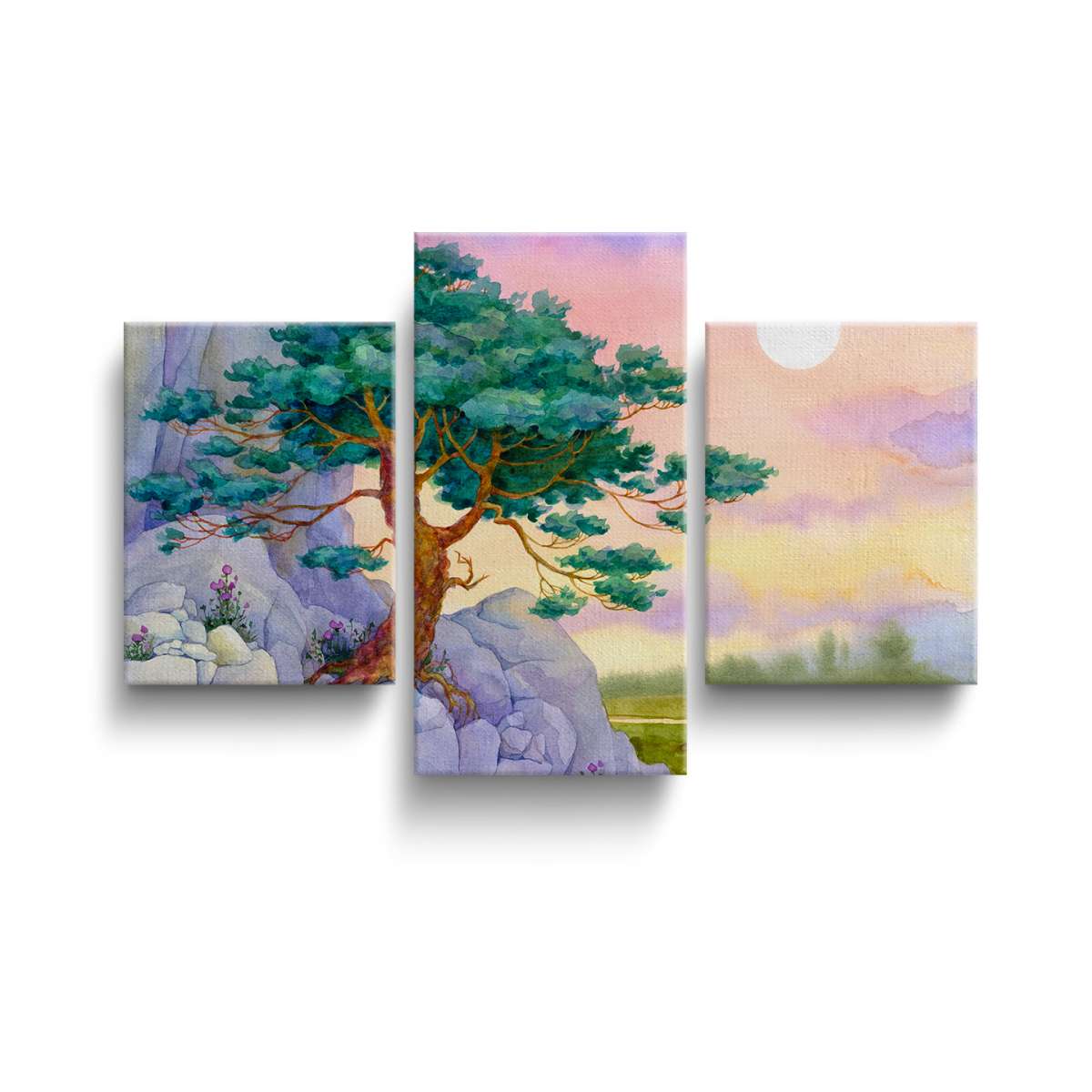 Borovice na skále nad údolím - akvarel