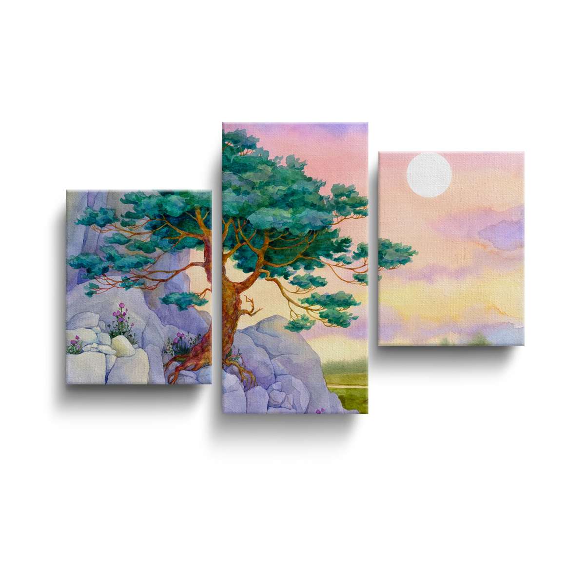 Borovice na skále nad údolím - akvarel