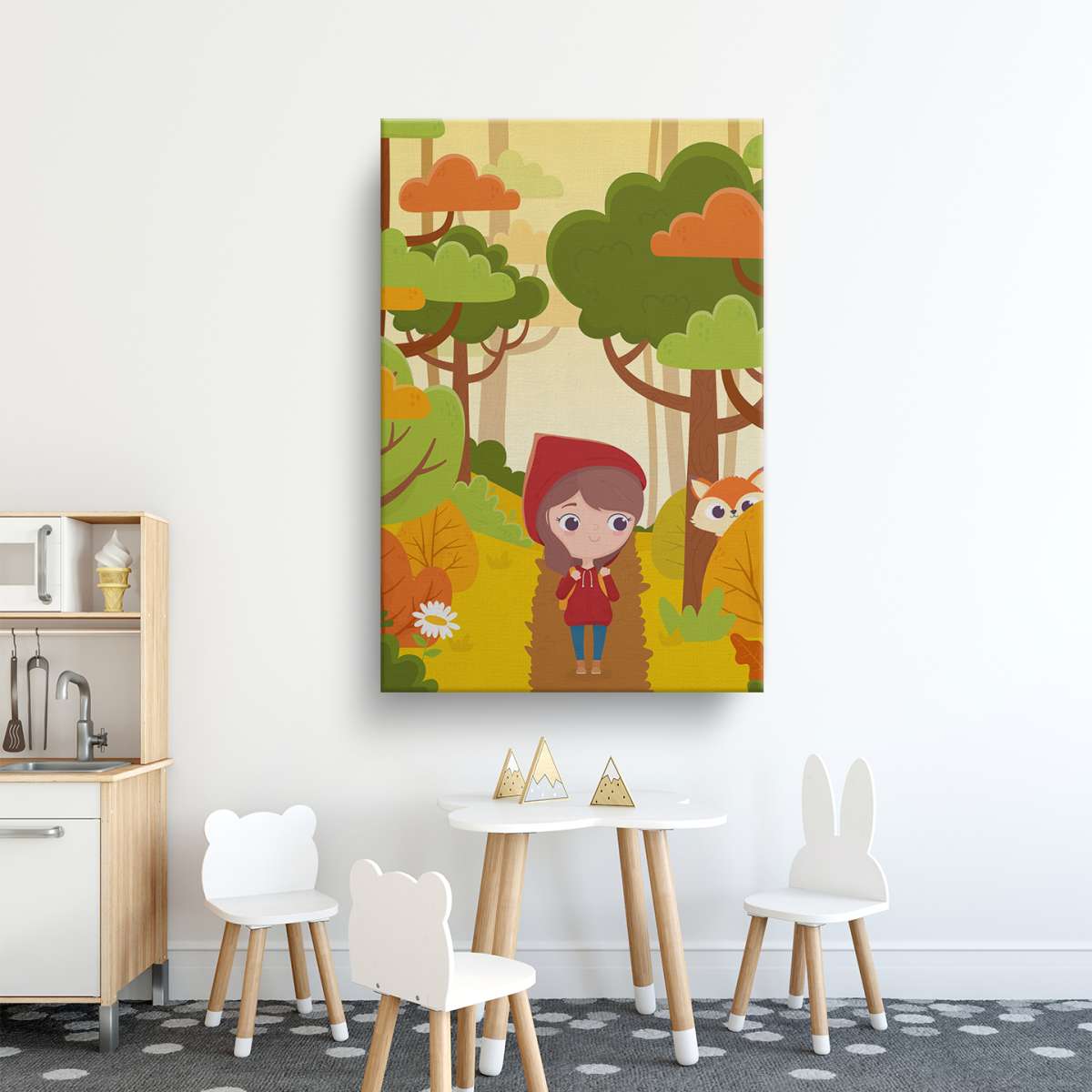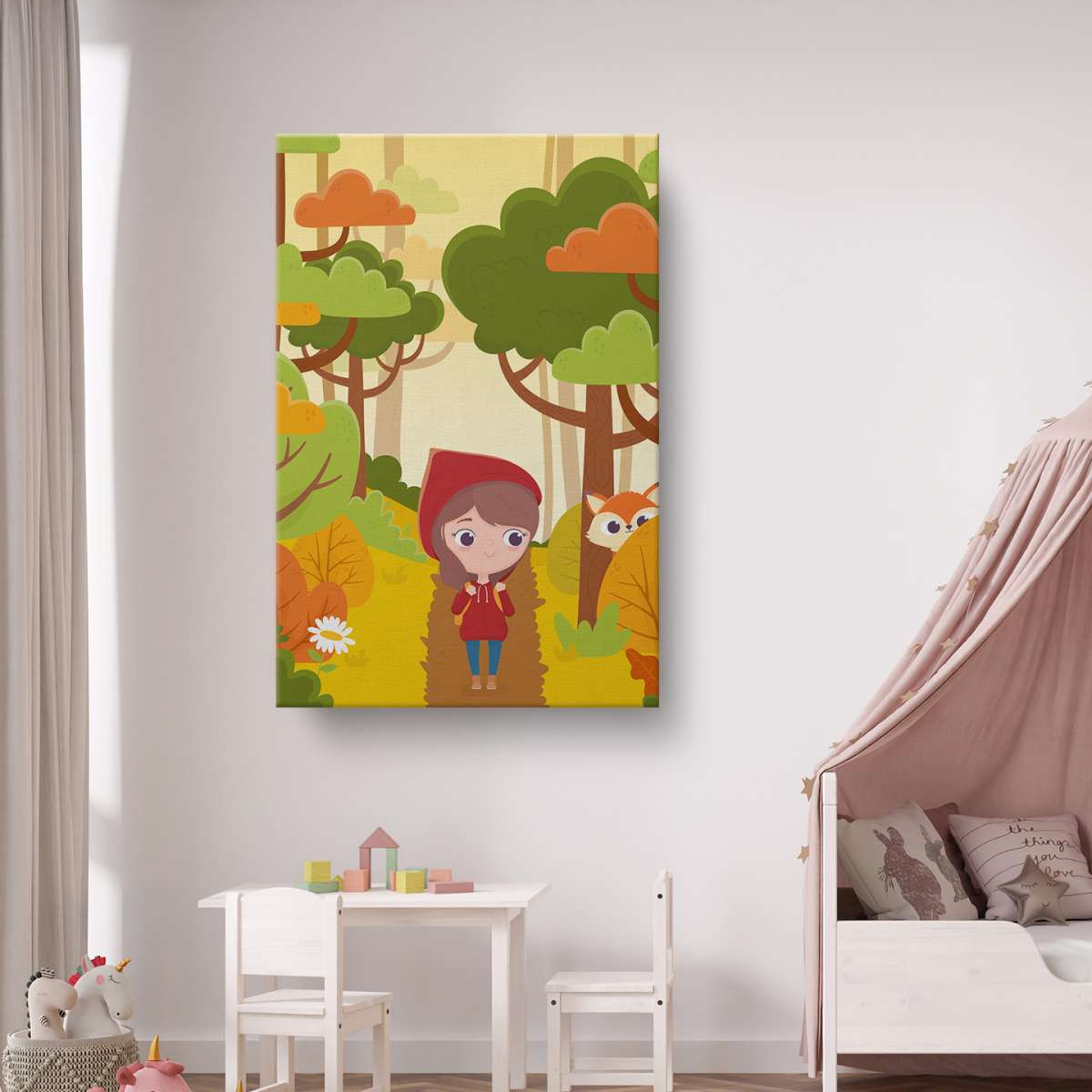 Červená karkulka v lese s liškou - ilustrace