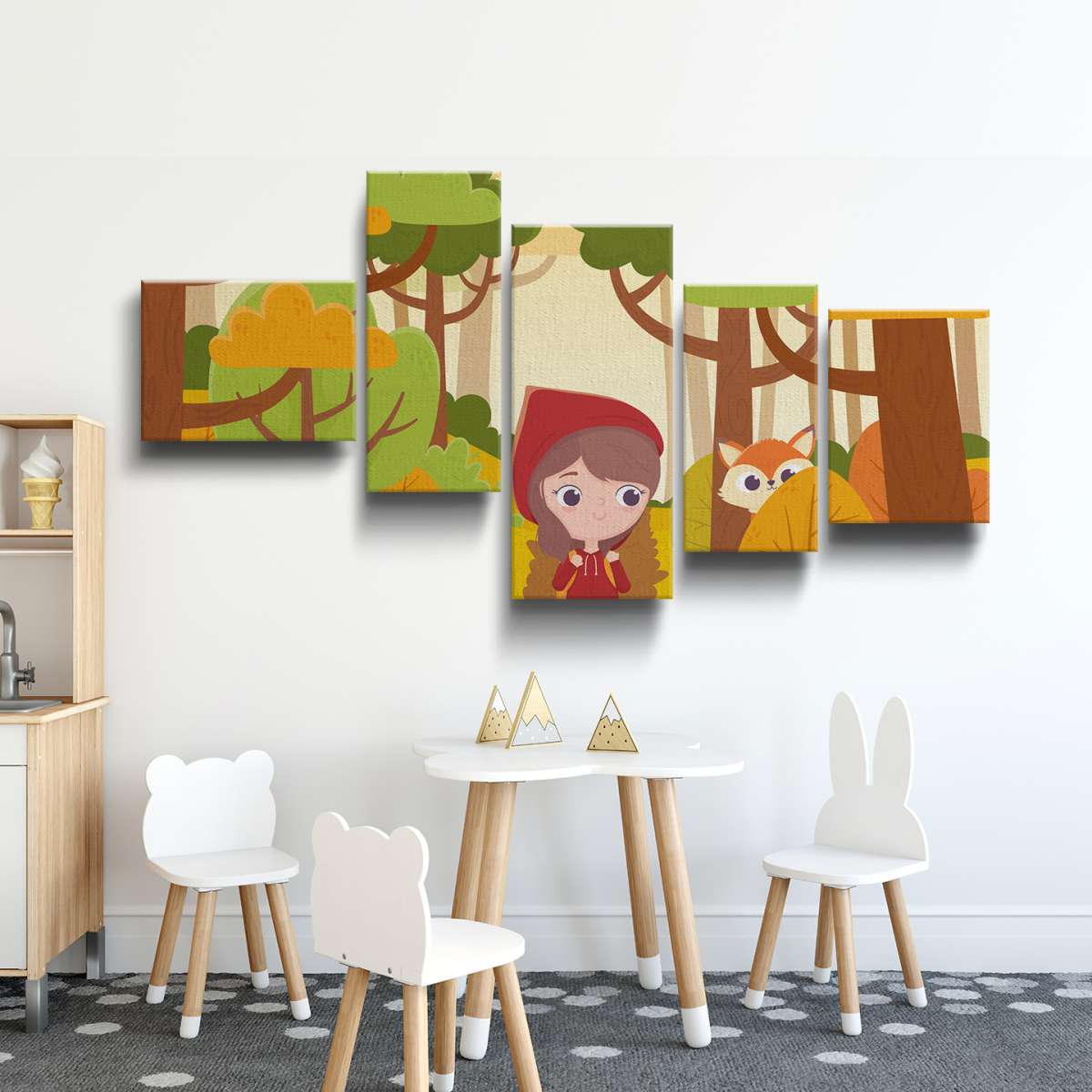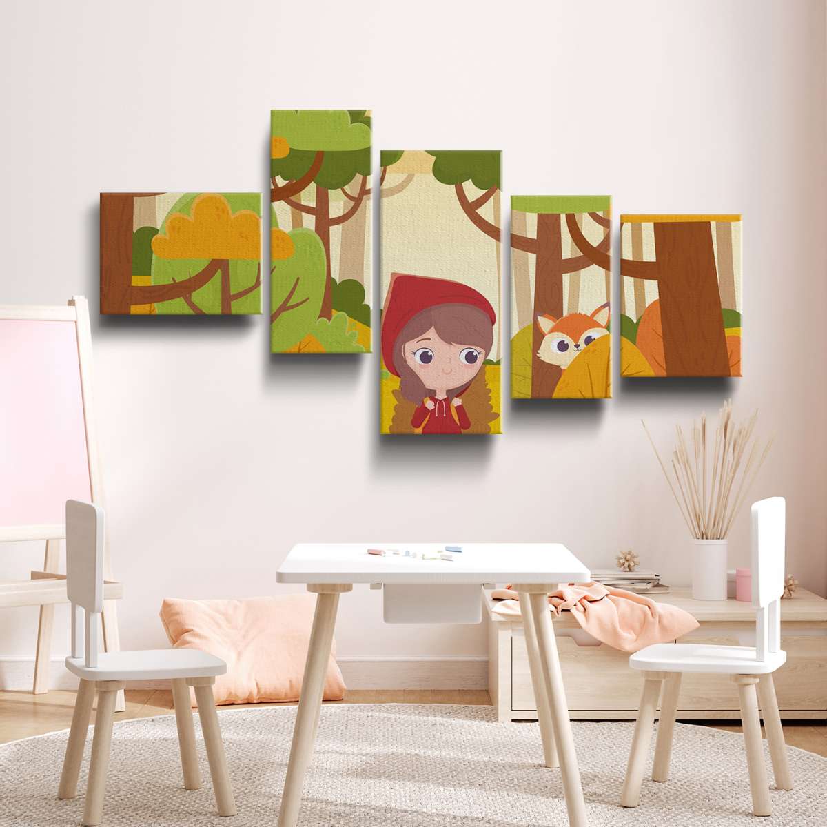 Červená karkulka v lese s liškou - ilustrace