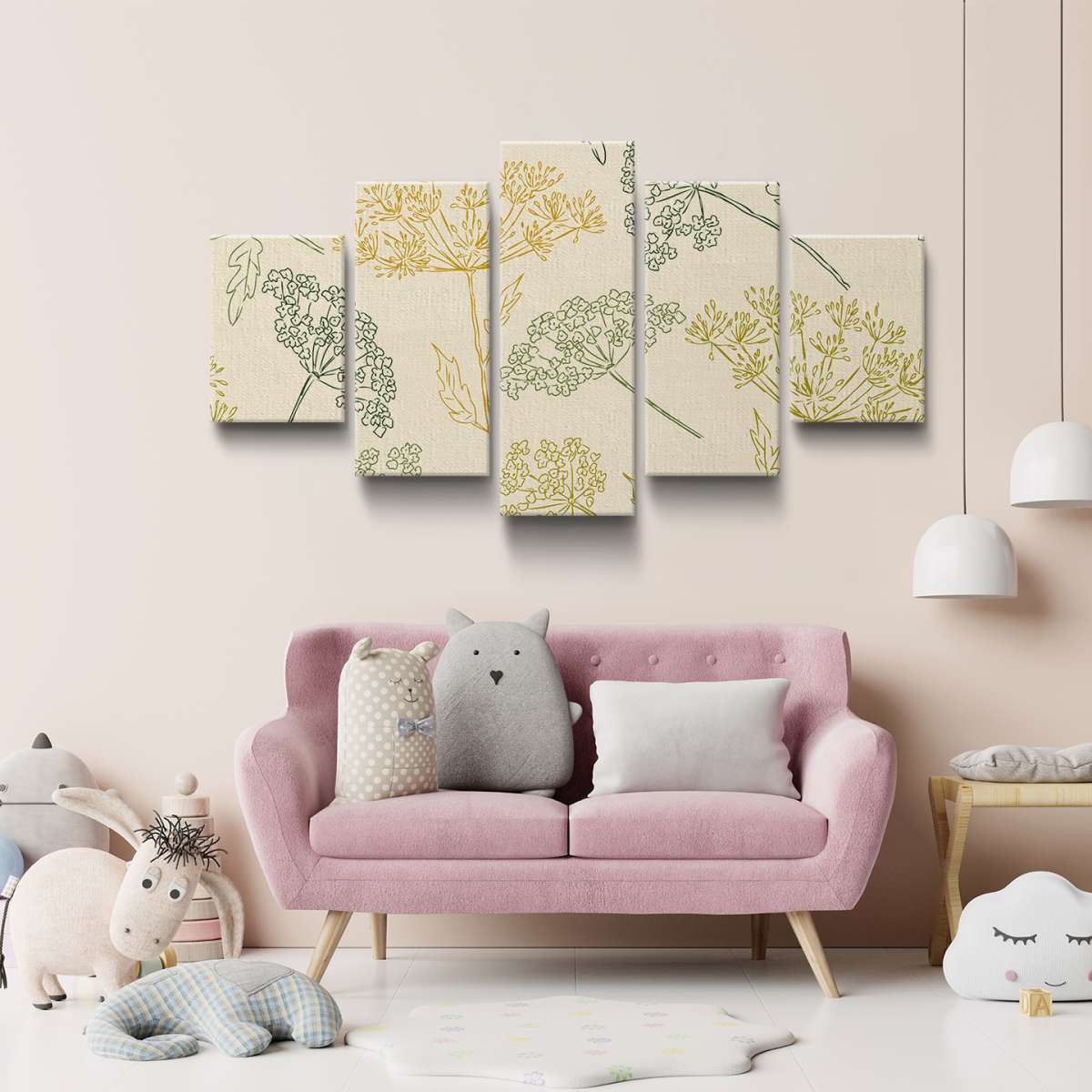 Deštníkovité květiny - pastelový vzor