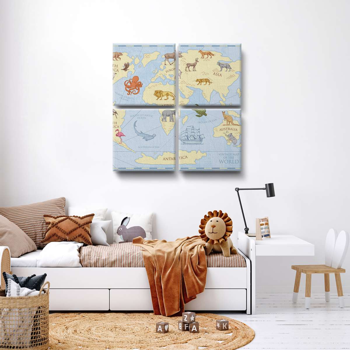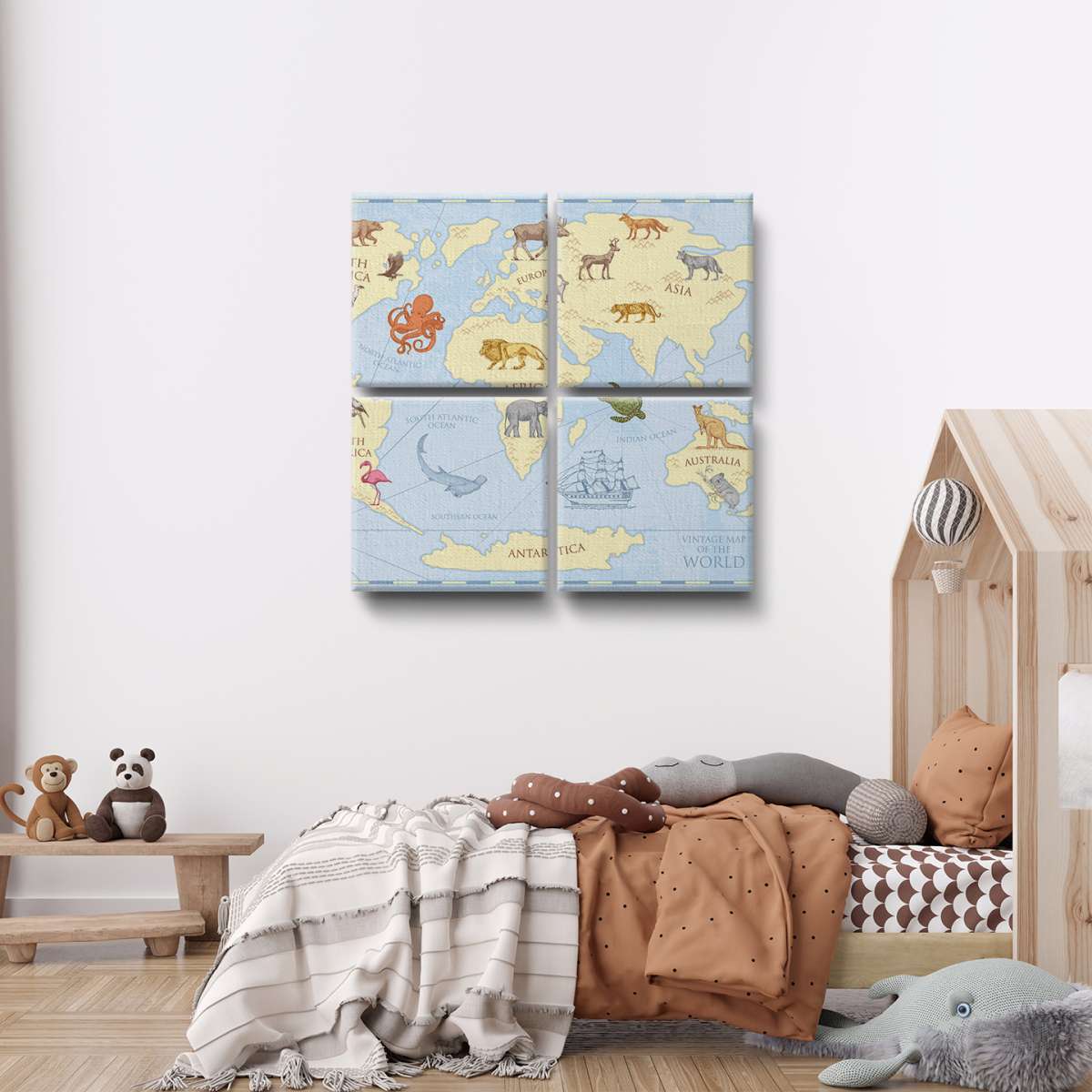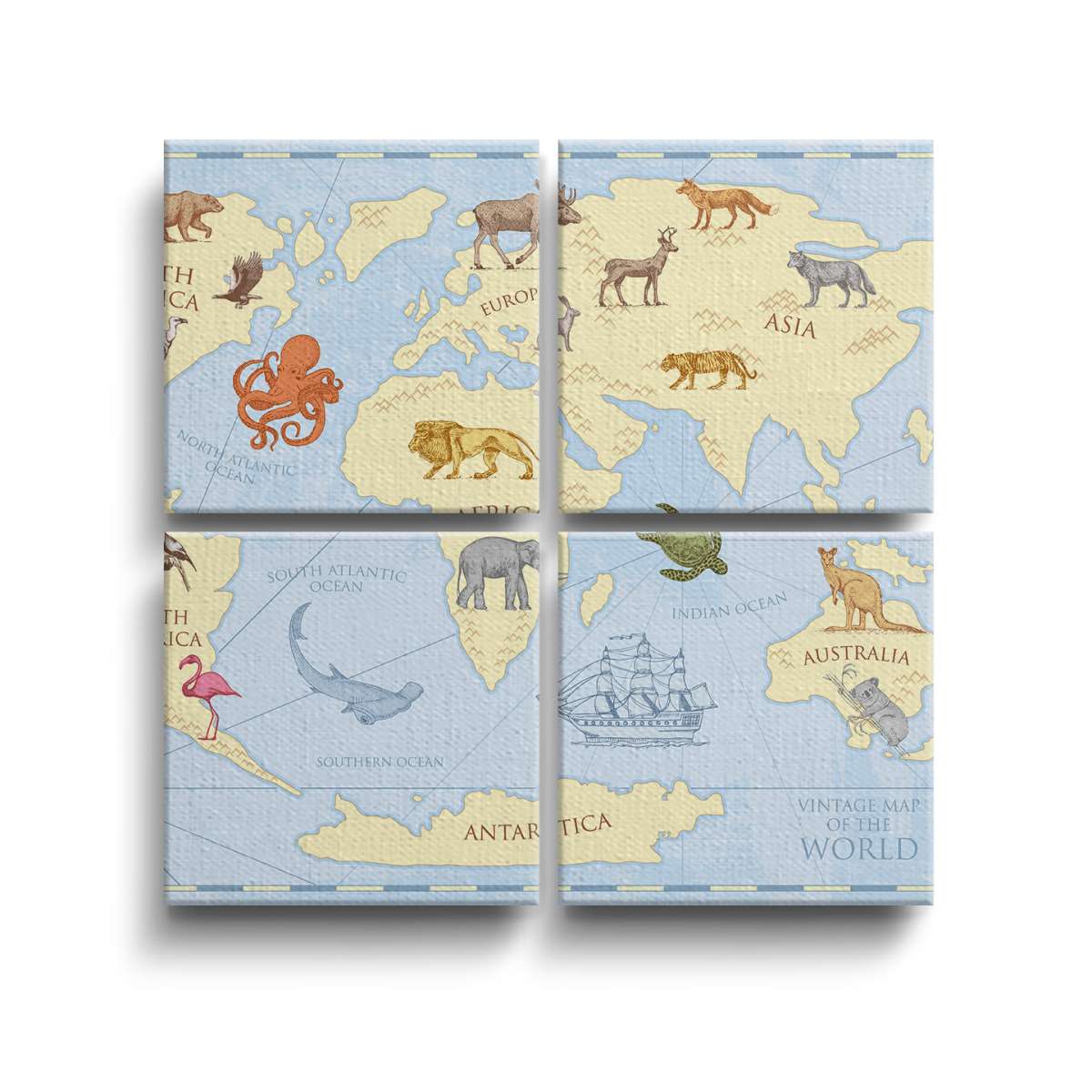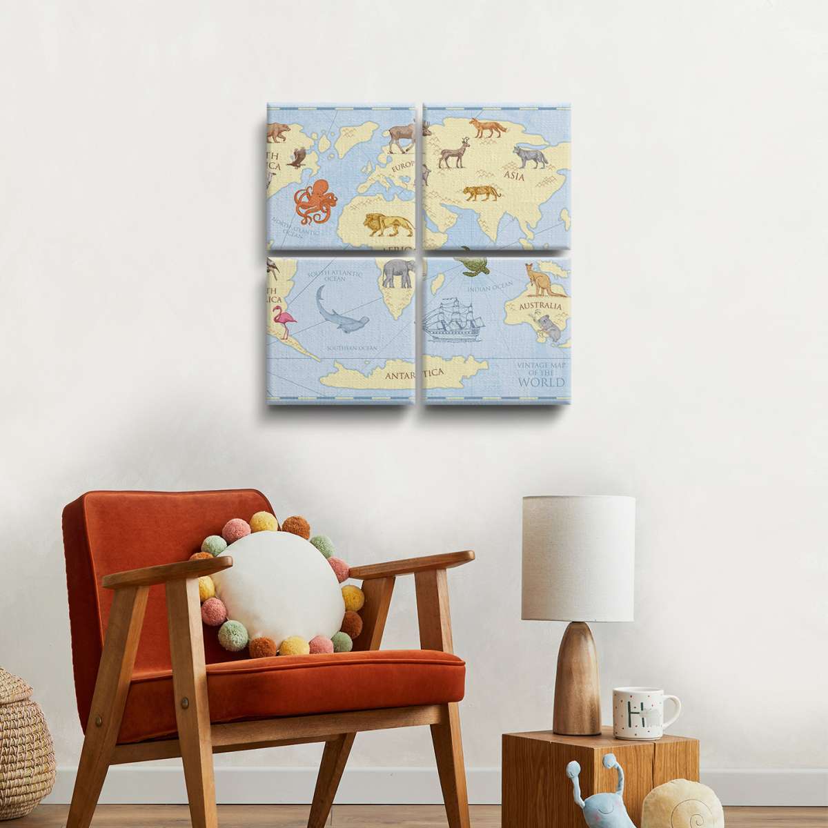 Dětská mapa světa, barevný vintage styl - ilustrace