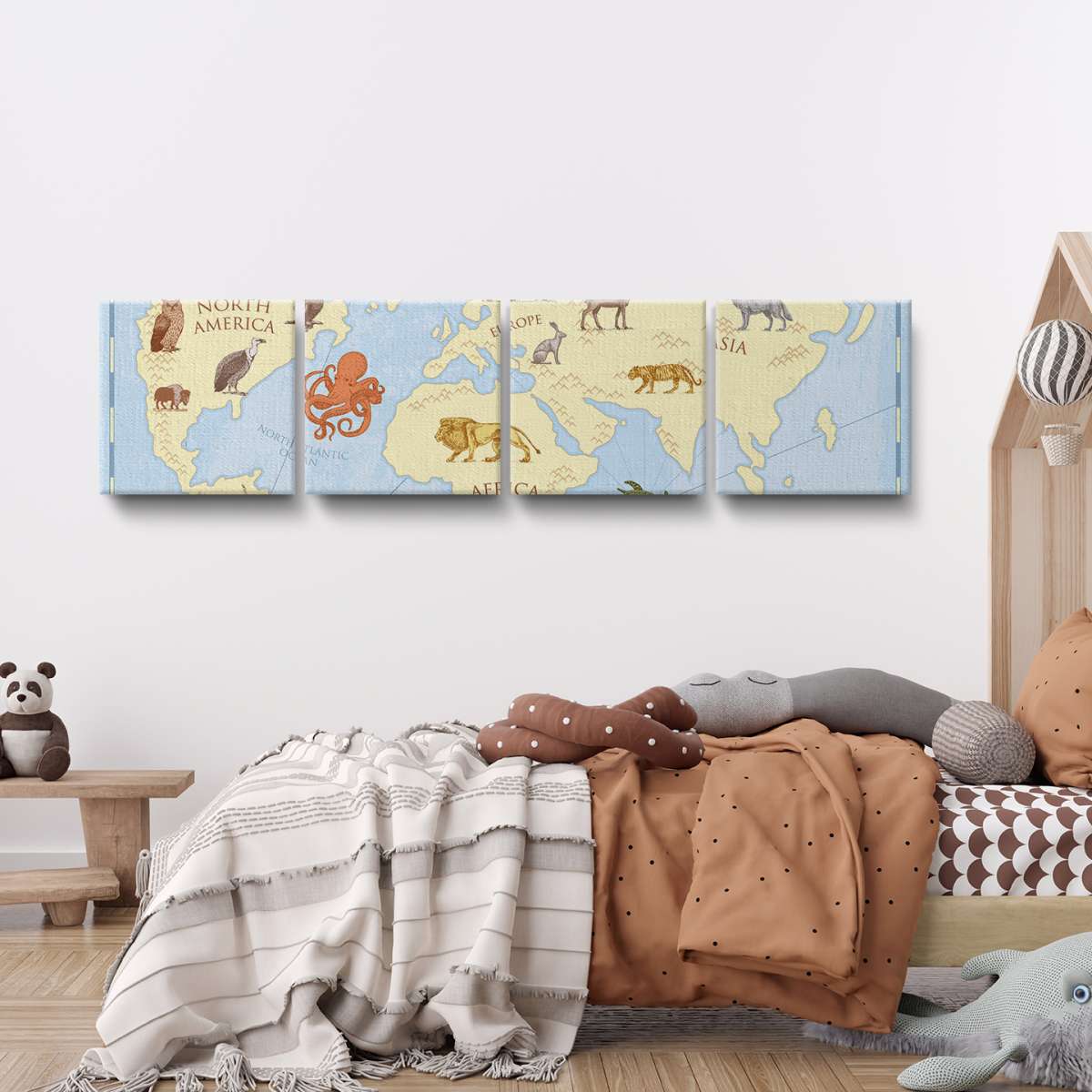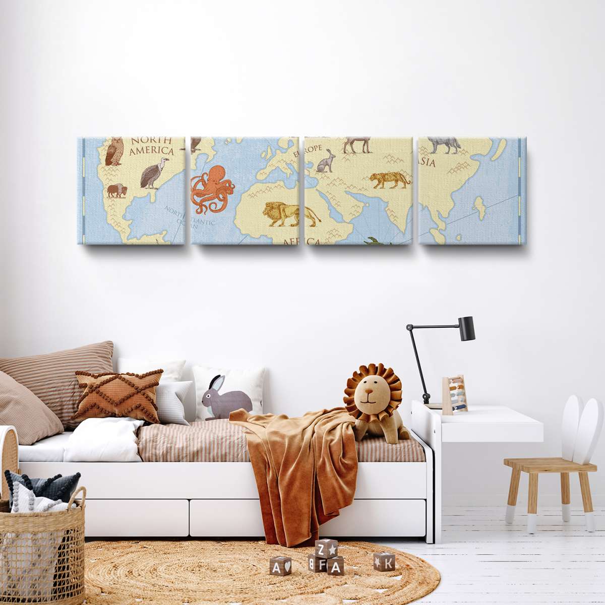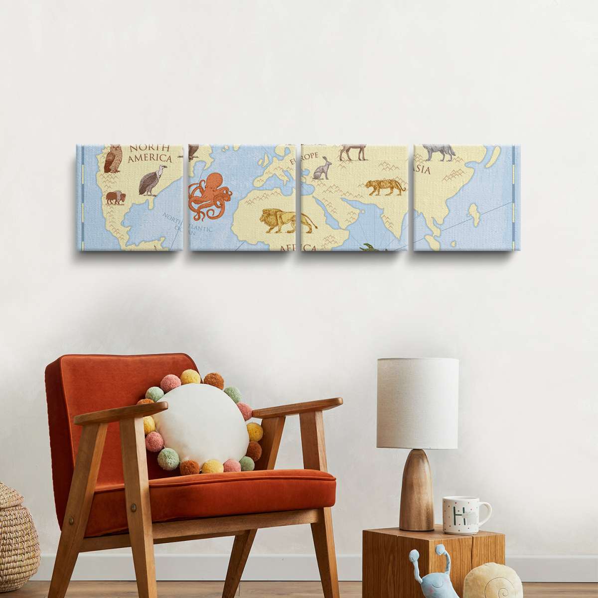 Dětská mapa světa, barevný vintage styl - ilustrace