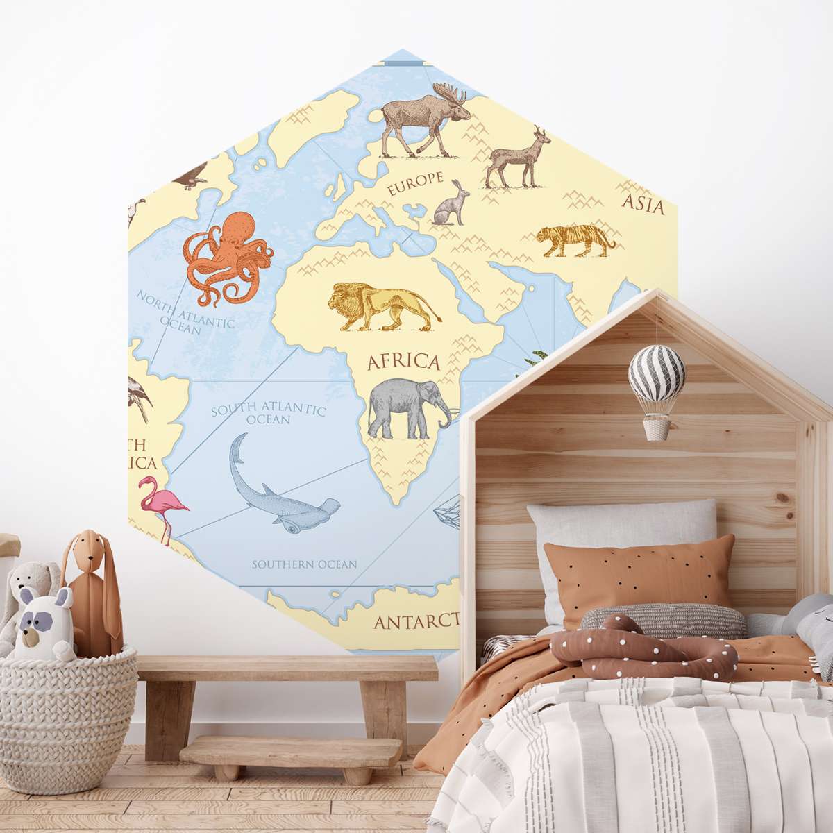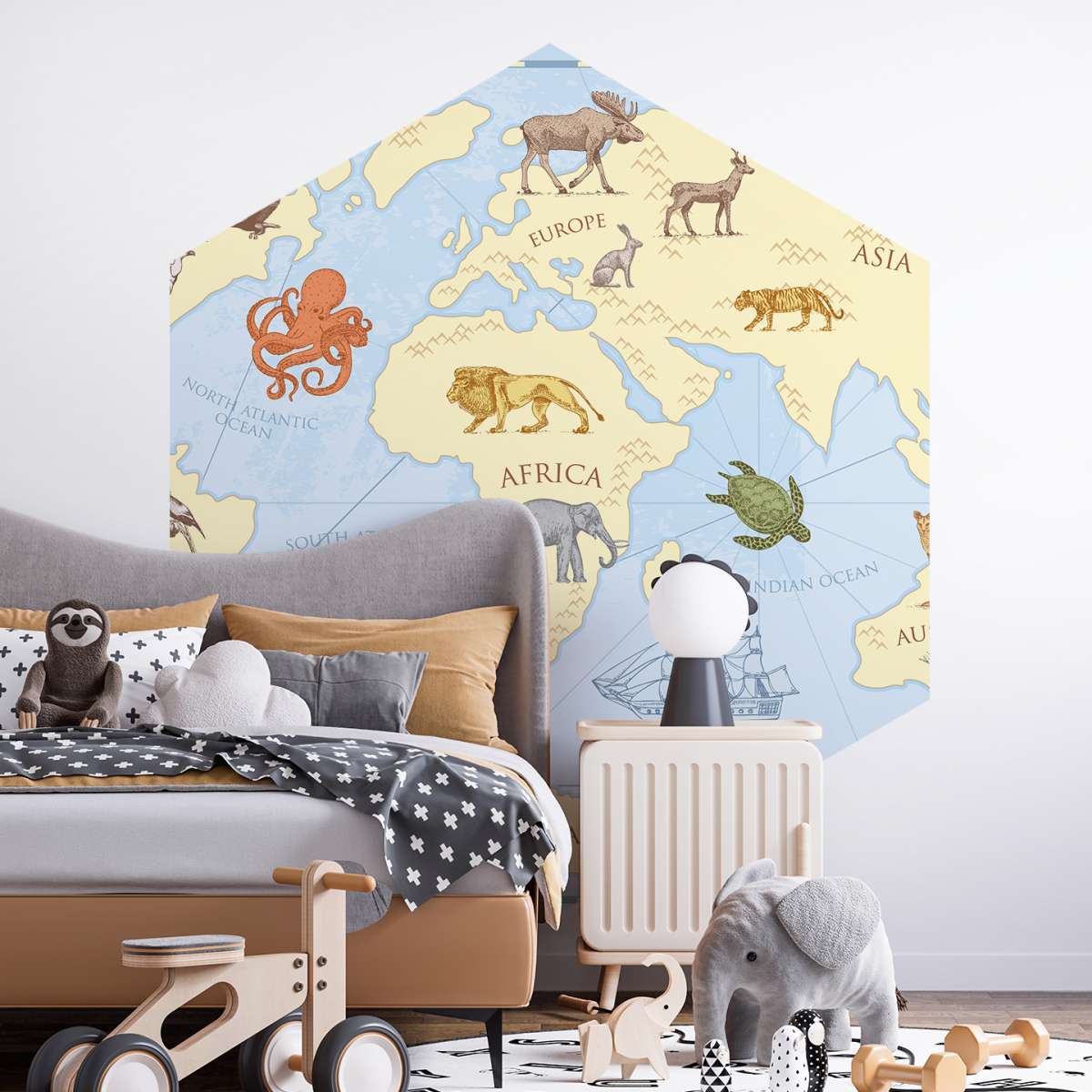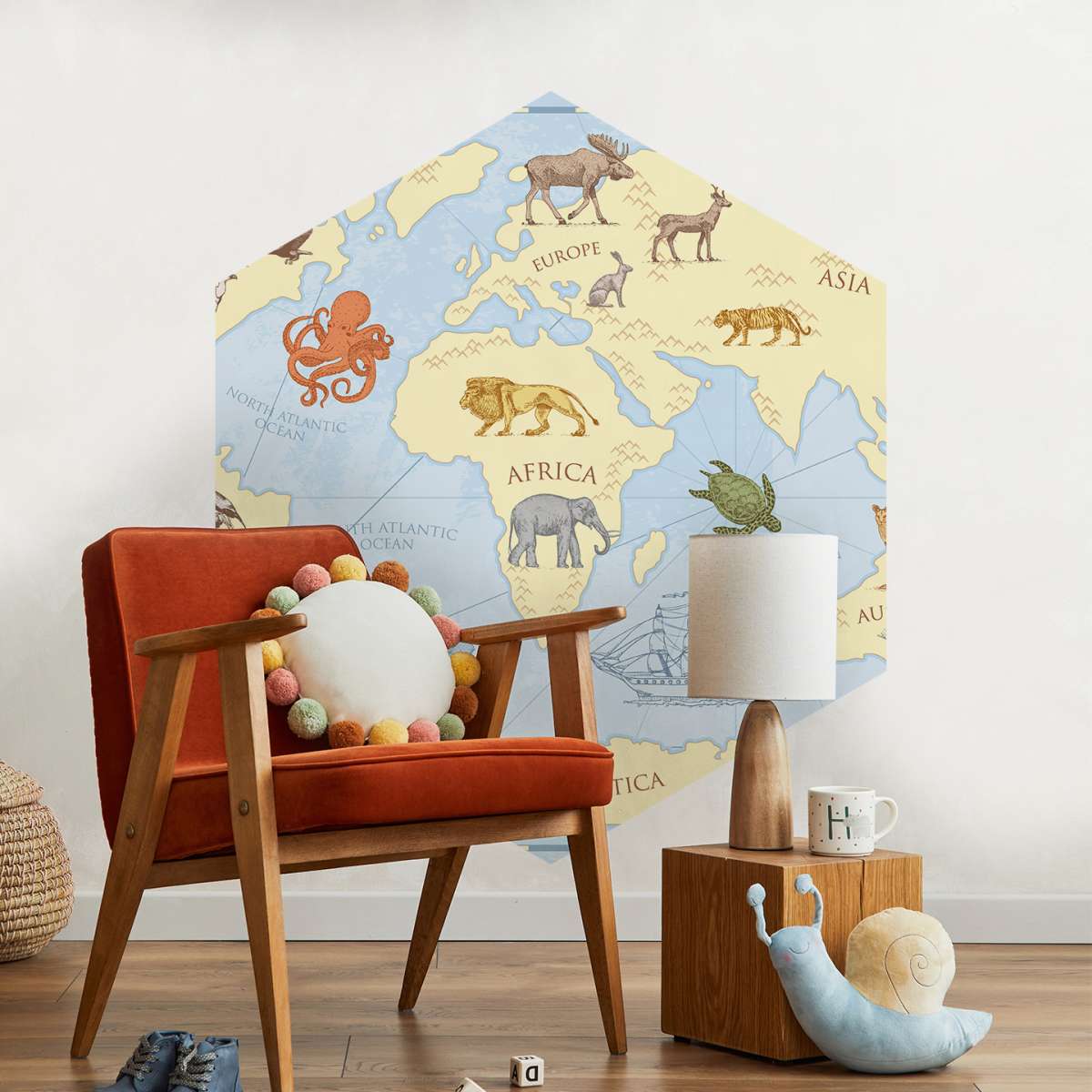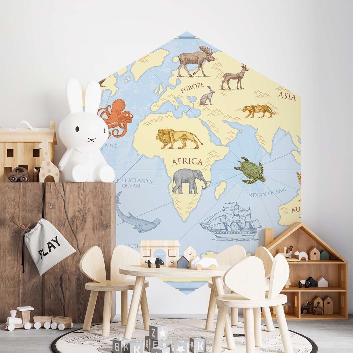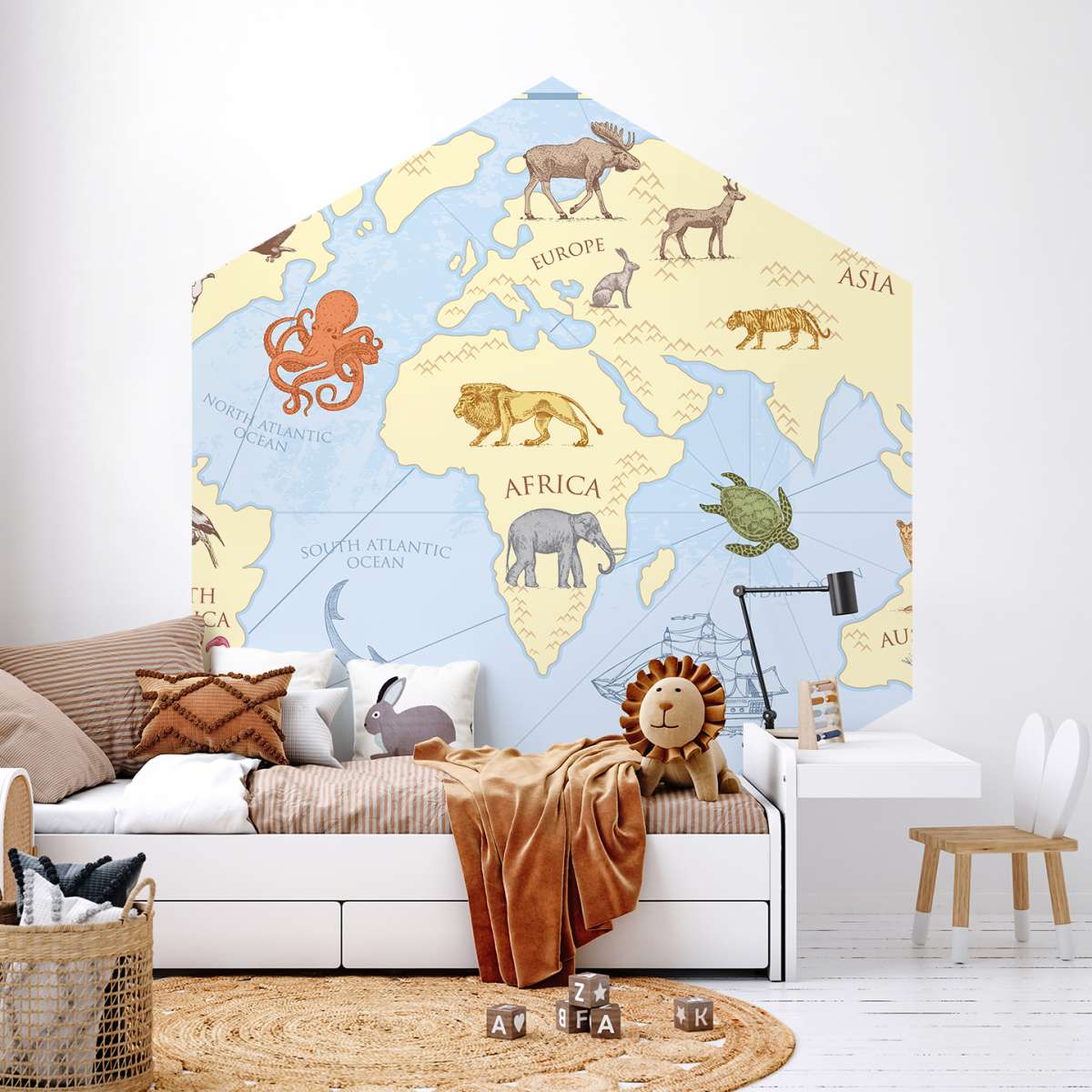 Dětská mapa světa, barevný vintage styl - ilustrace