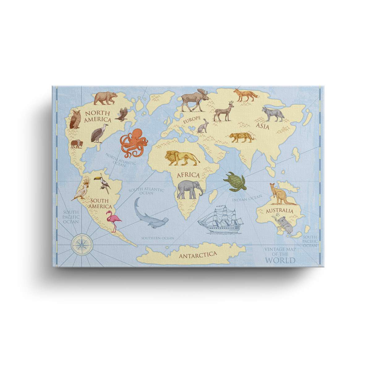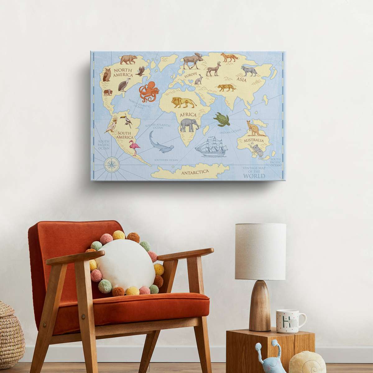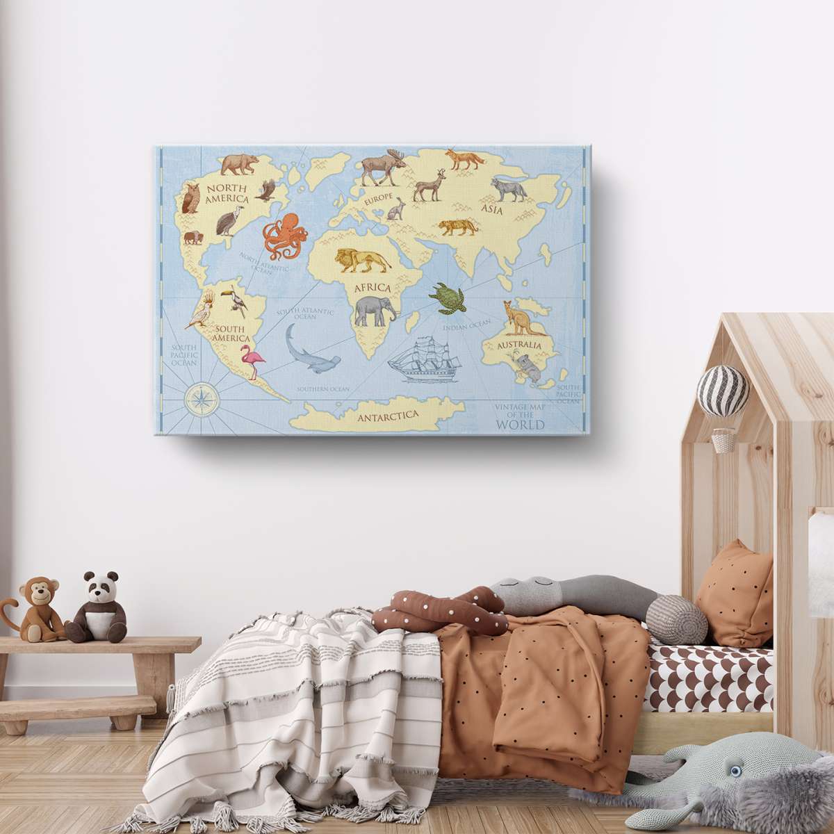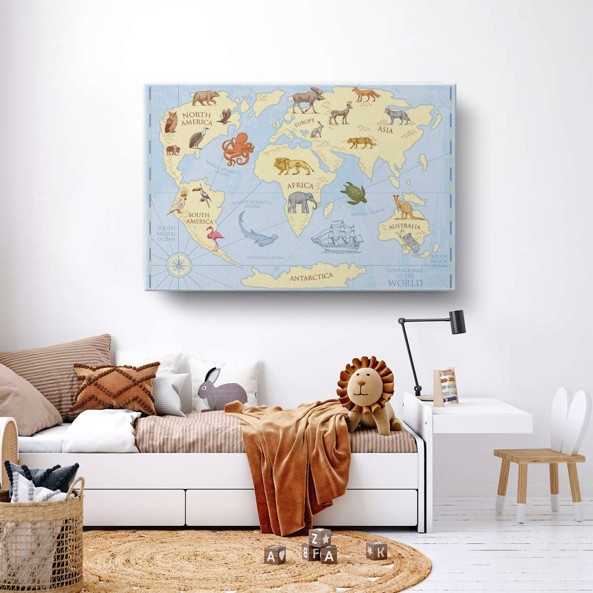 Dětská mapa světa, barevný vintage styl - ilustrace