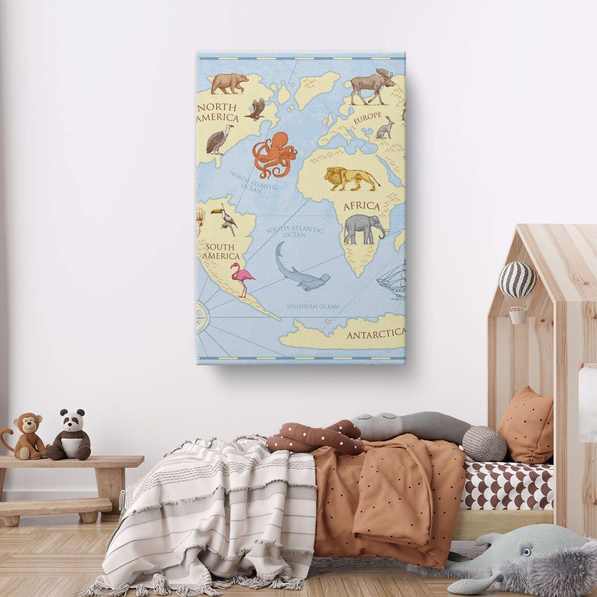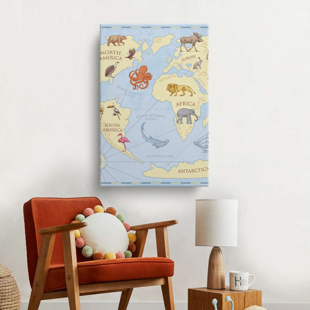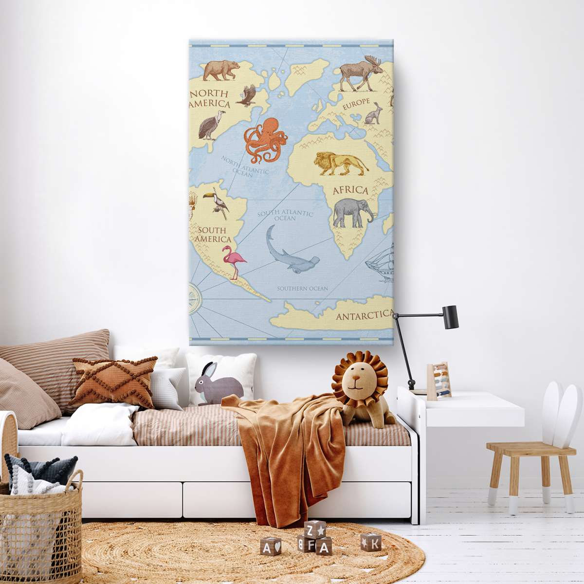 Dětská mapa světa, barevný vintage styl - ilustrace