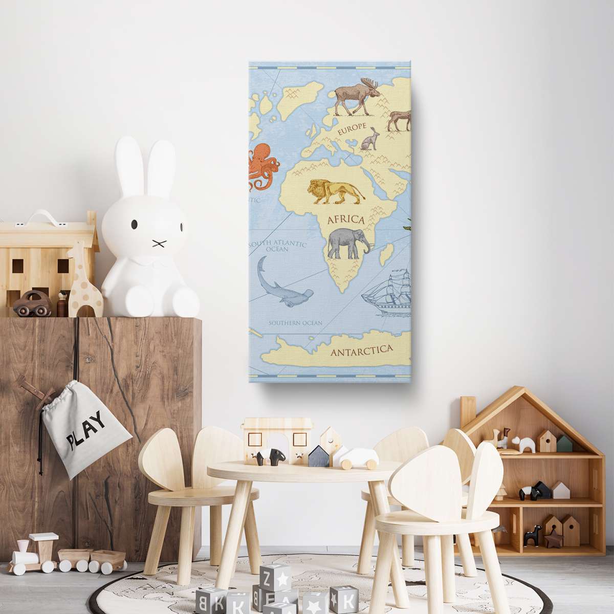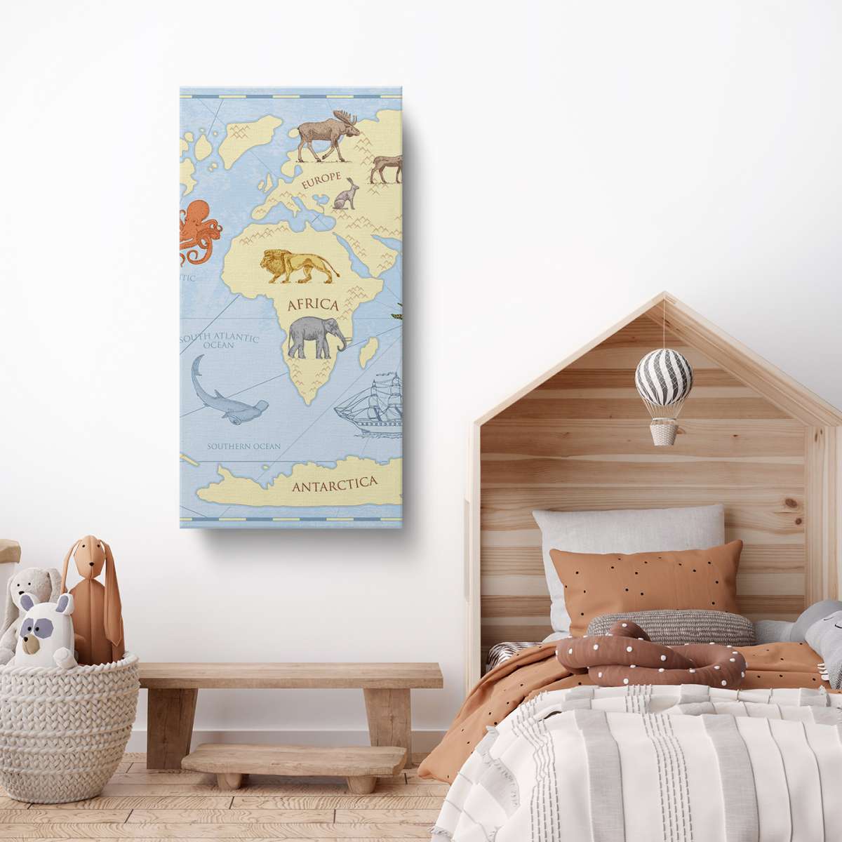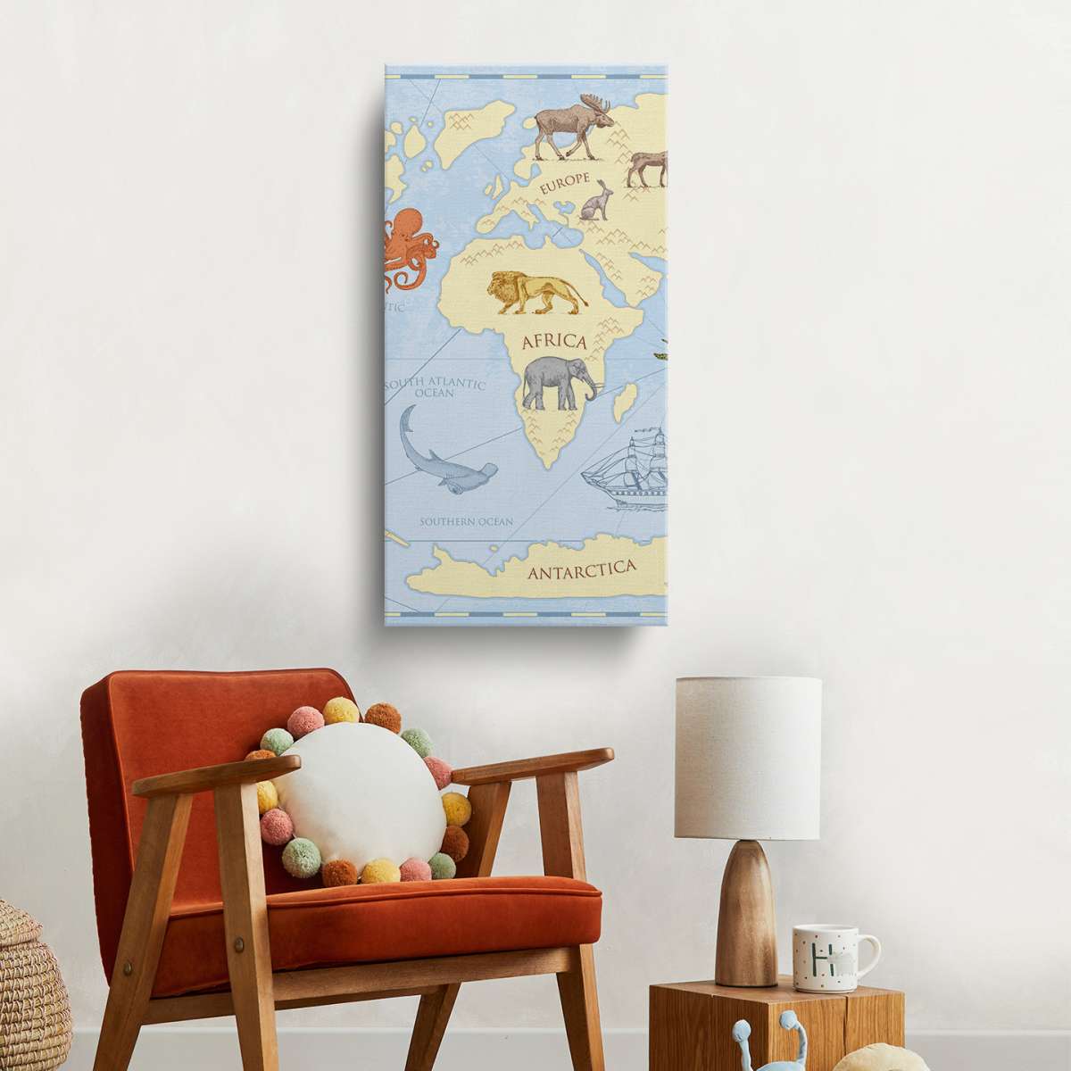 Dětská mapa světa, barevný vintage styl - ilustrace