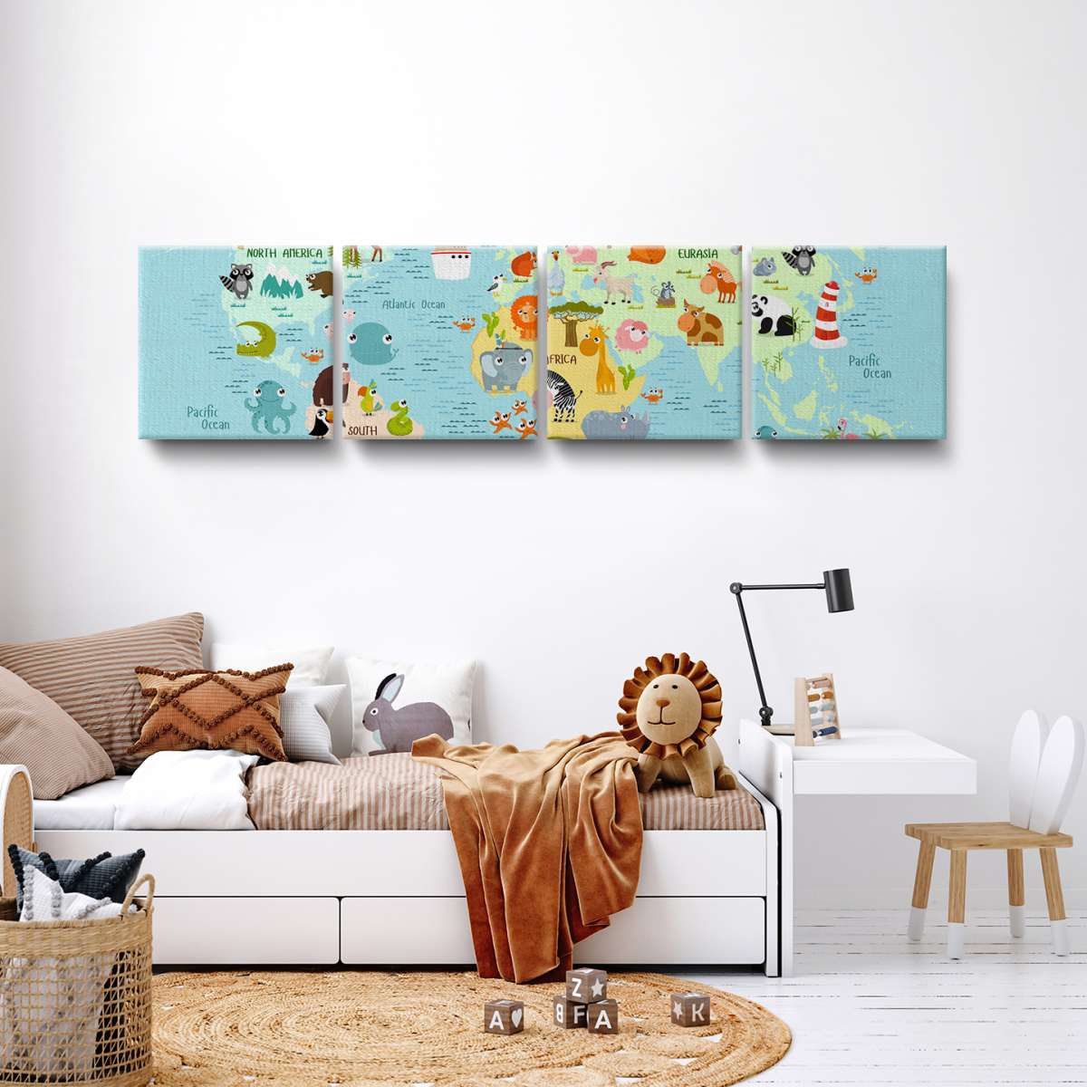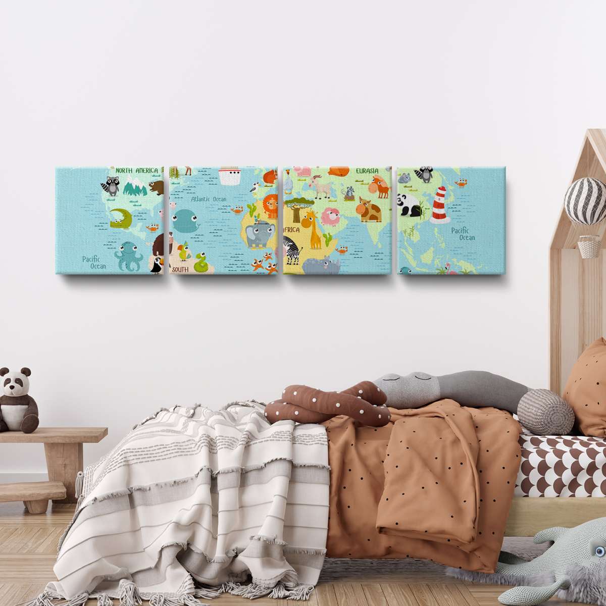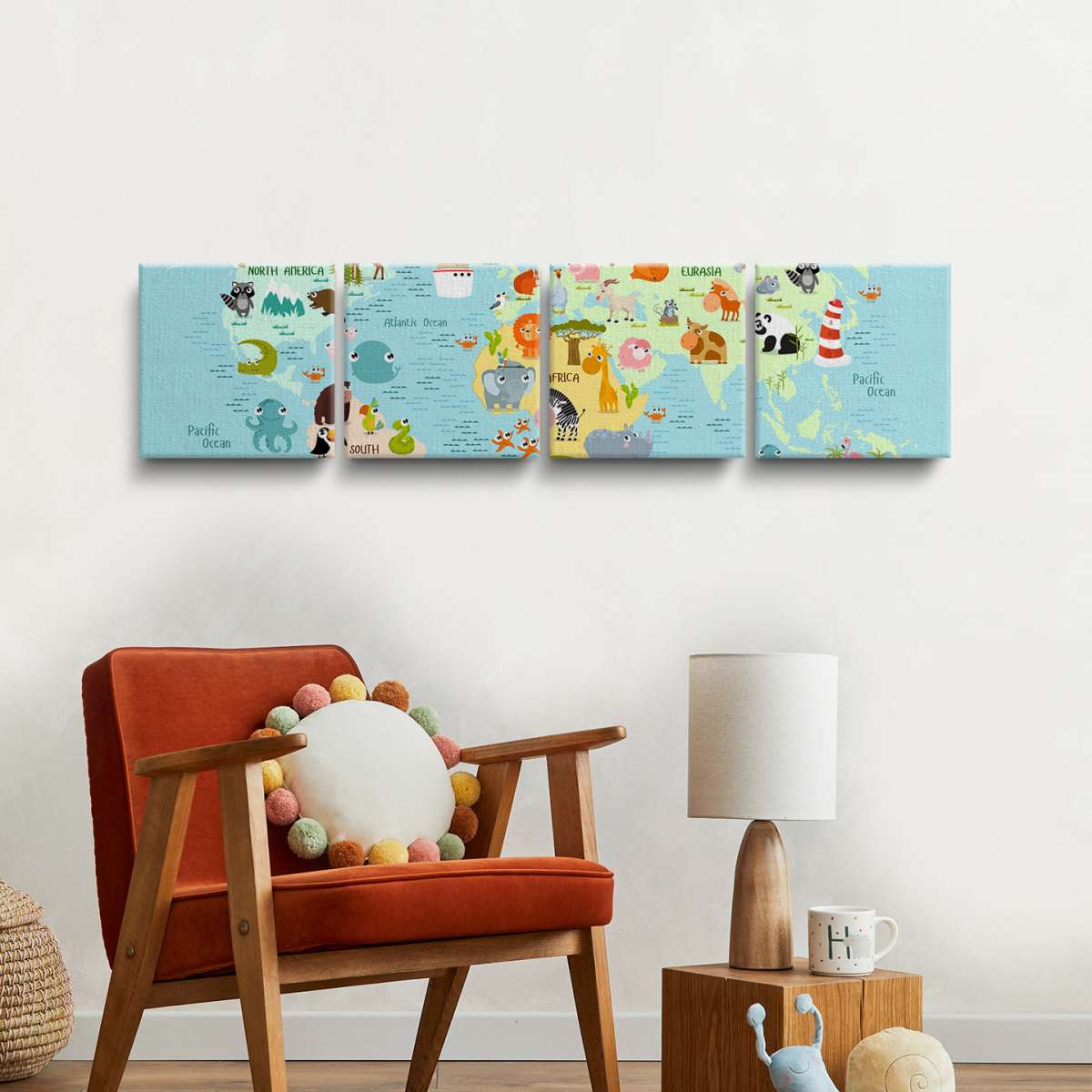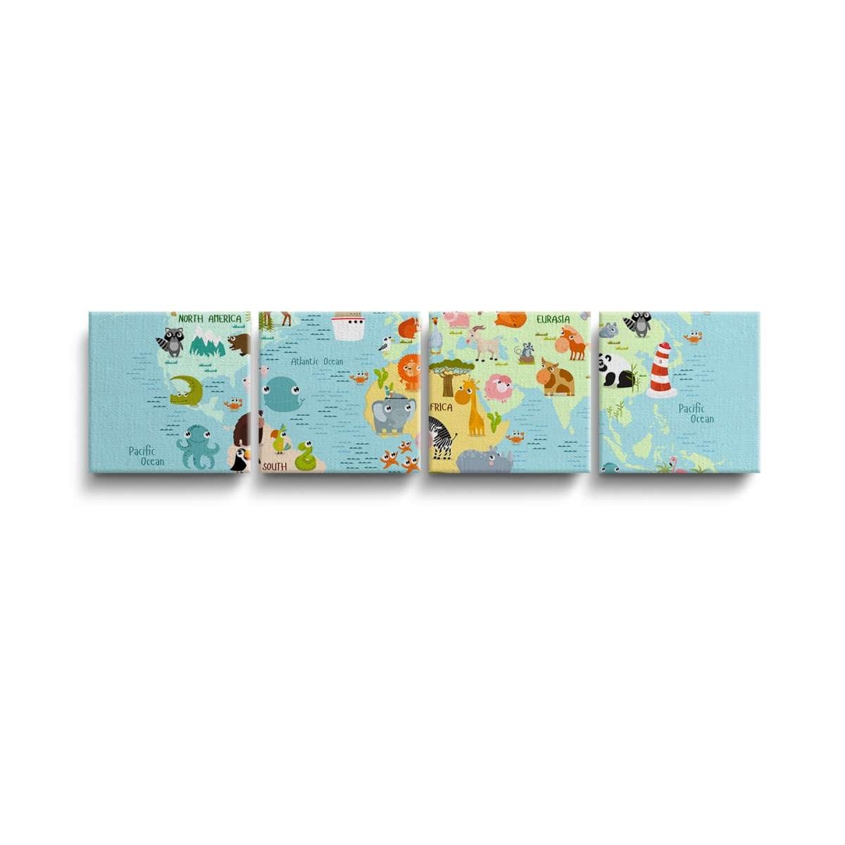 Dětská mapa světa s kreslenými zvířátky - ilustrace