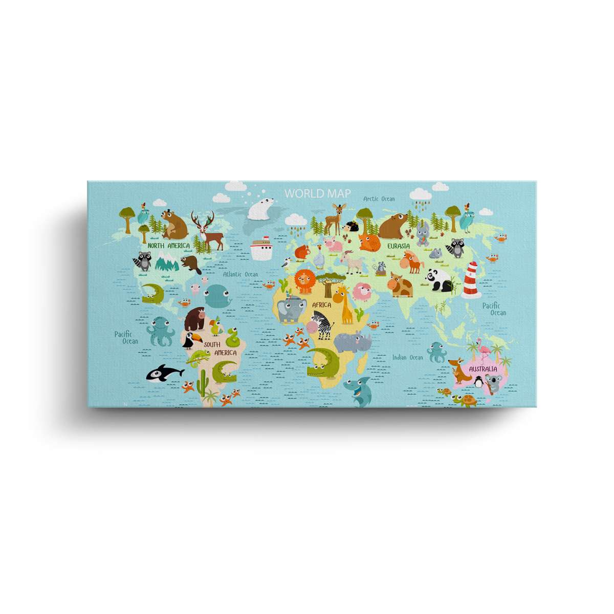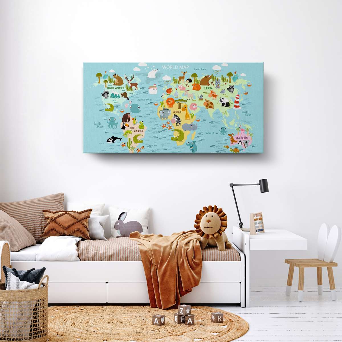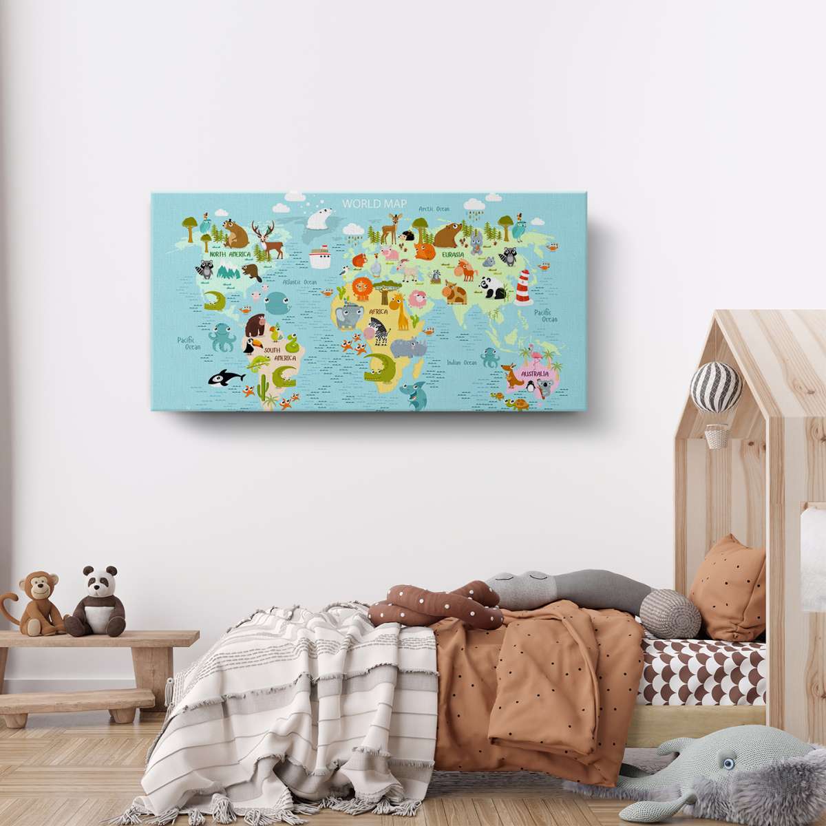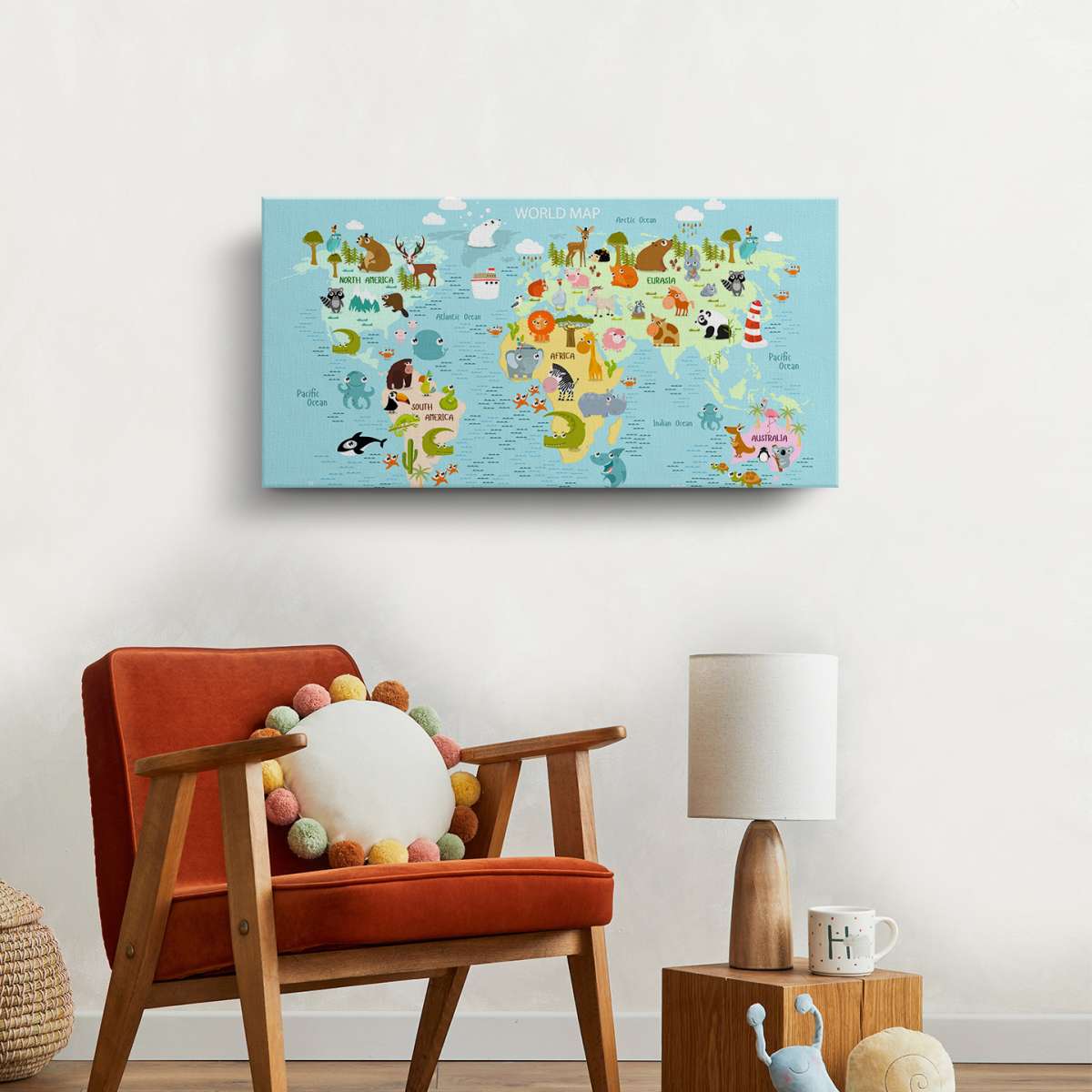 Dětská mapa světa s kreslenými zvířátky - ilustrace