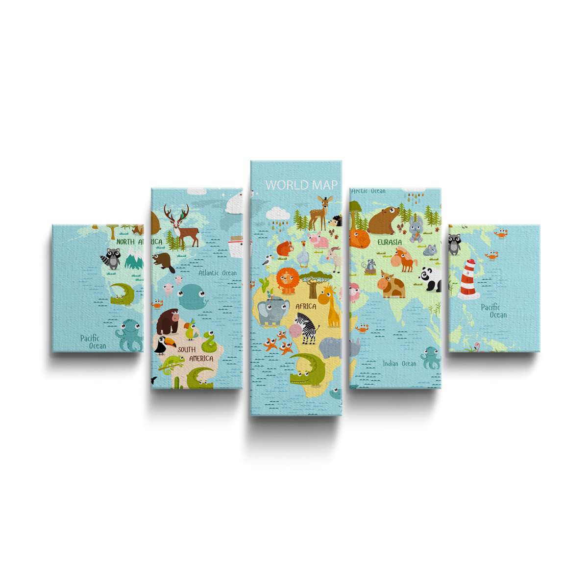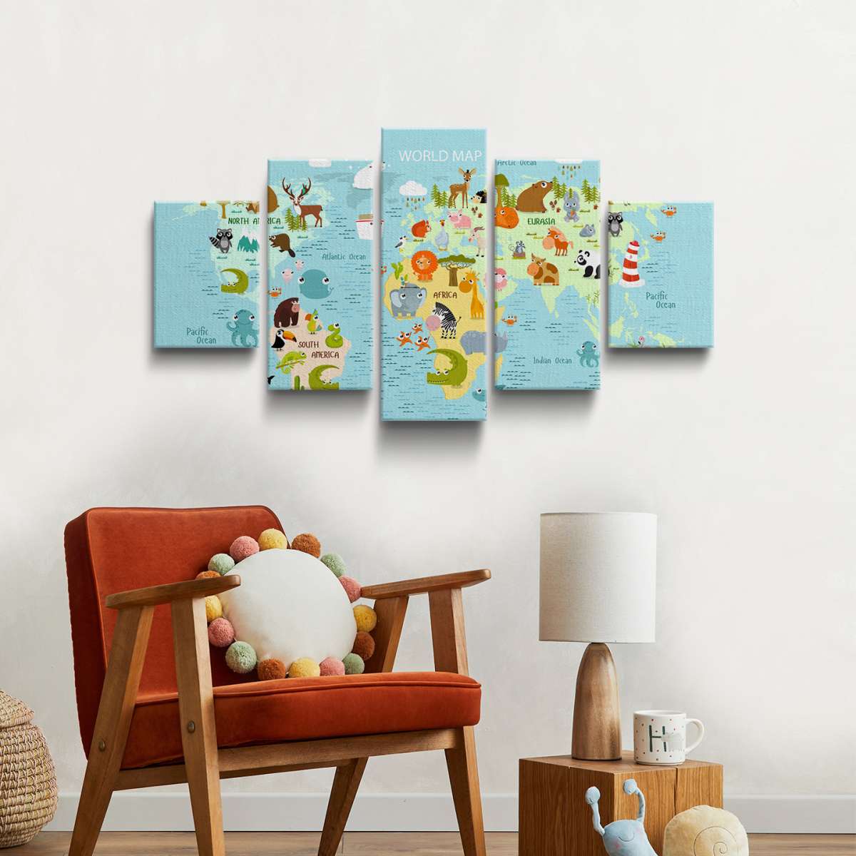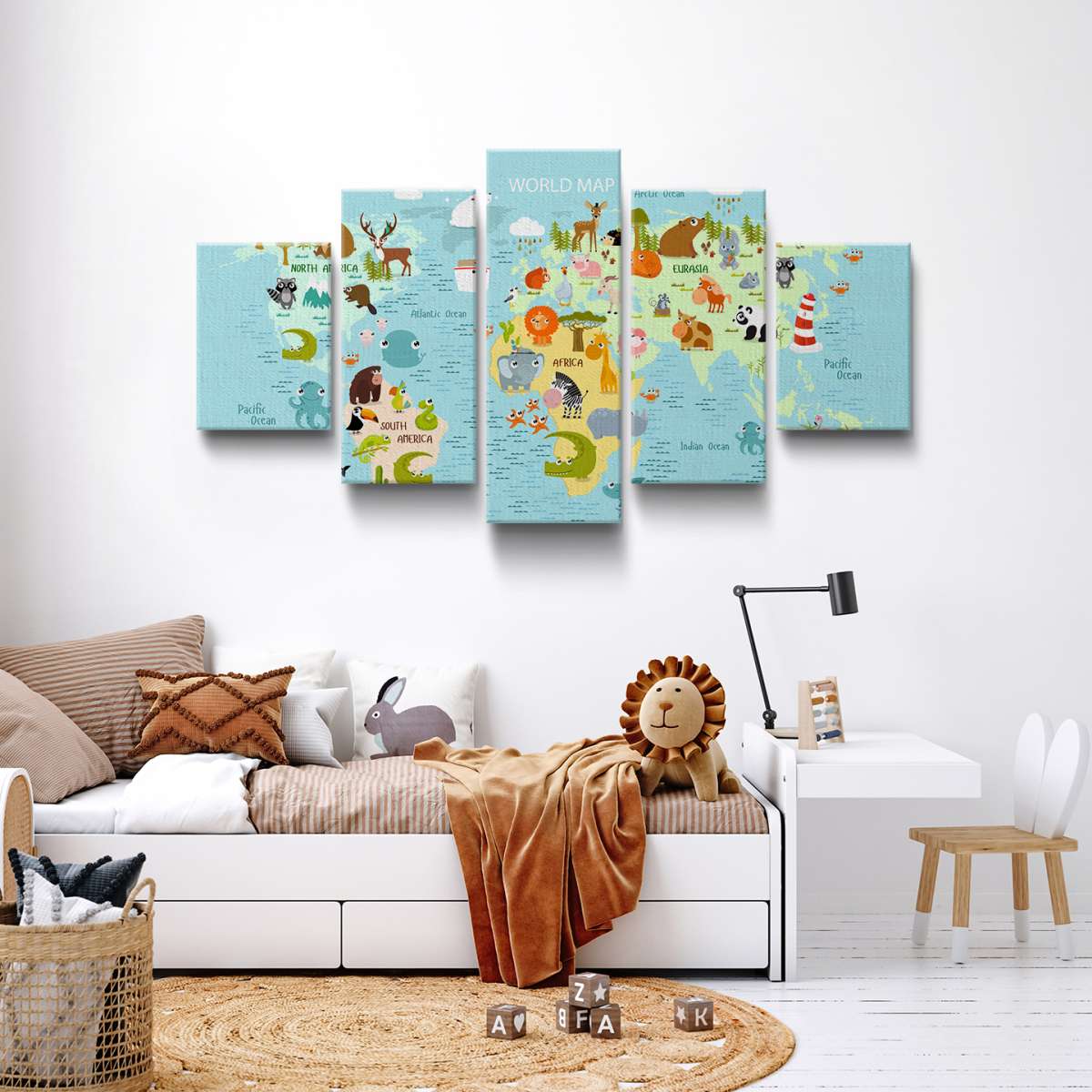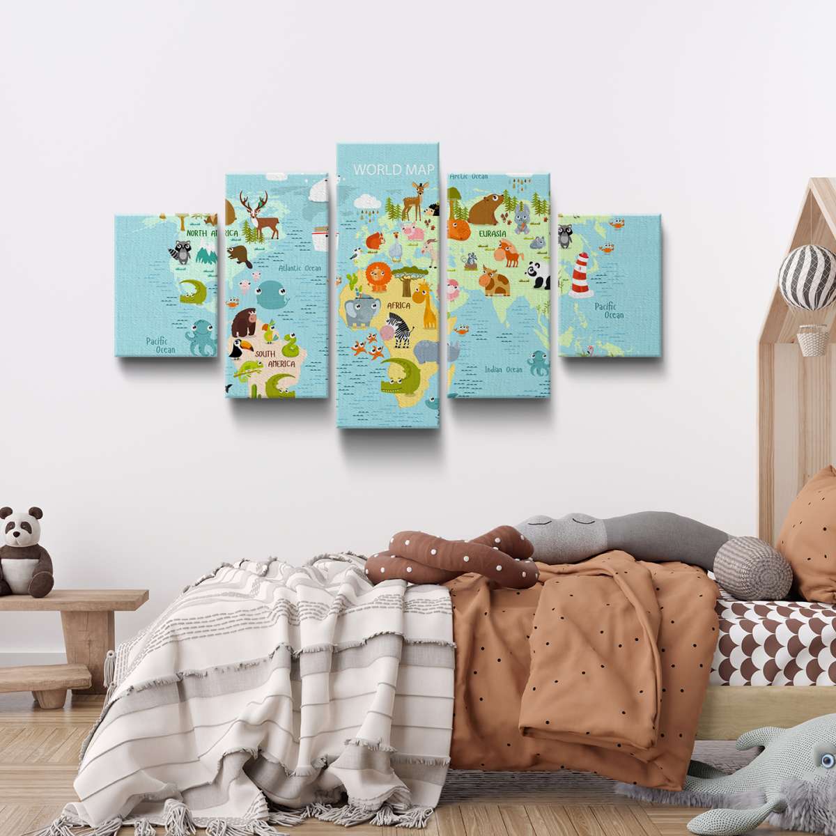 Dětská mapa světa s kreslenými zvířátky - ilustrace