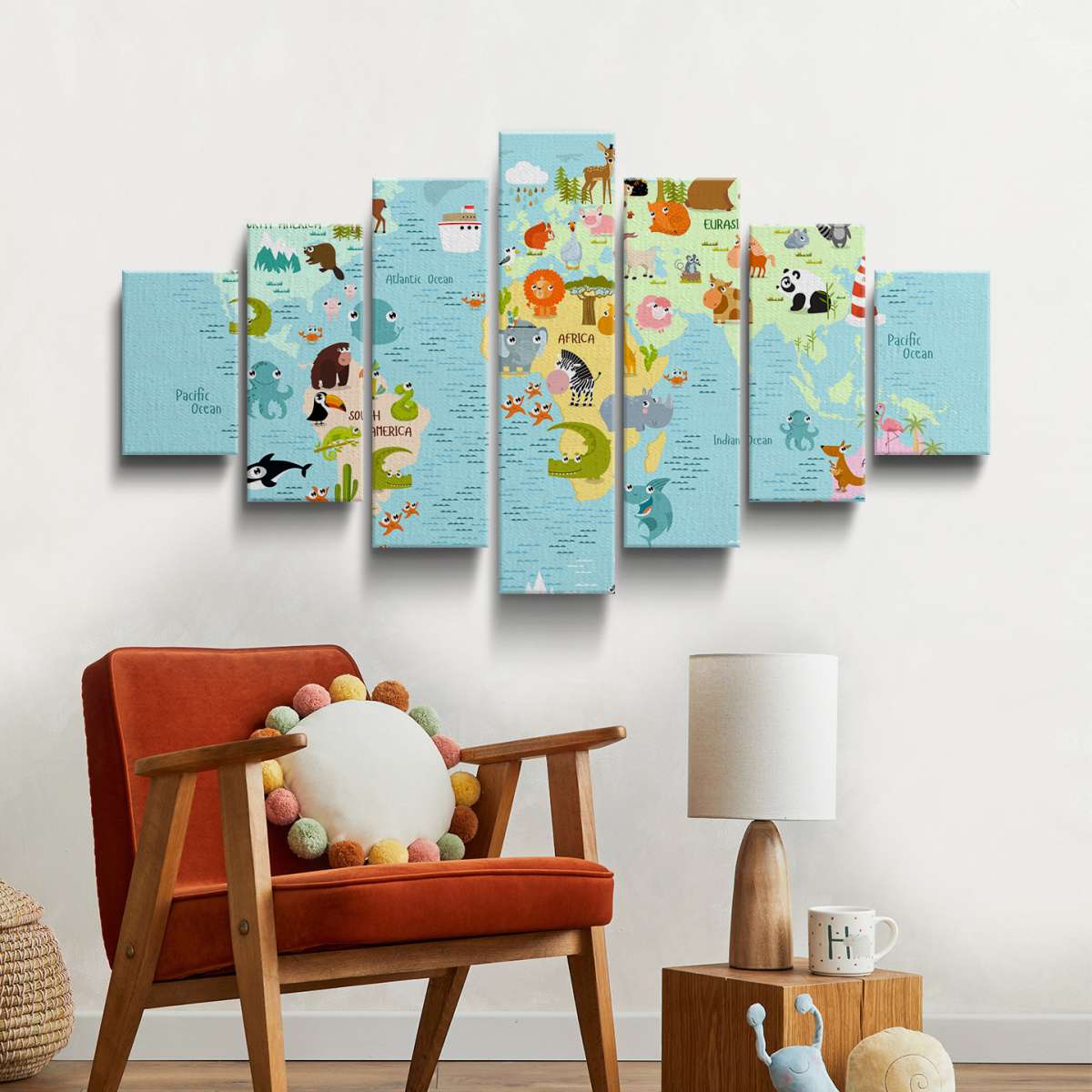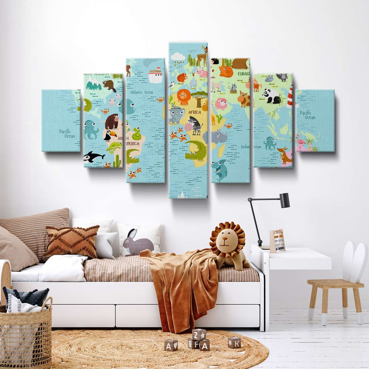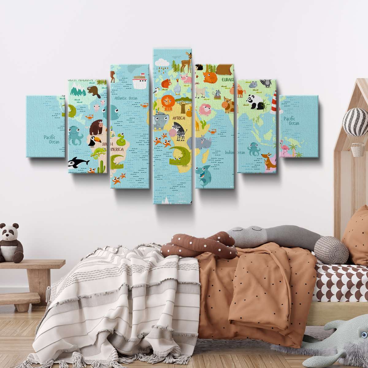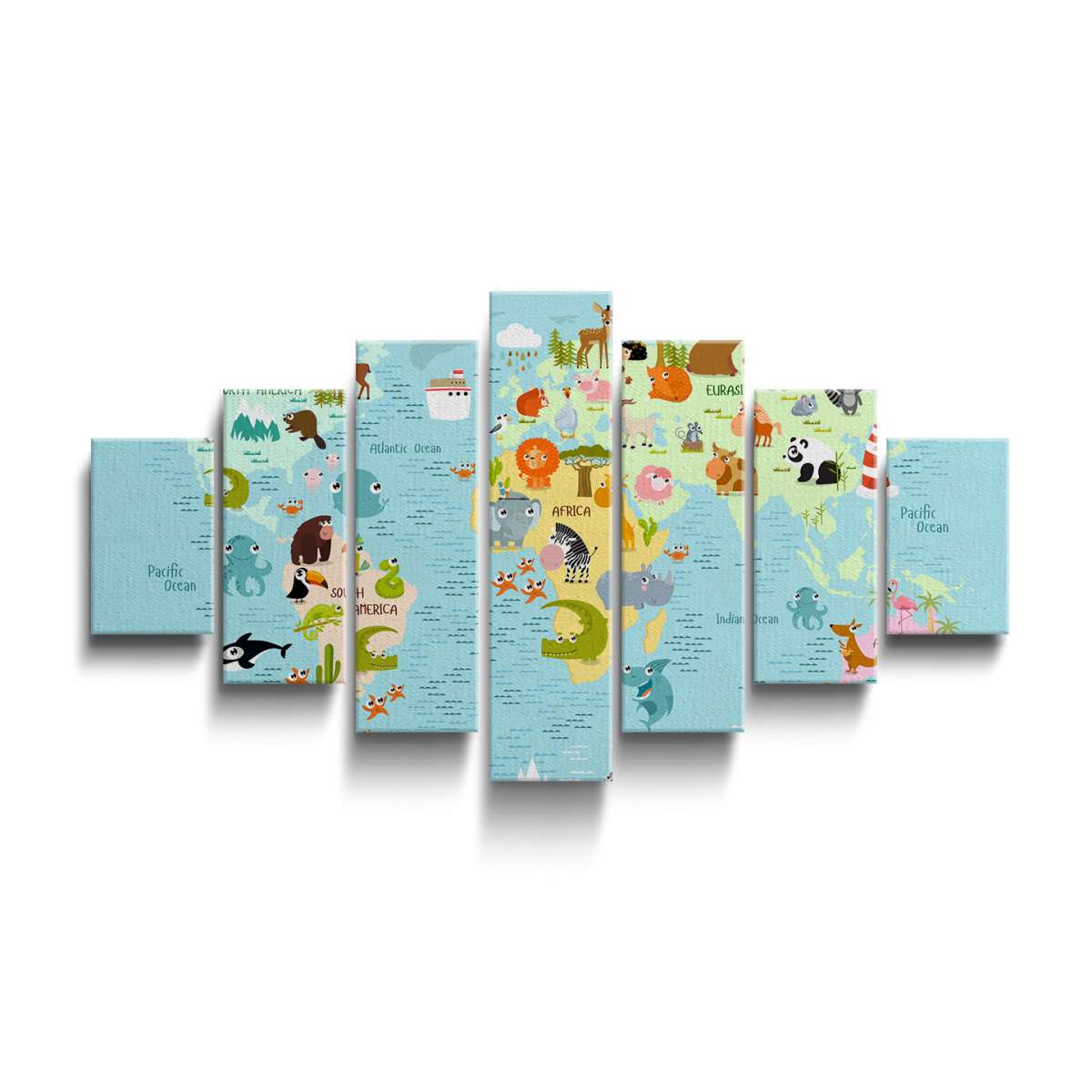 Dětská mapa světa s kreslenými zvířátky - ilustrace