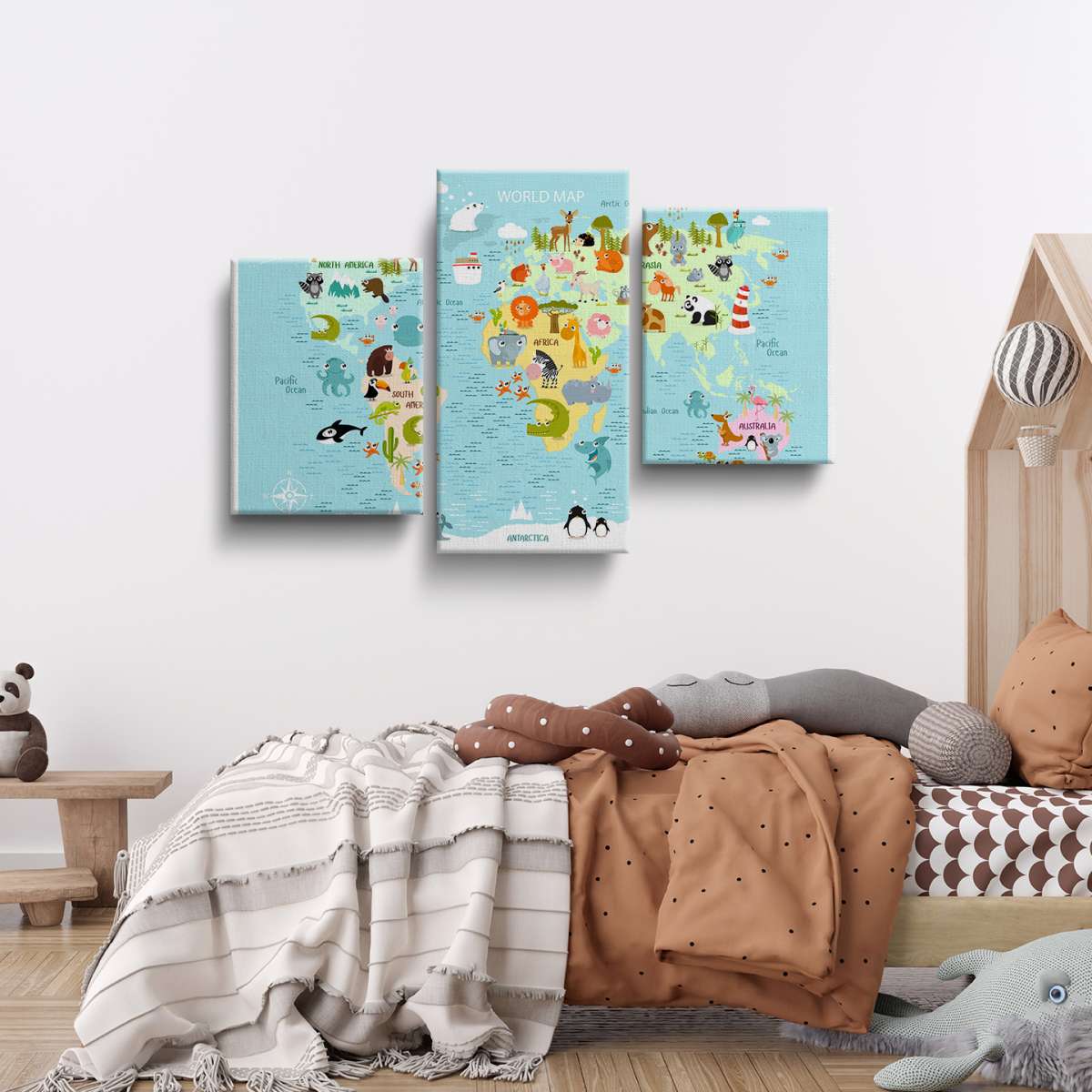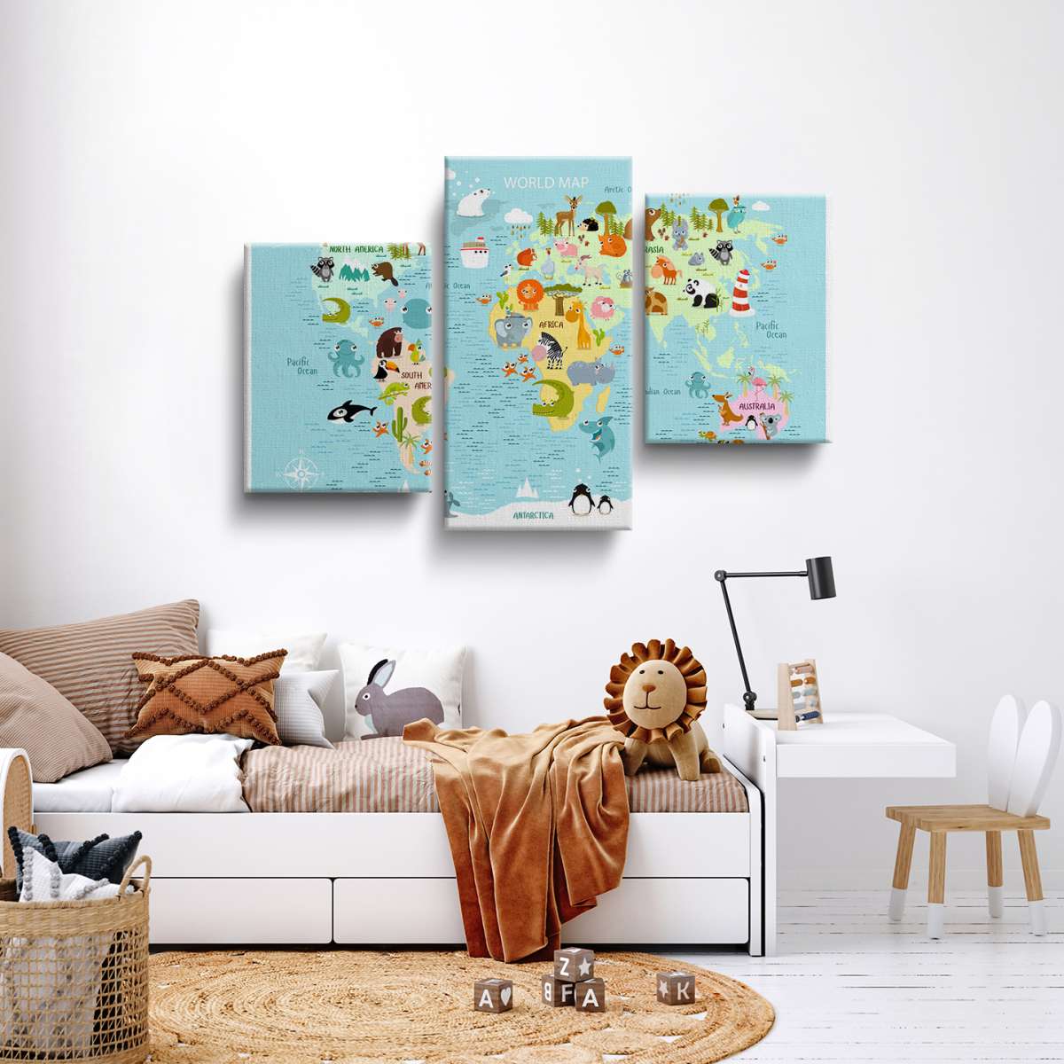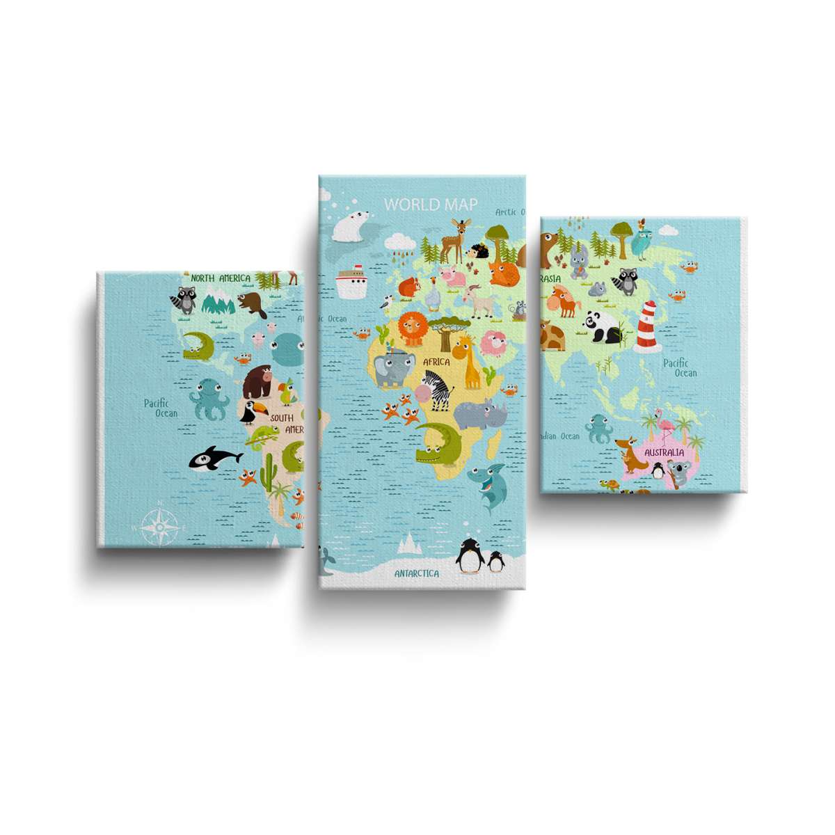 Dětská mapa světa s kreslenými zvířátky - ilustrace