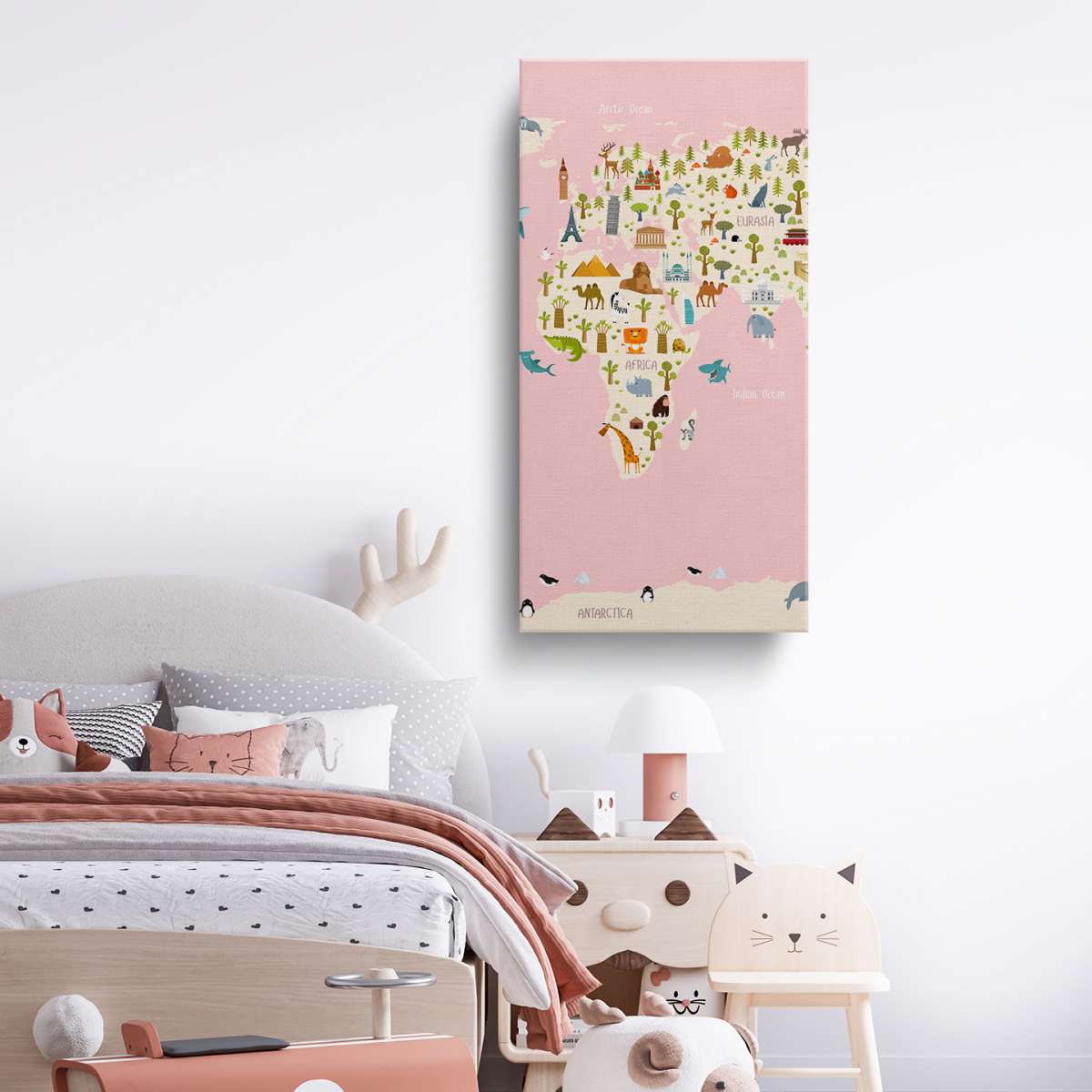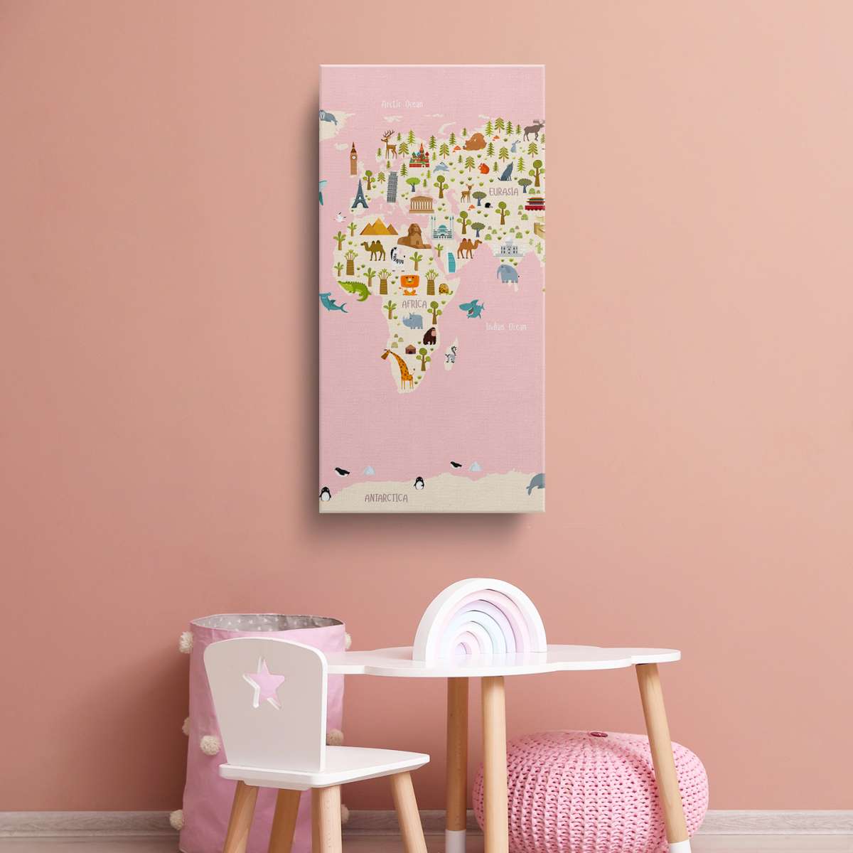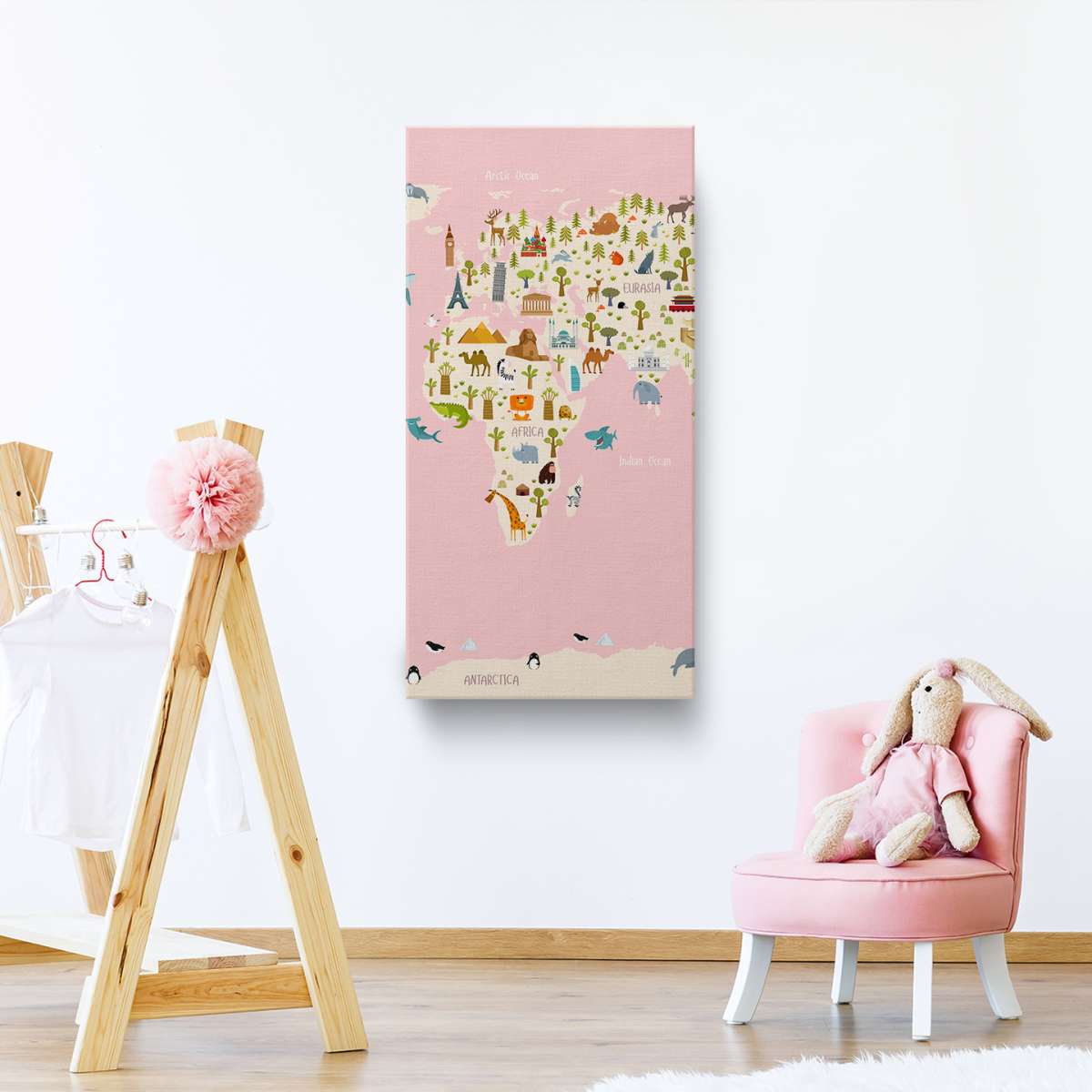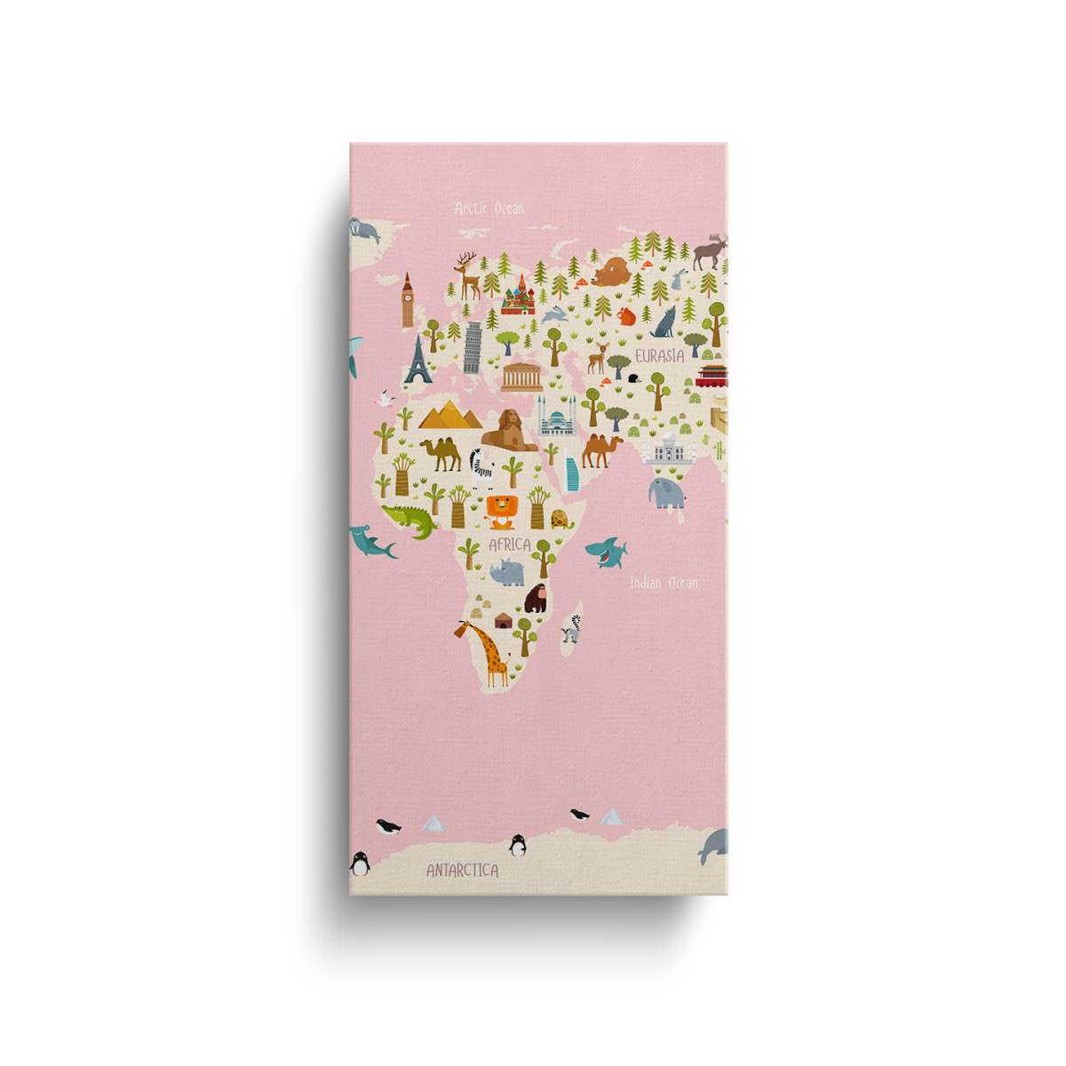 Dětská mapa světa s názvy kontinentů - ilustrace