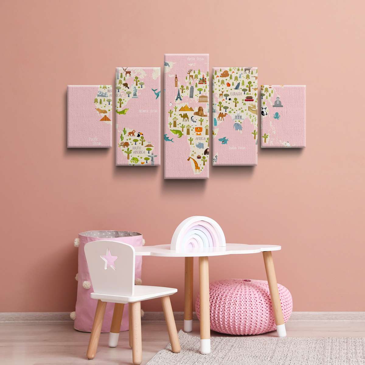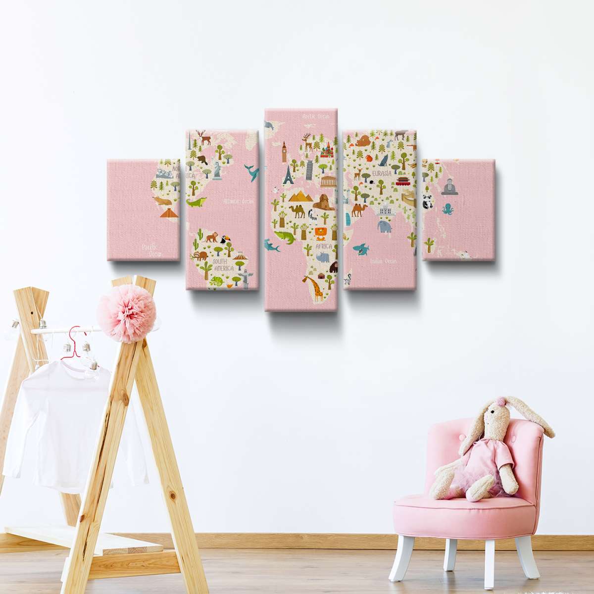 Dětská mapa světa s názvy kontinentů - ilustrace