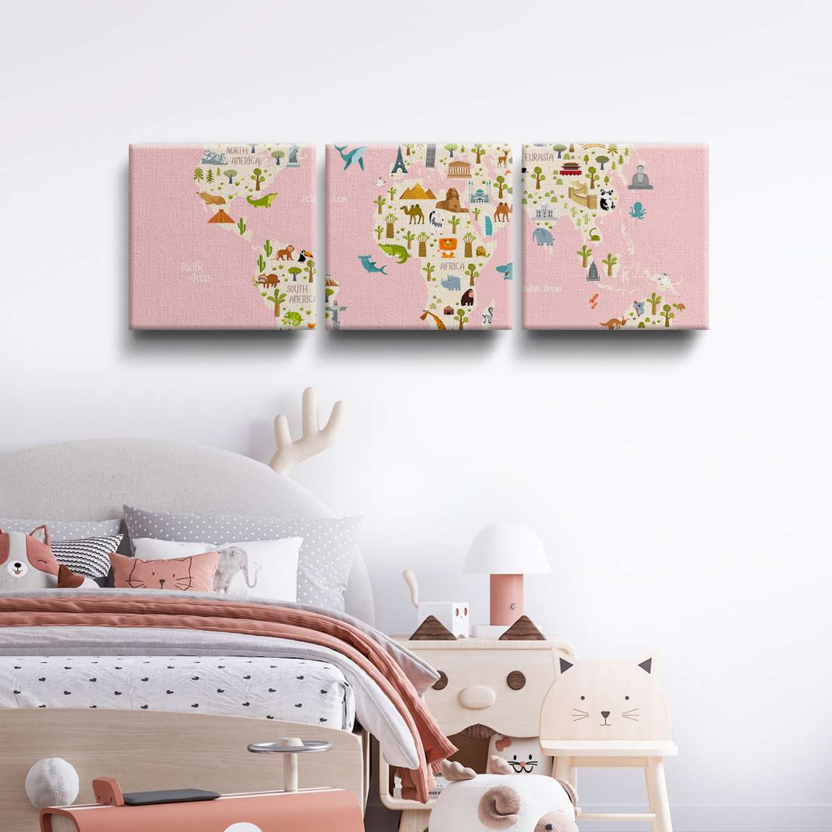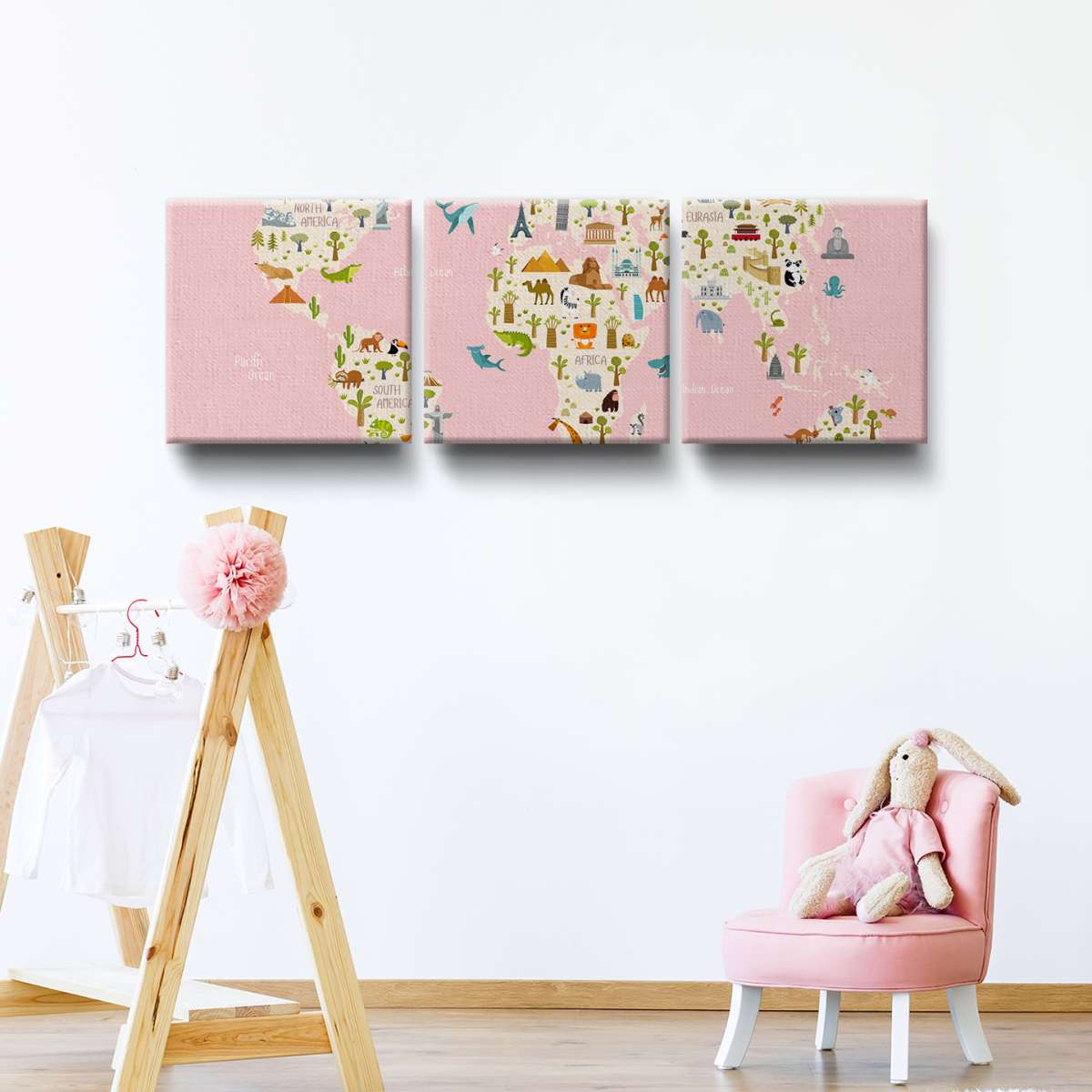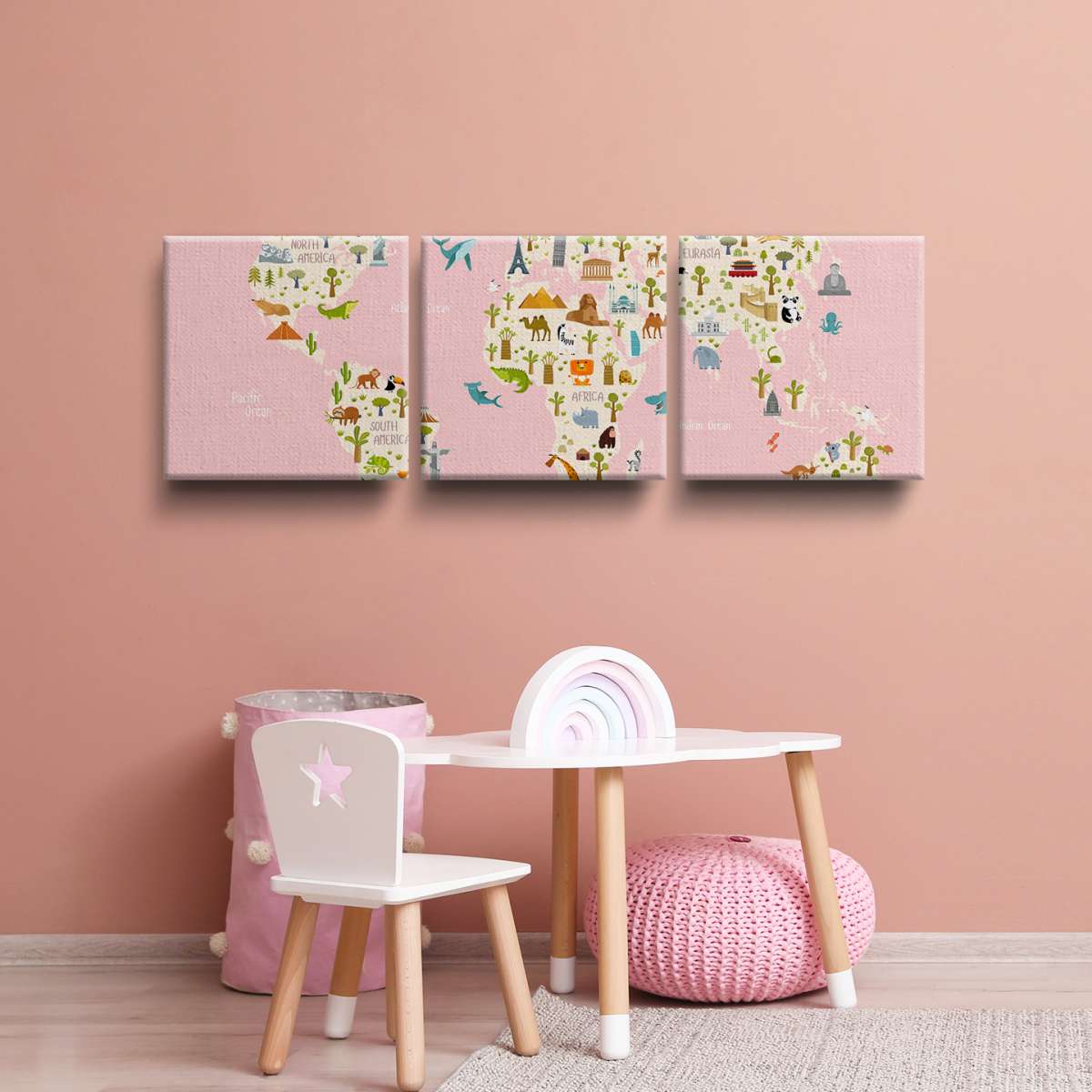 Dětská mapa světa s názvy kontinentů - ilustrace