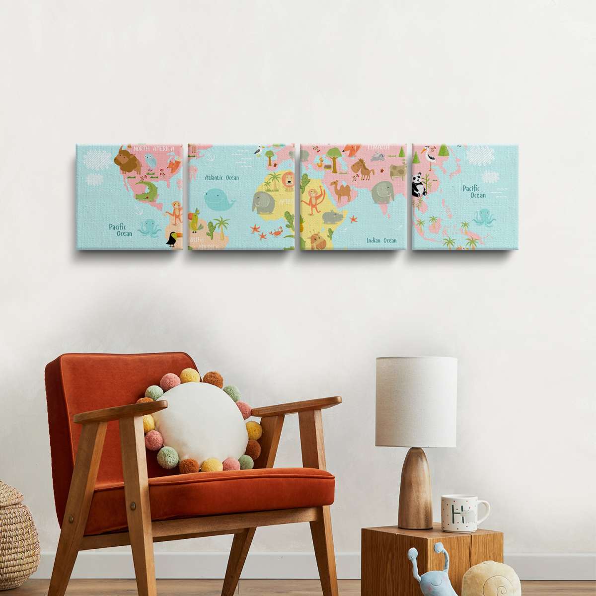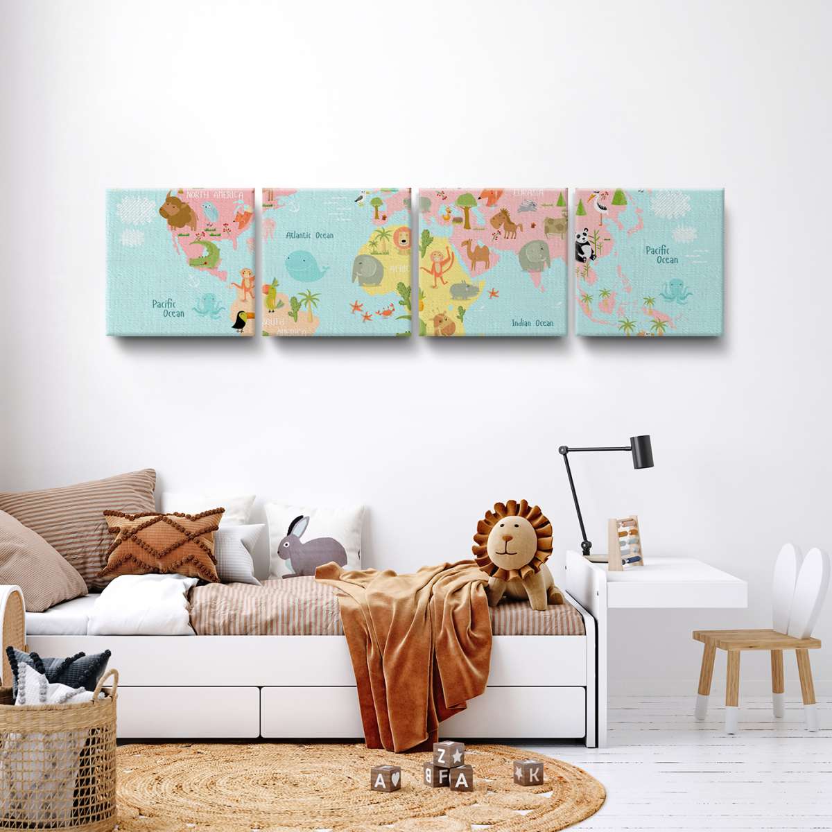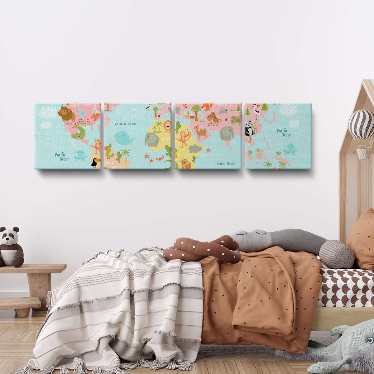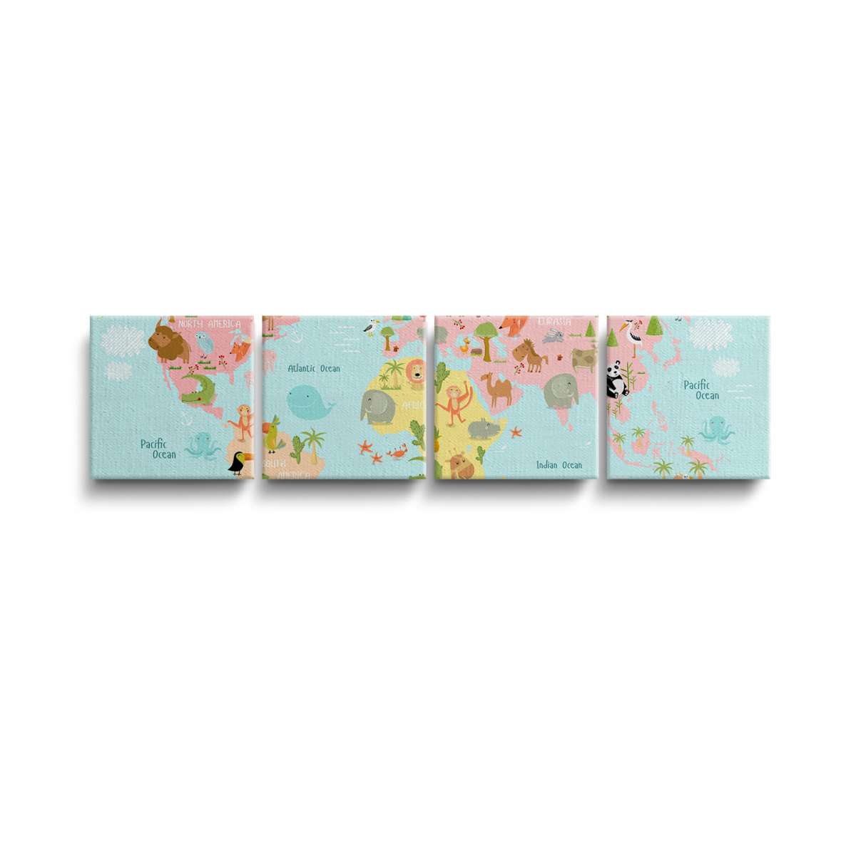 Dětská mapa světa se zvířátky - ilustrace