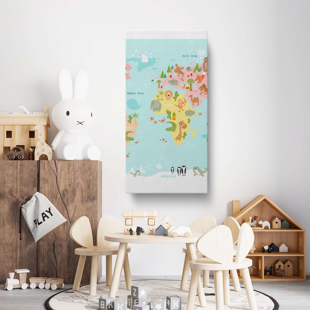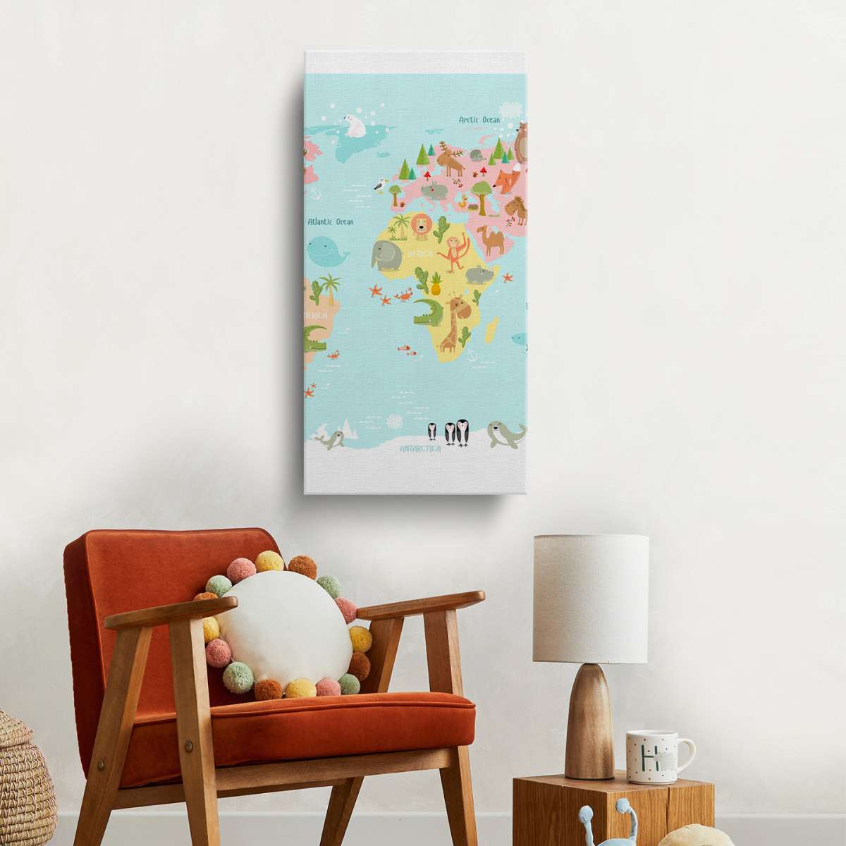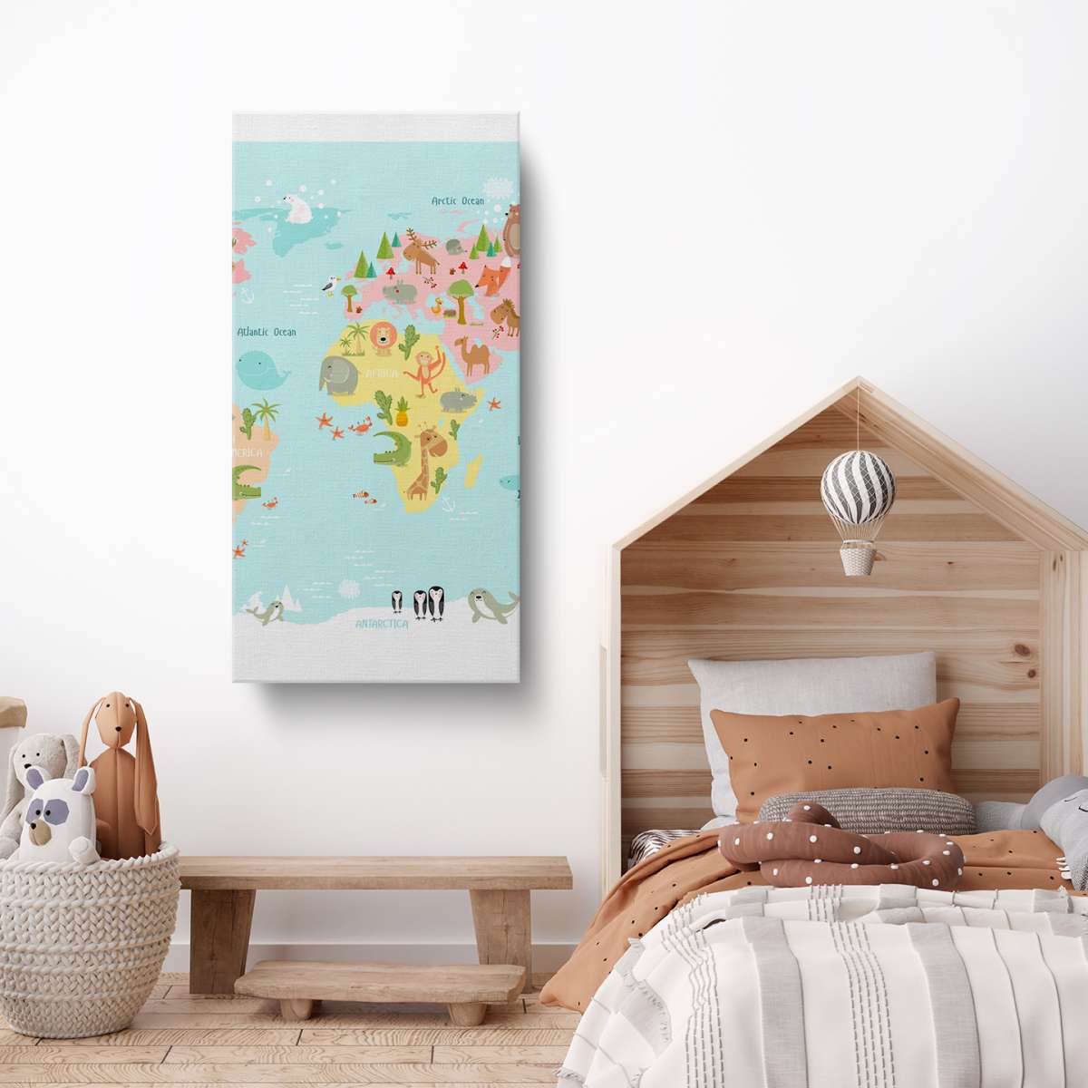 Dětská mapa světa se zvířátky - ilustrace