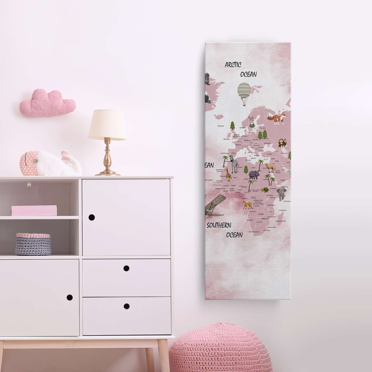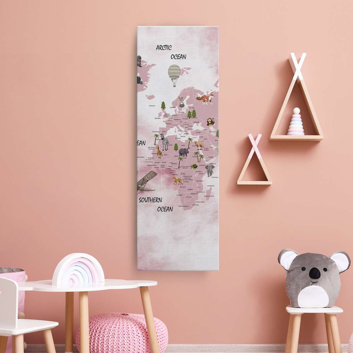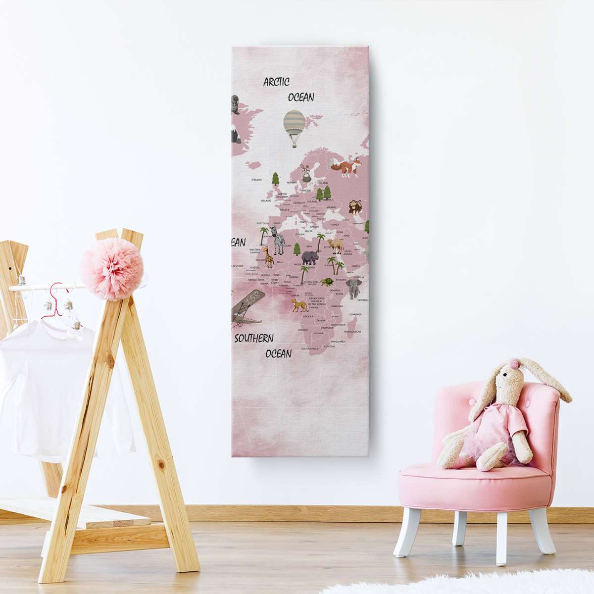 Dětská mapa světa, státy a oceány - akvarel
