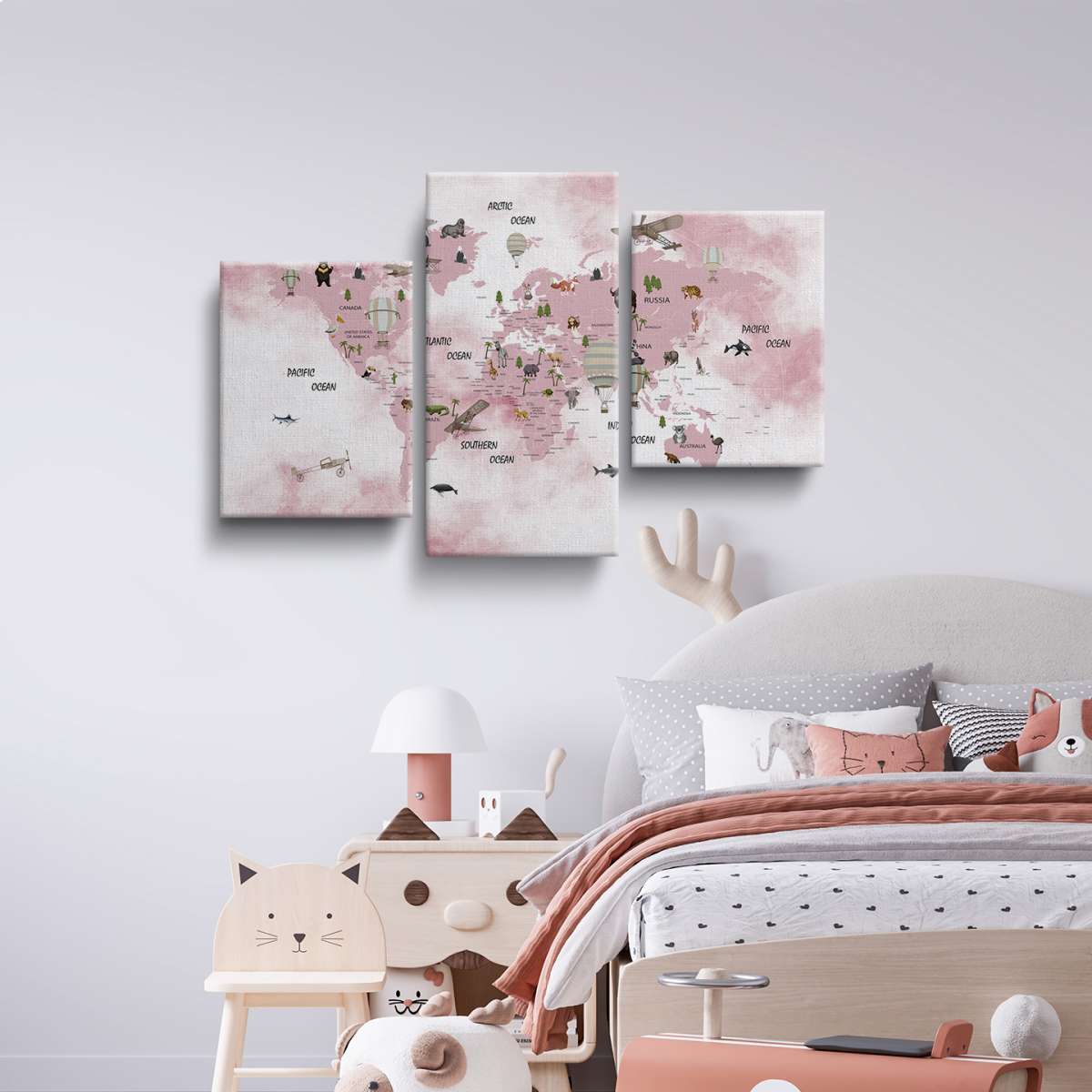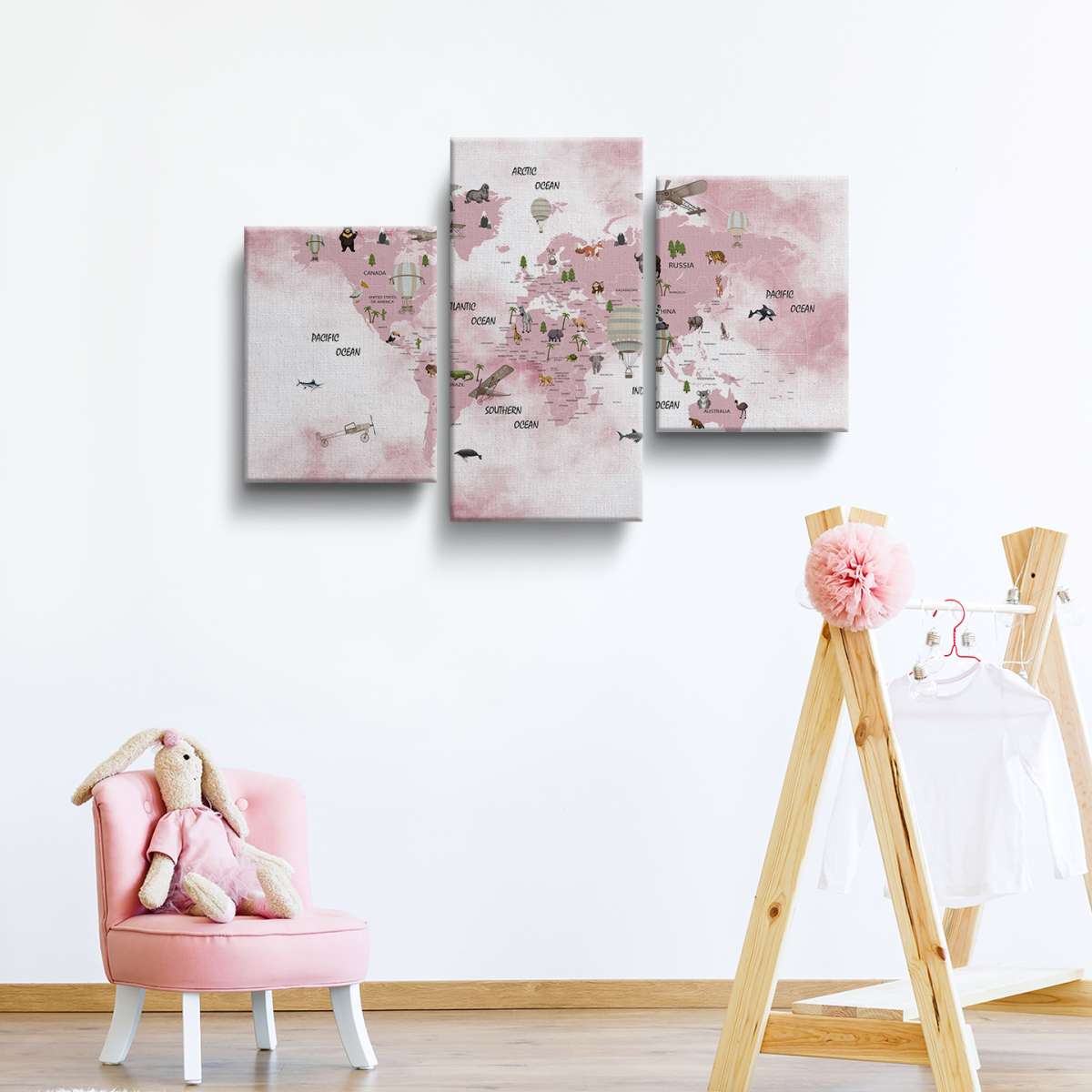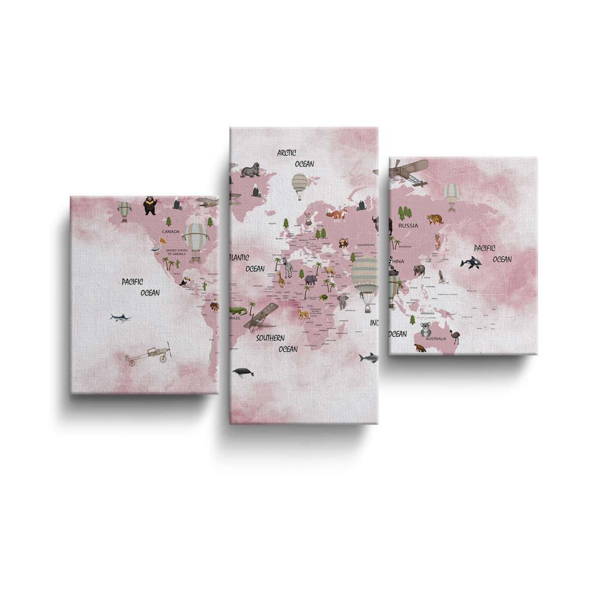 Dětská mapa světa, státy a oceány - akvarel