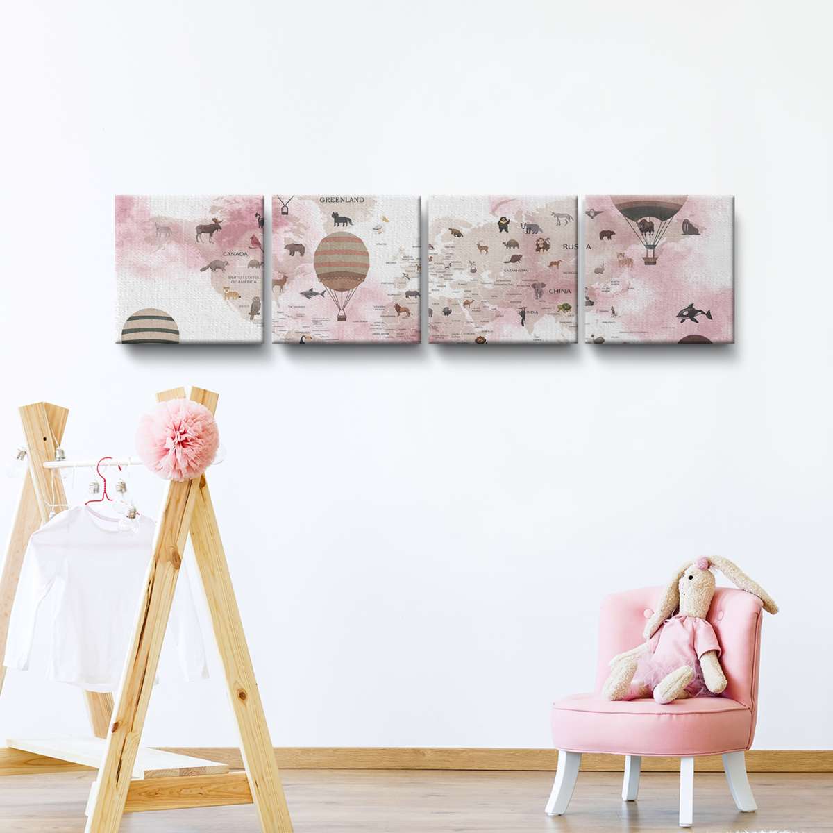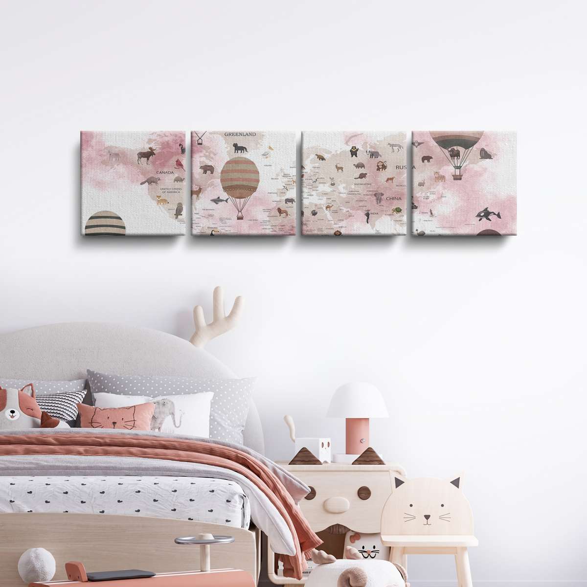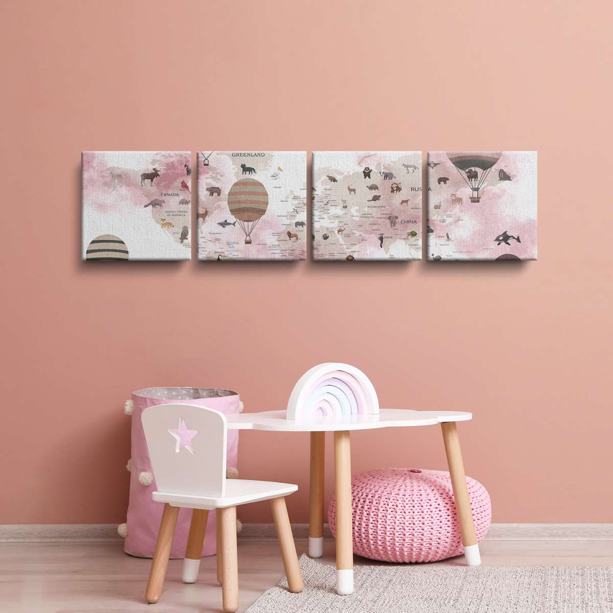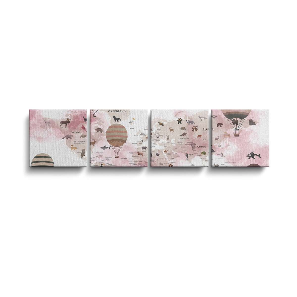 Dětská mapa světa, státy a zvířata - akvarel