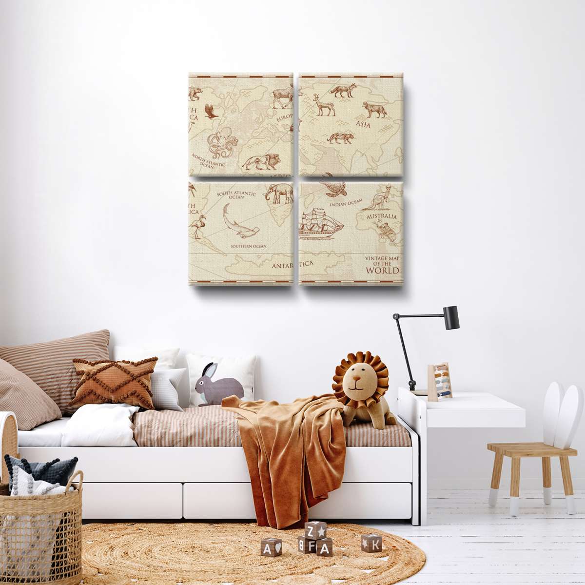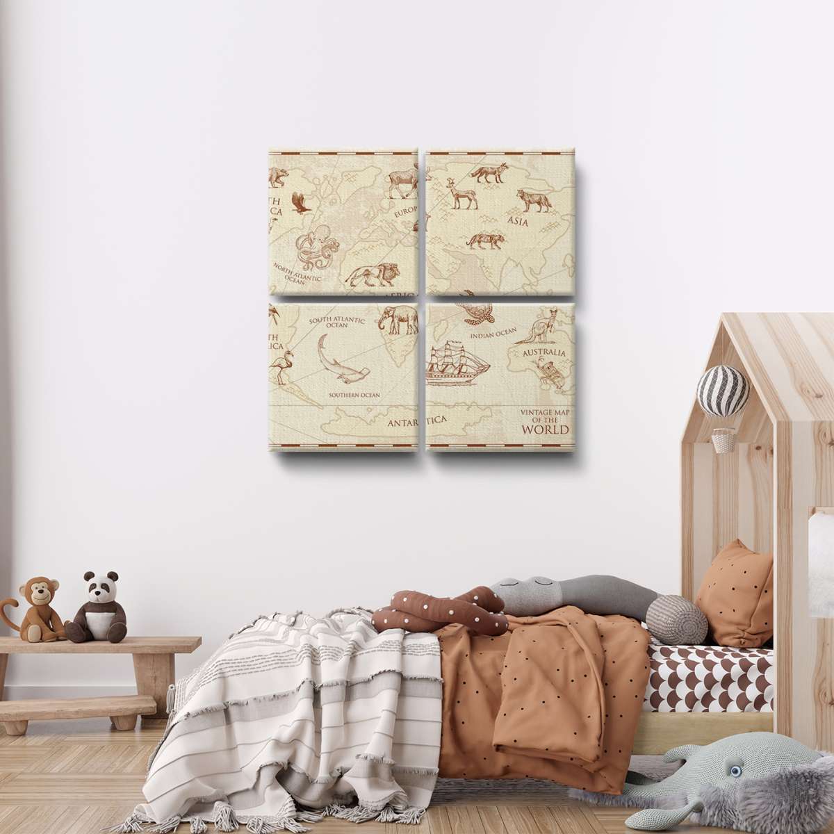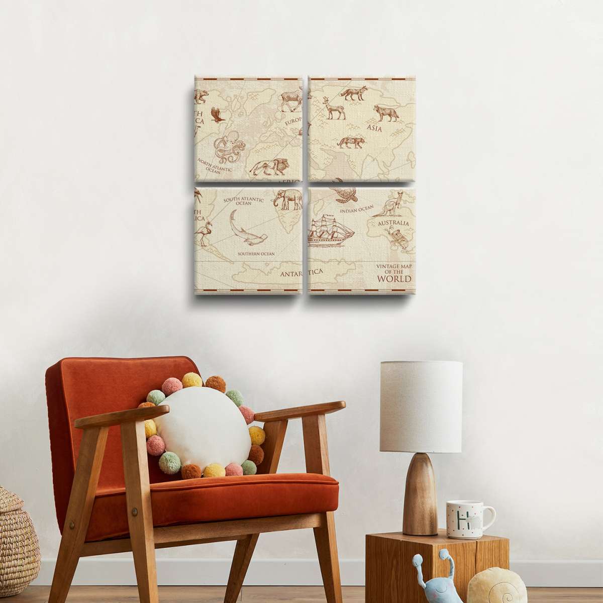 Dětská mapa světa, vintage styl - ilustrace