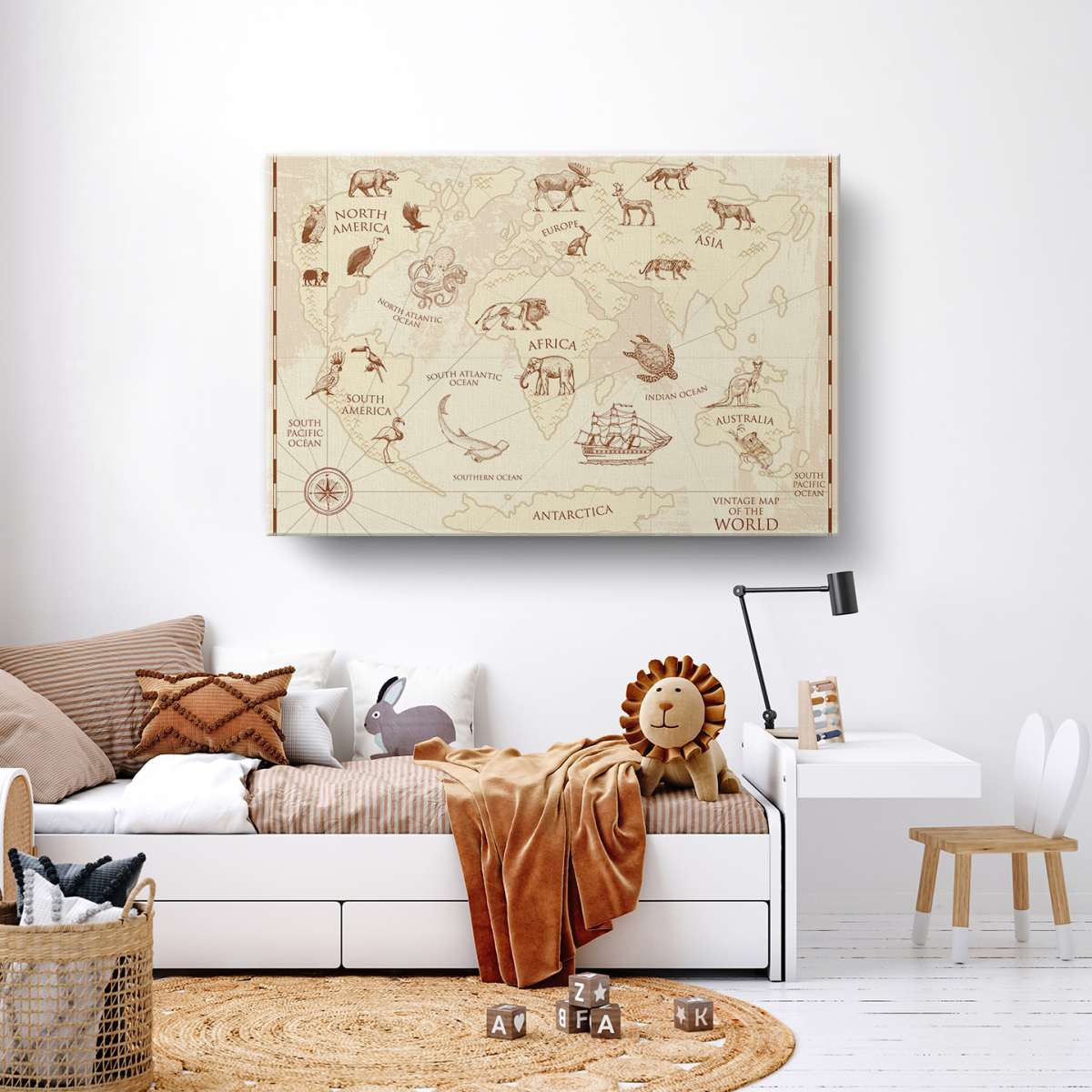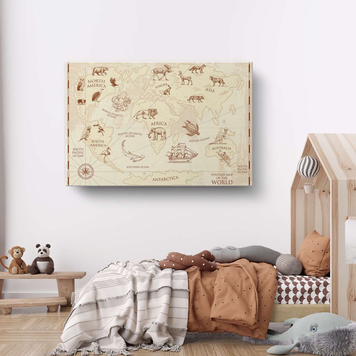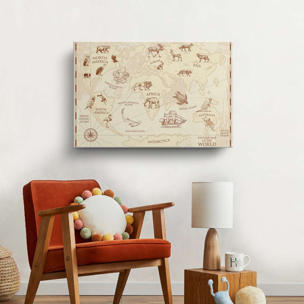 Dětská mapa světa, vintage styl - ilustrace