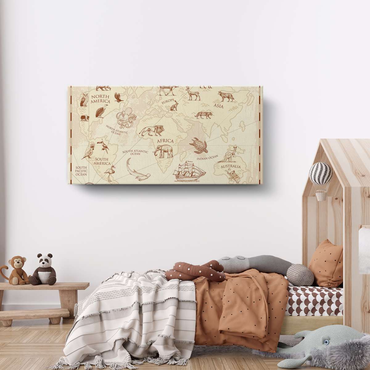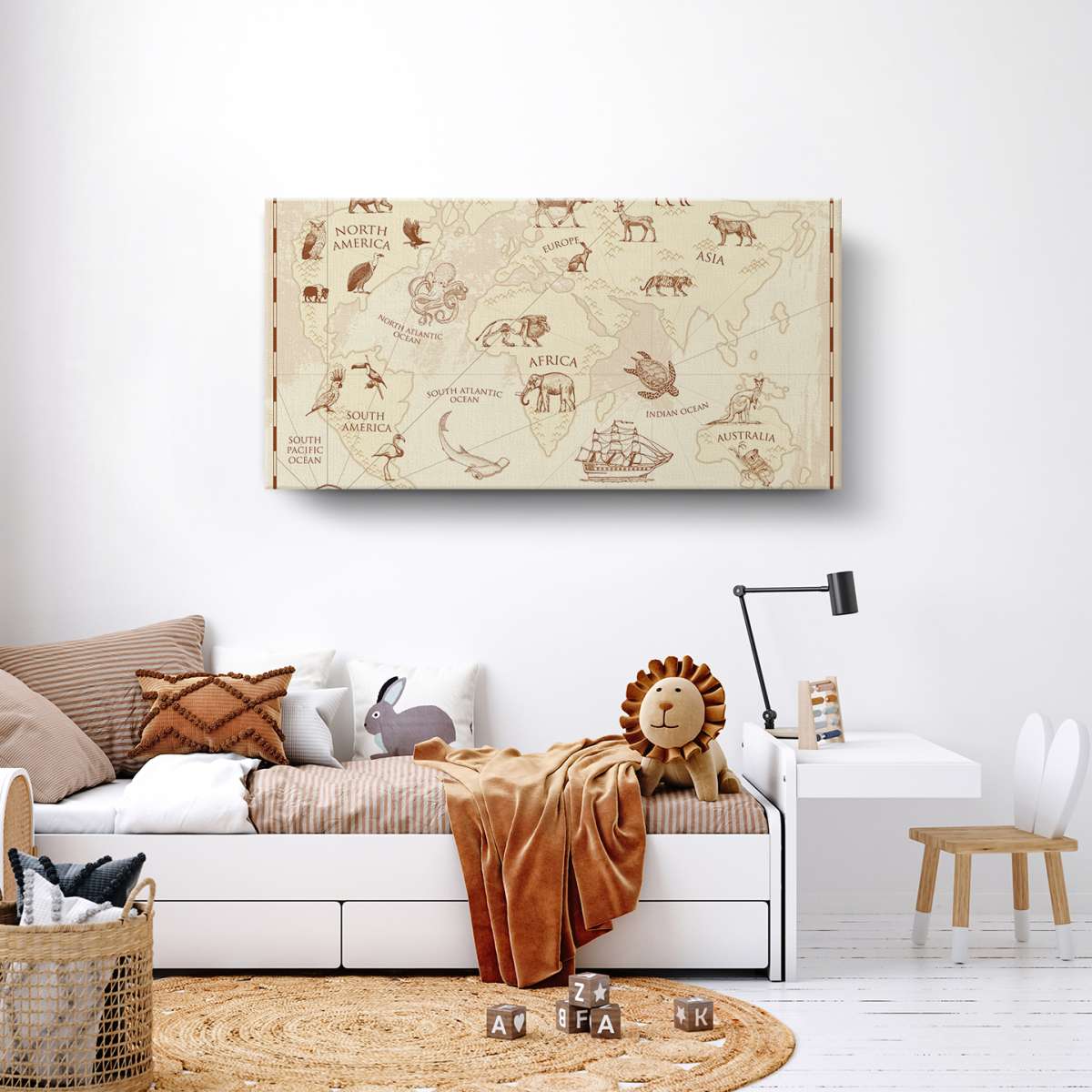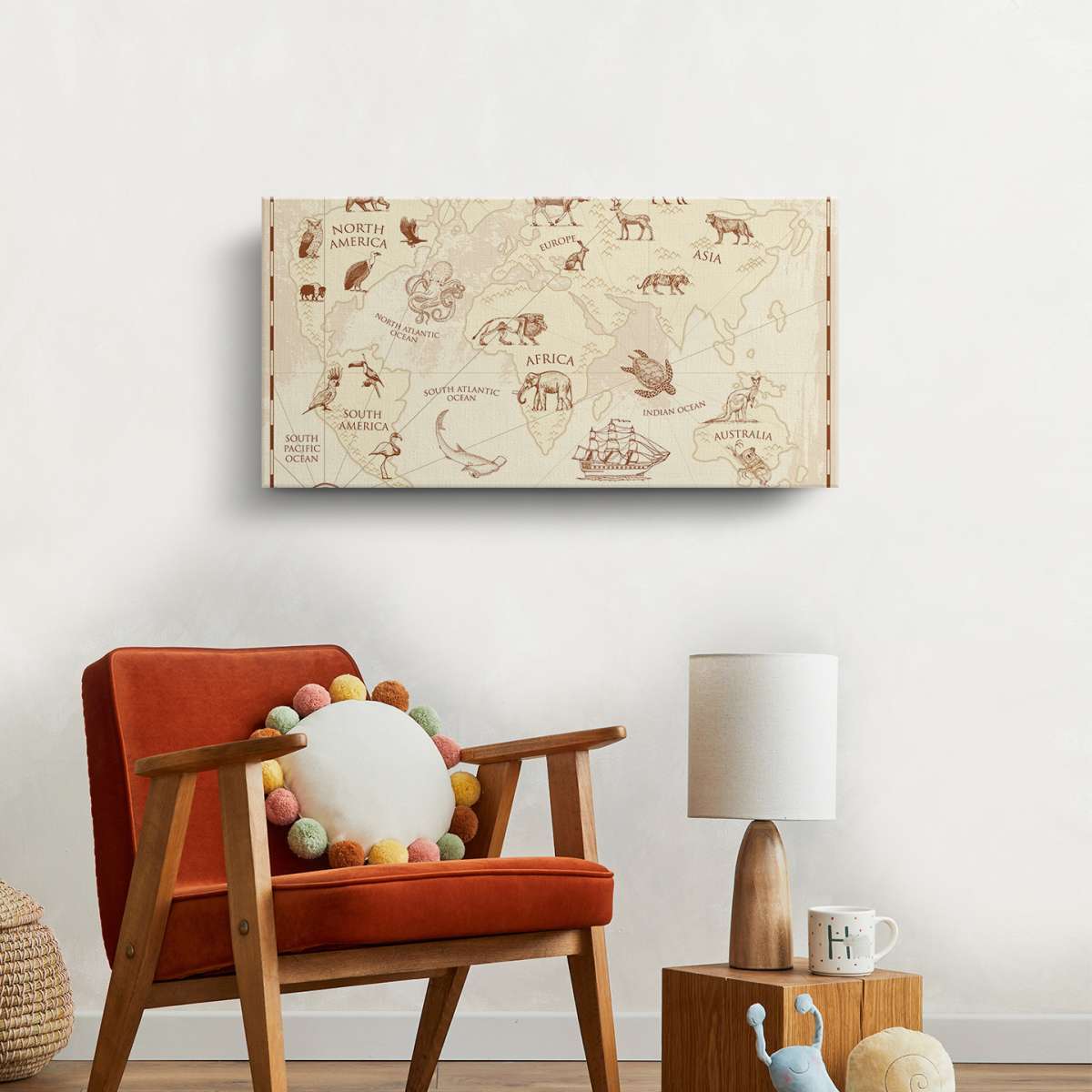 Dětská mapa světa, vintage styl - ilustrace