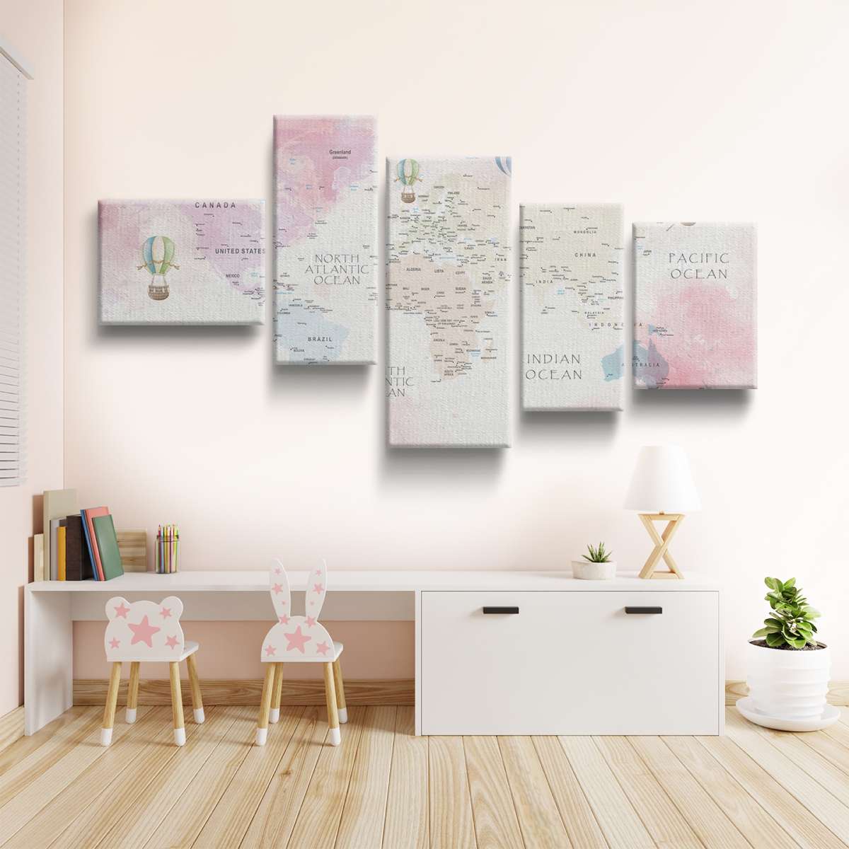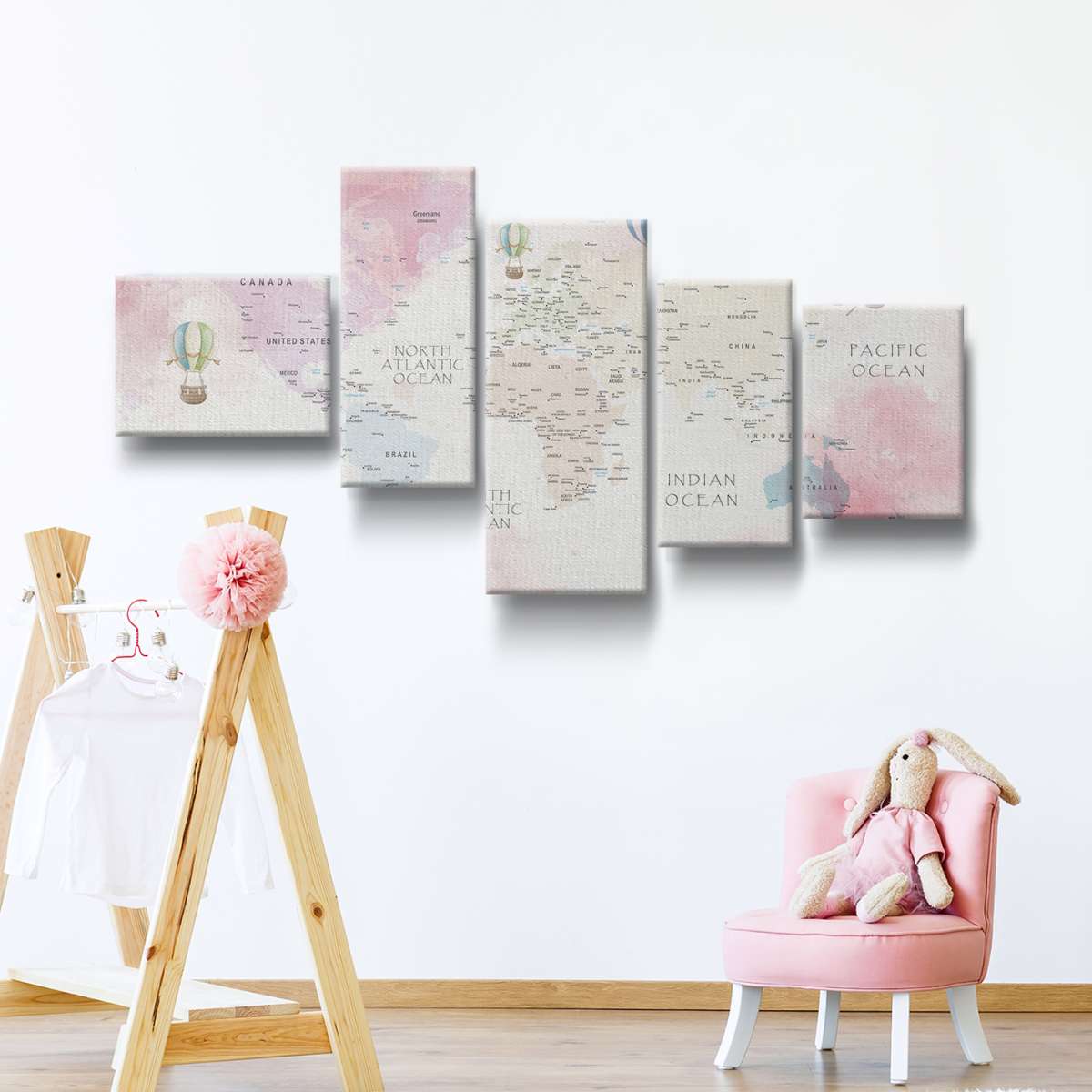 Dětská pastelová mapa světa - akvarel