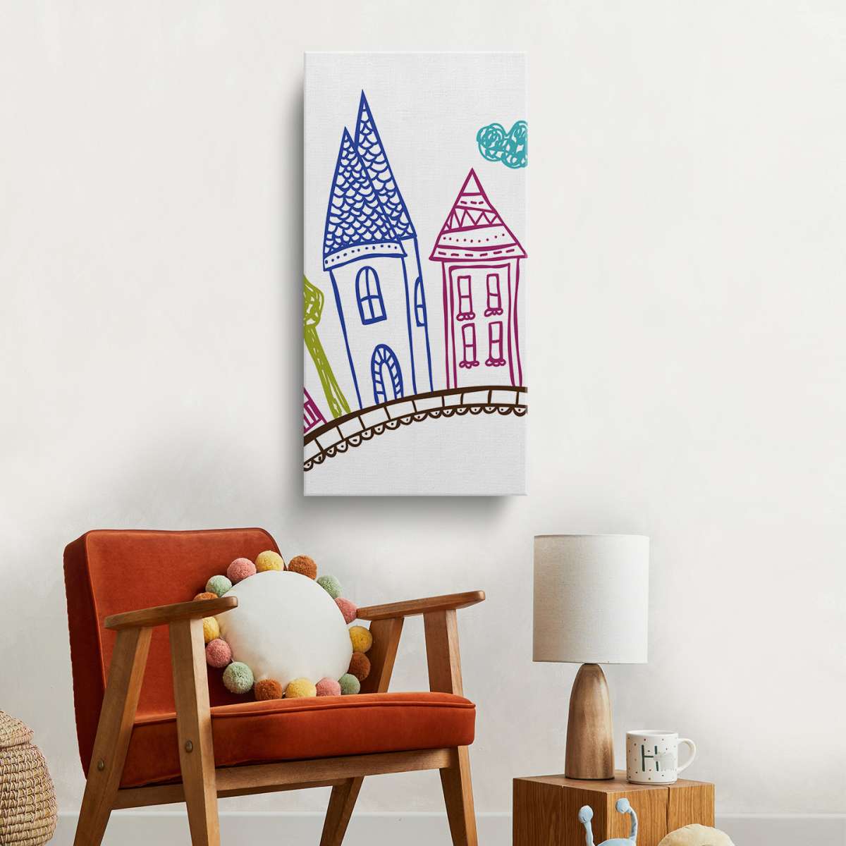 Domy na kopci - doodle ilustrace