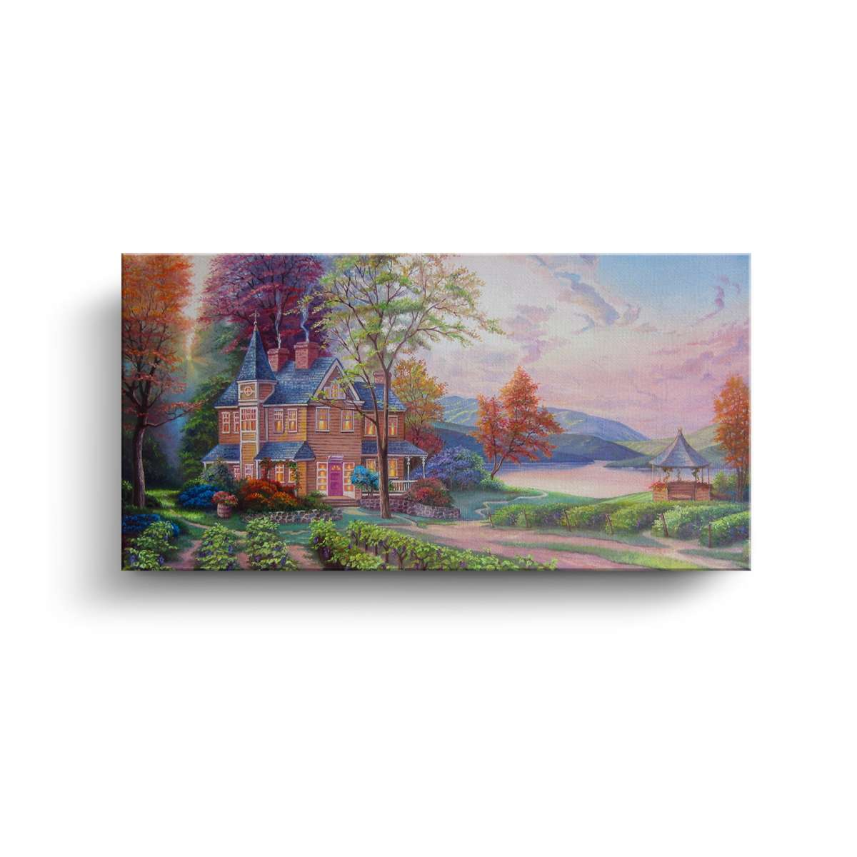 Dům u jezera s vinicí - olejomalba