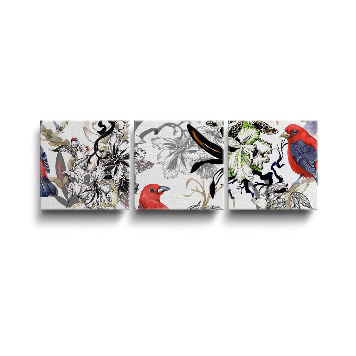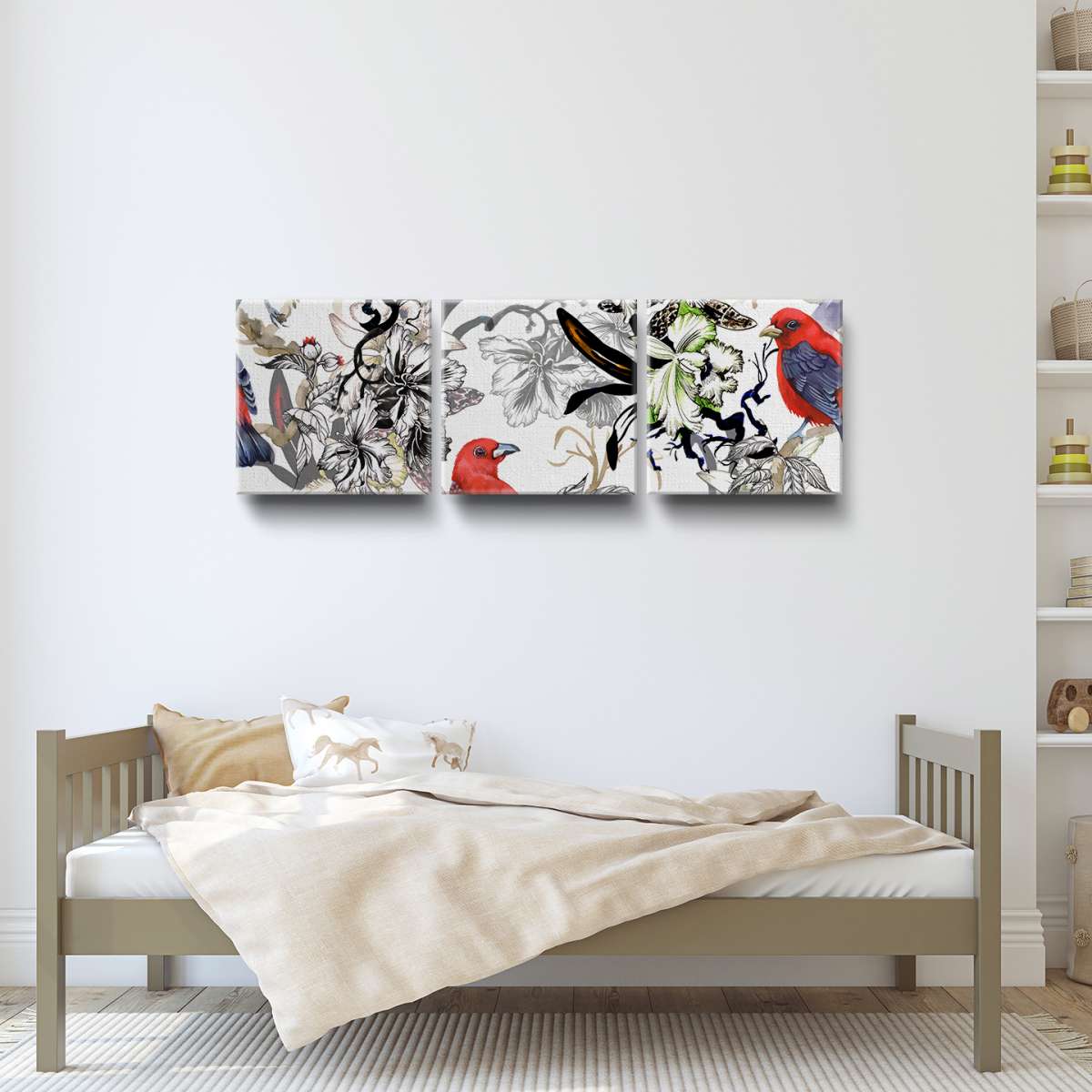 Exotičtí ptáci s květinami - ilustrace