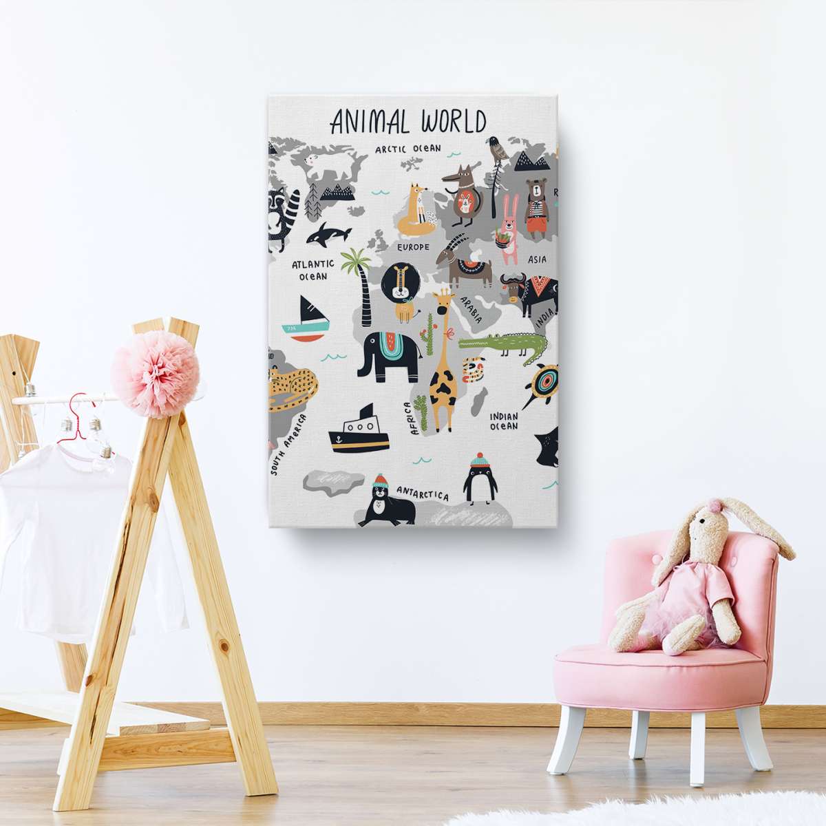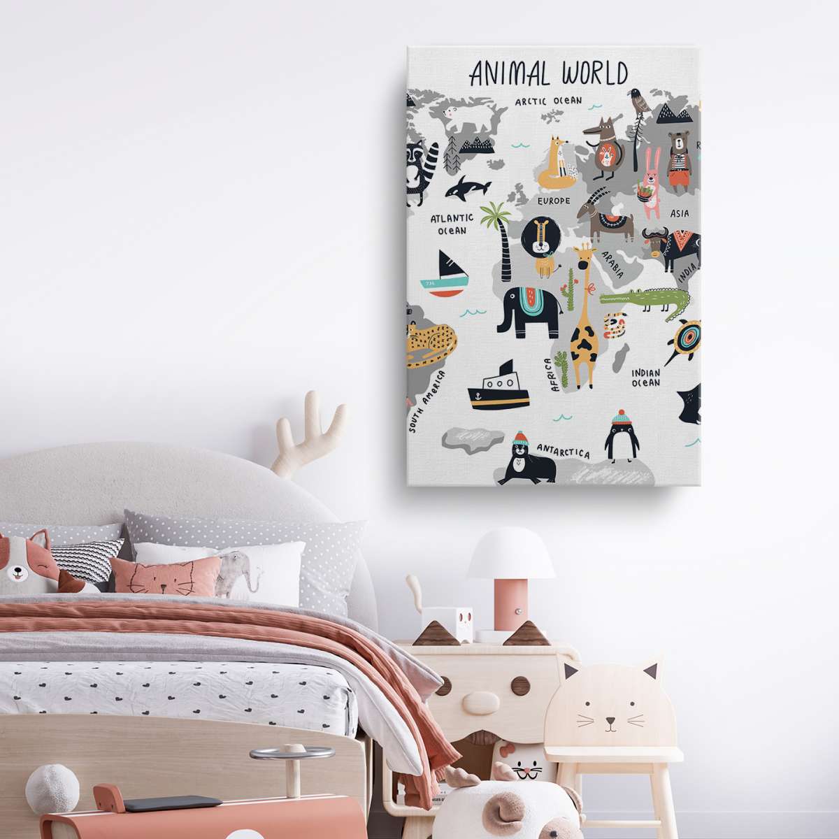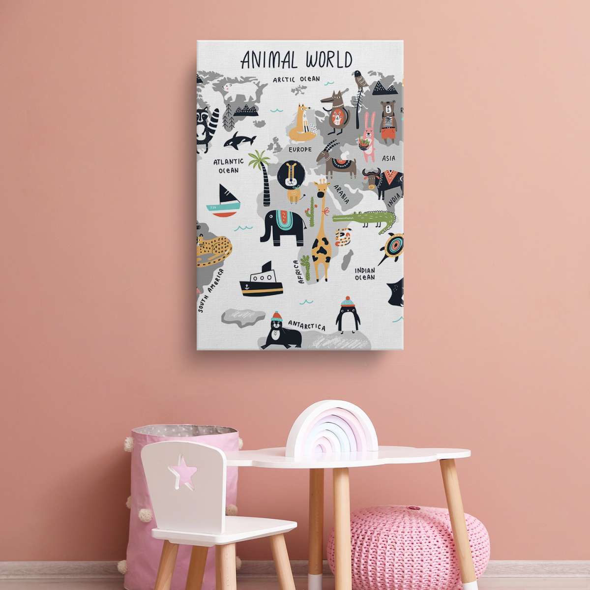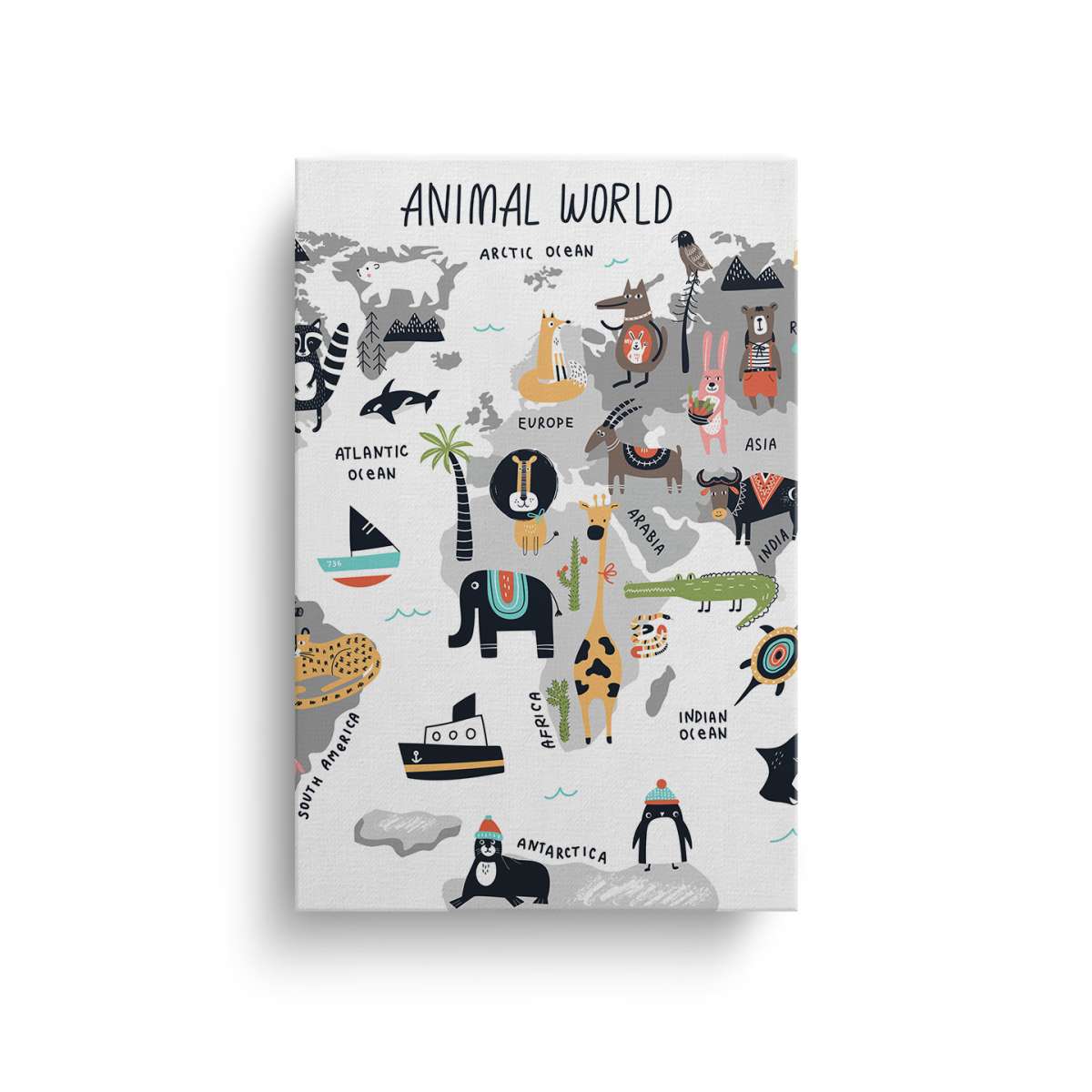 Grafická mapa světa se zvířaty - ilustrace